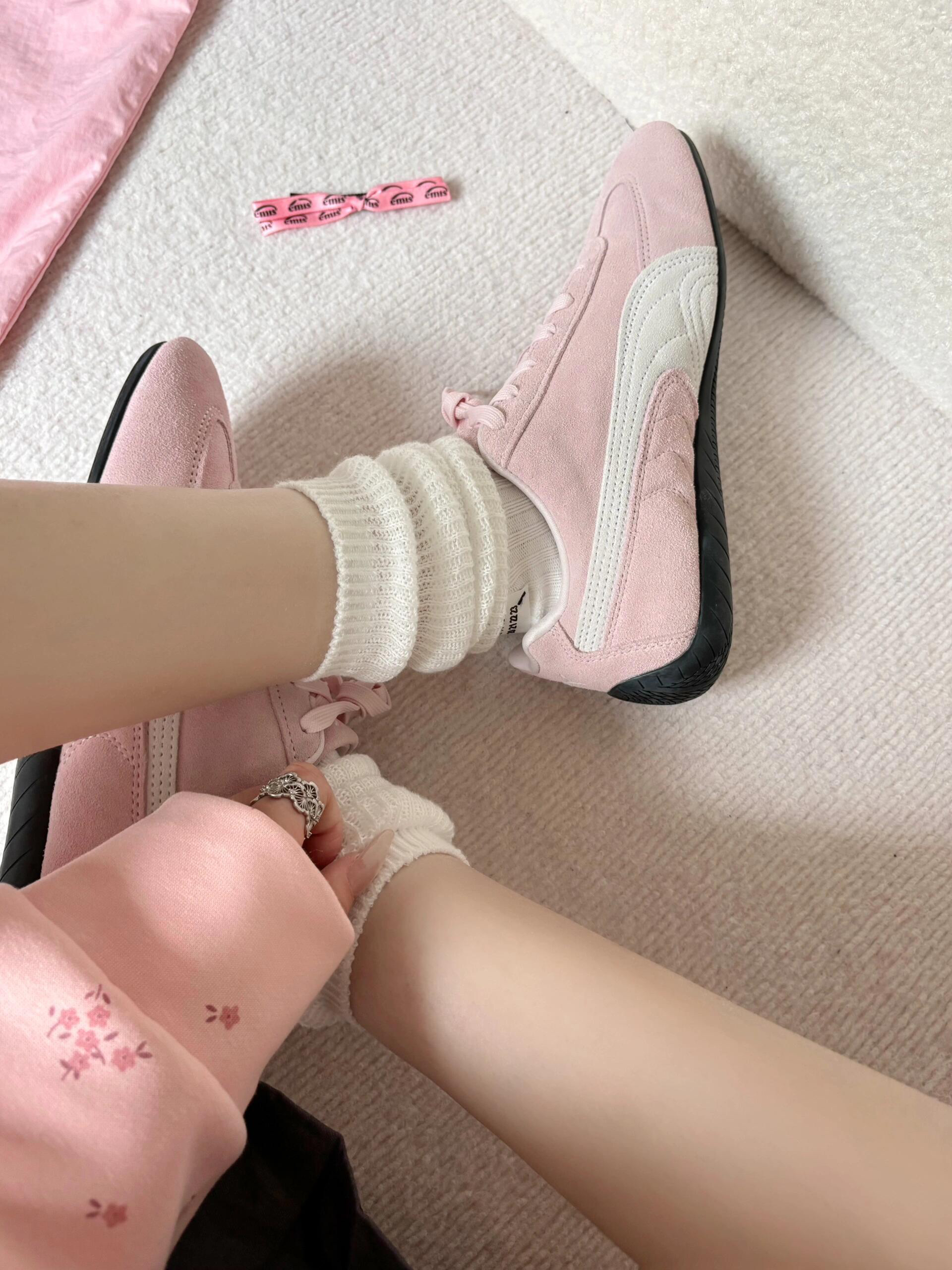 喜欢粉色的仙女!!🎀 人手一双的puma又配又又配色出新高度 浅粉色超ji嫩🩷🩷 跟短裙牛仔裤都很搭 黑粉真是又仙又酷 这新配色真的自带芭蕾风🎁