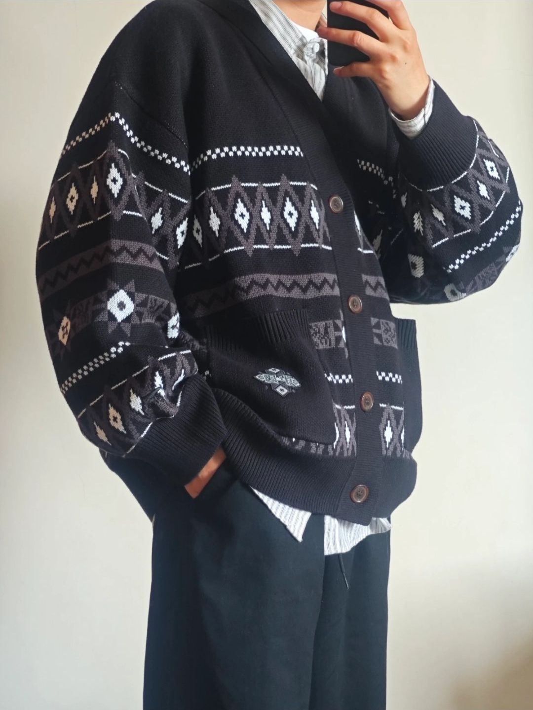 李宁 中国文化系列 单排扣菱形运动V领开衫无帽长袖毛衣🍓 🍓🍓没想到李宁的针织衫也能设计得这么好看了, 不是那种单薄的针织衫,用料很厚实。🧄感觉十度以上的天都能hold住~搭配衬衫也是很绝的。🥝面料有弾力且柔软舒适起球,针线细致,属于一款宽松版型,衣服图案搭配配独特丰富,运动潮流菱形V领单排扣长袖。🍑版型比较宽松~适合春,秋,冬穿,适合与浅色系衣衣服搭配穿搭,非常帅气。图片来自于博主原来是赫赫