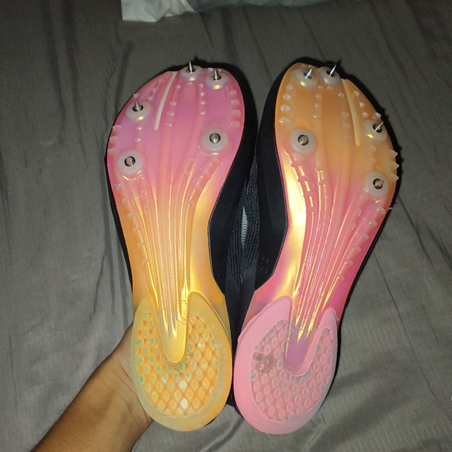 总体来说还好,前掌科技是硬弹的,不会像特别软卸力发力还好,整体鞋型刚性还是挺强的,不过上脚还要适应一段时间,像我跑400m栏都可以
