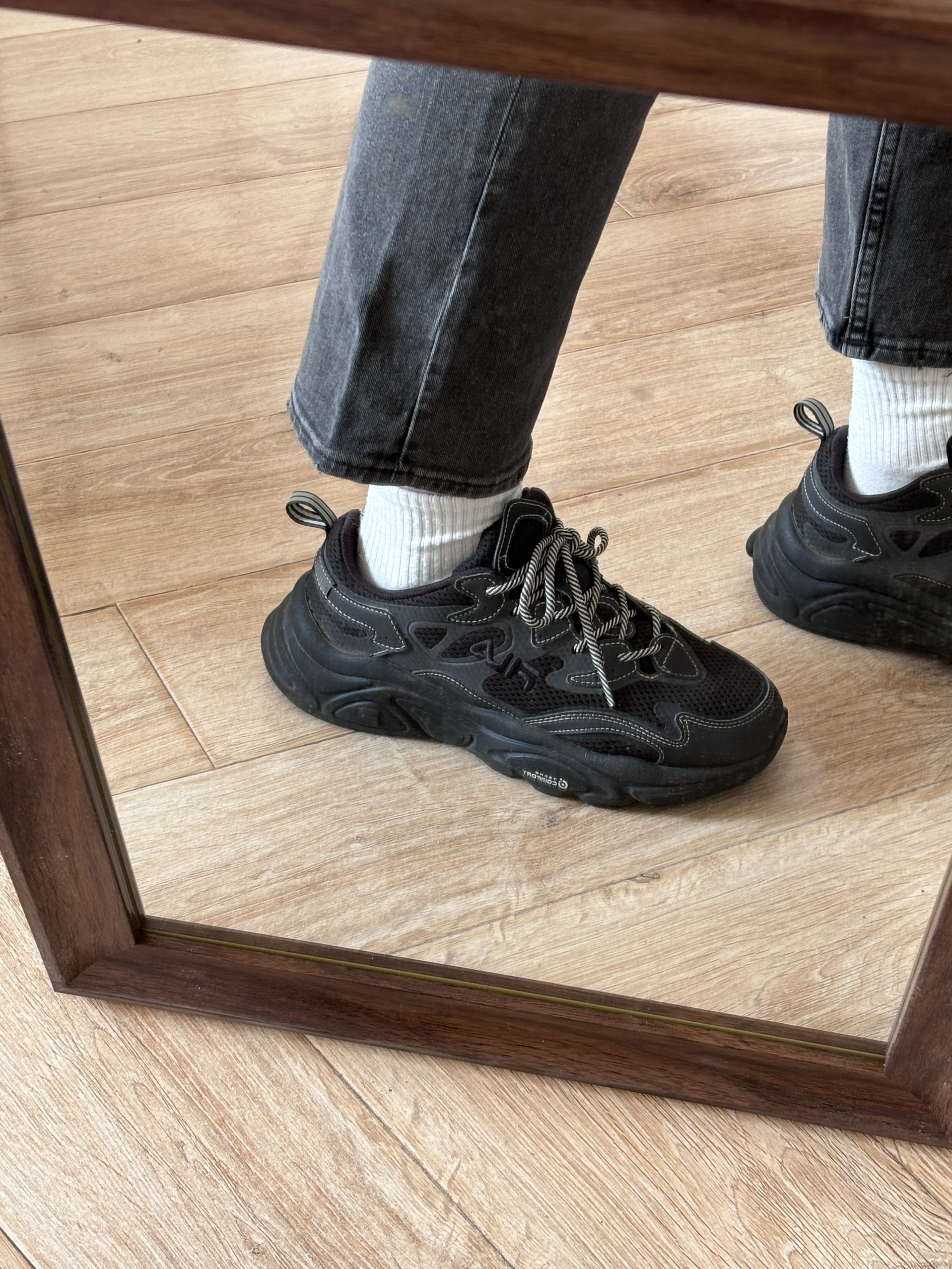火星第一代 好像现在已经买不到了 显得脚踝很细 但不显得脚大 脚感很软 很轻便舒适 属于老爹鞋里的上品 既能增高 自重还轻