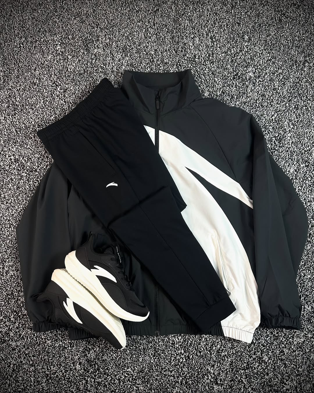 白色羽绒服较黑色多了一点时尚感, 搭配黑色束脚裤, 属于经典的黑白配色。 不会出错的一套搭配。