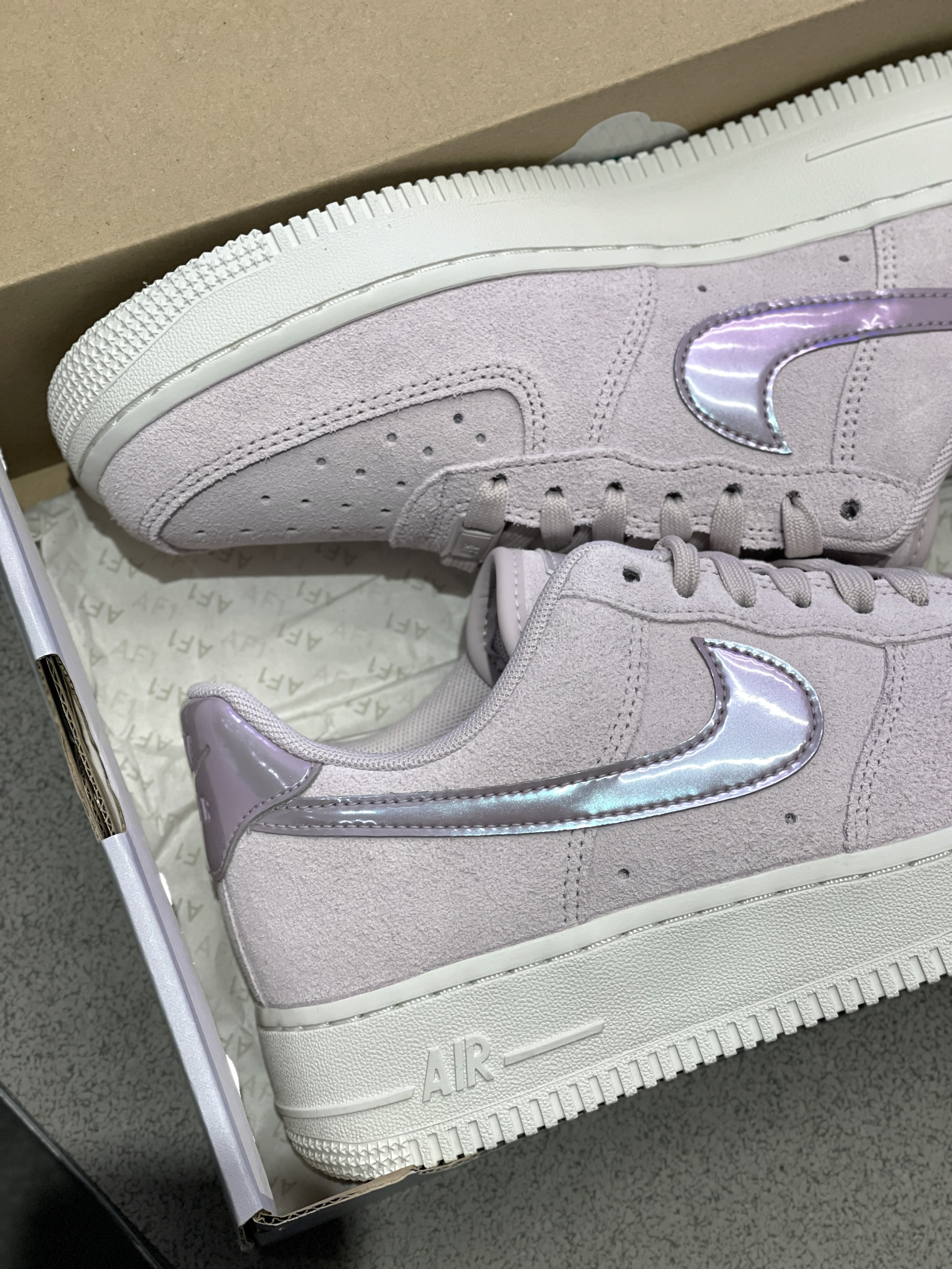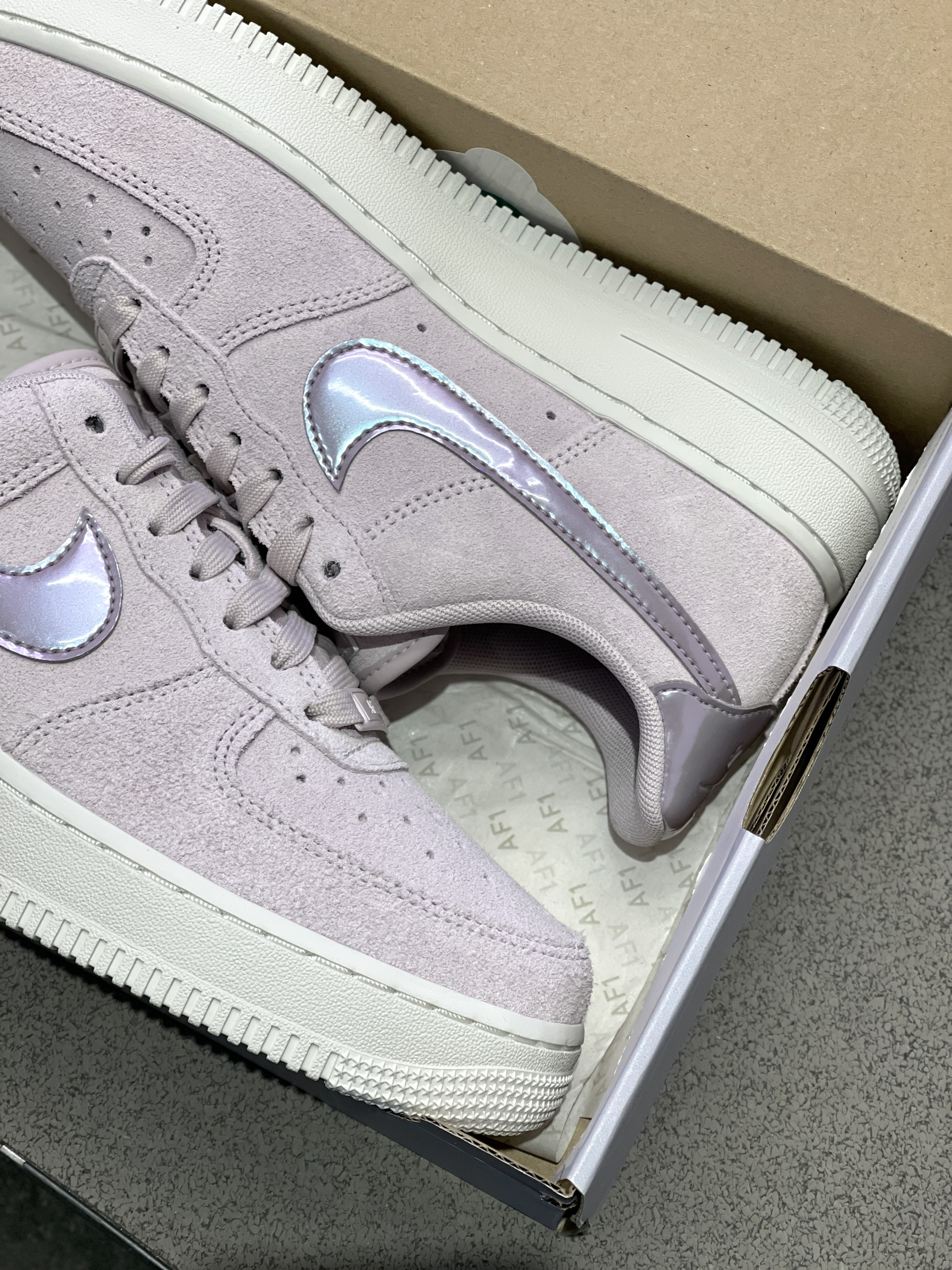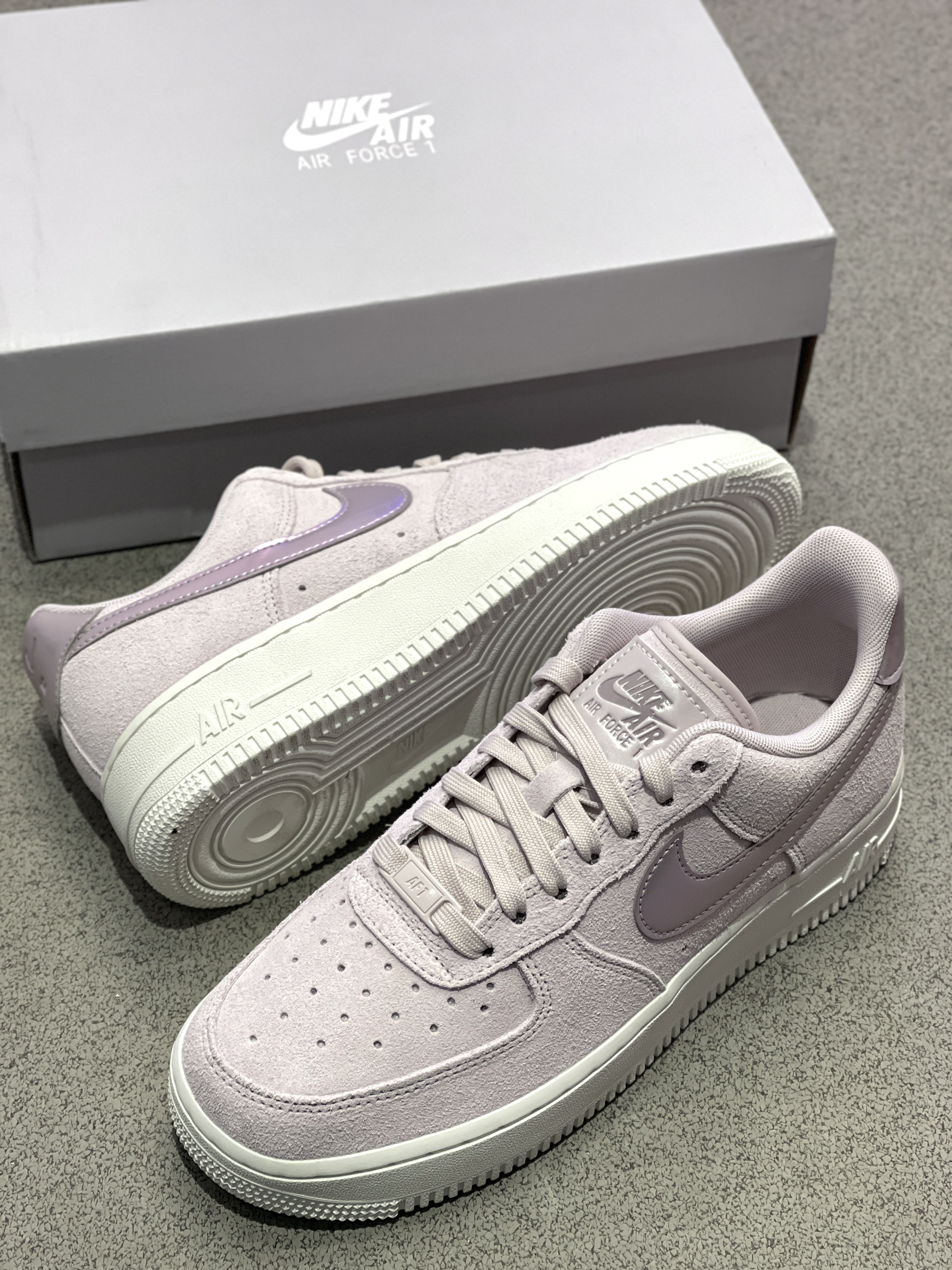 芋泥爱好者请集合!鞋子也要穿芋泥~😍 Nike|Air Force 1 低帮板鞋“灰紫色”,依旧是百搭复古的低帮空军一号鞋型,粉紫配色麂皮鞋面➕镭射效果Swoosh及后跟,层次感分明哦!上脚穿起来很好搭配,尺码方面空军一号版型偏大哦!🤩