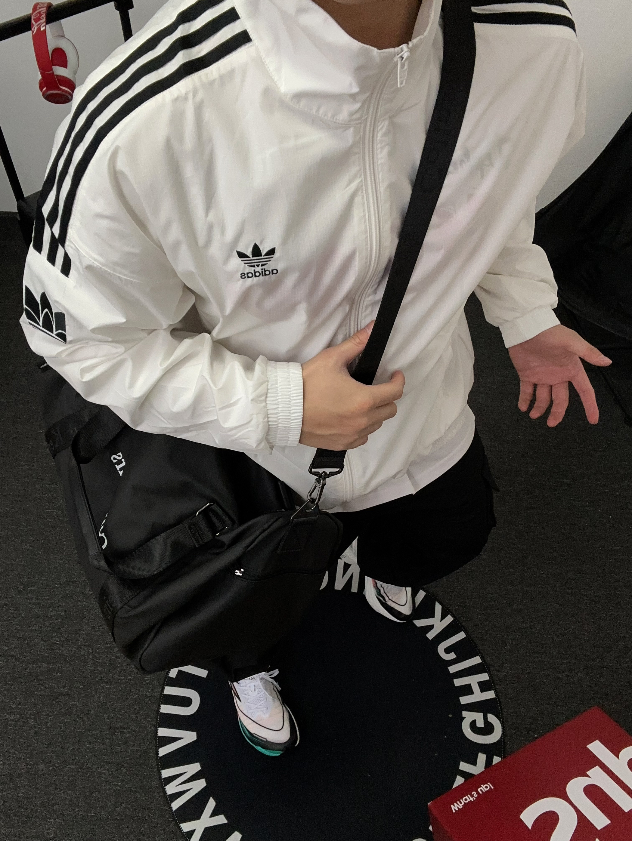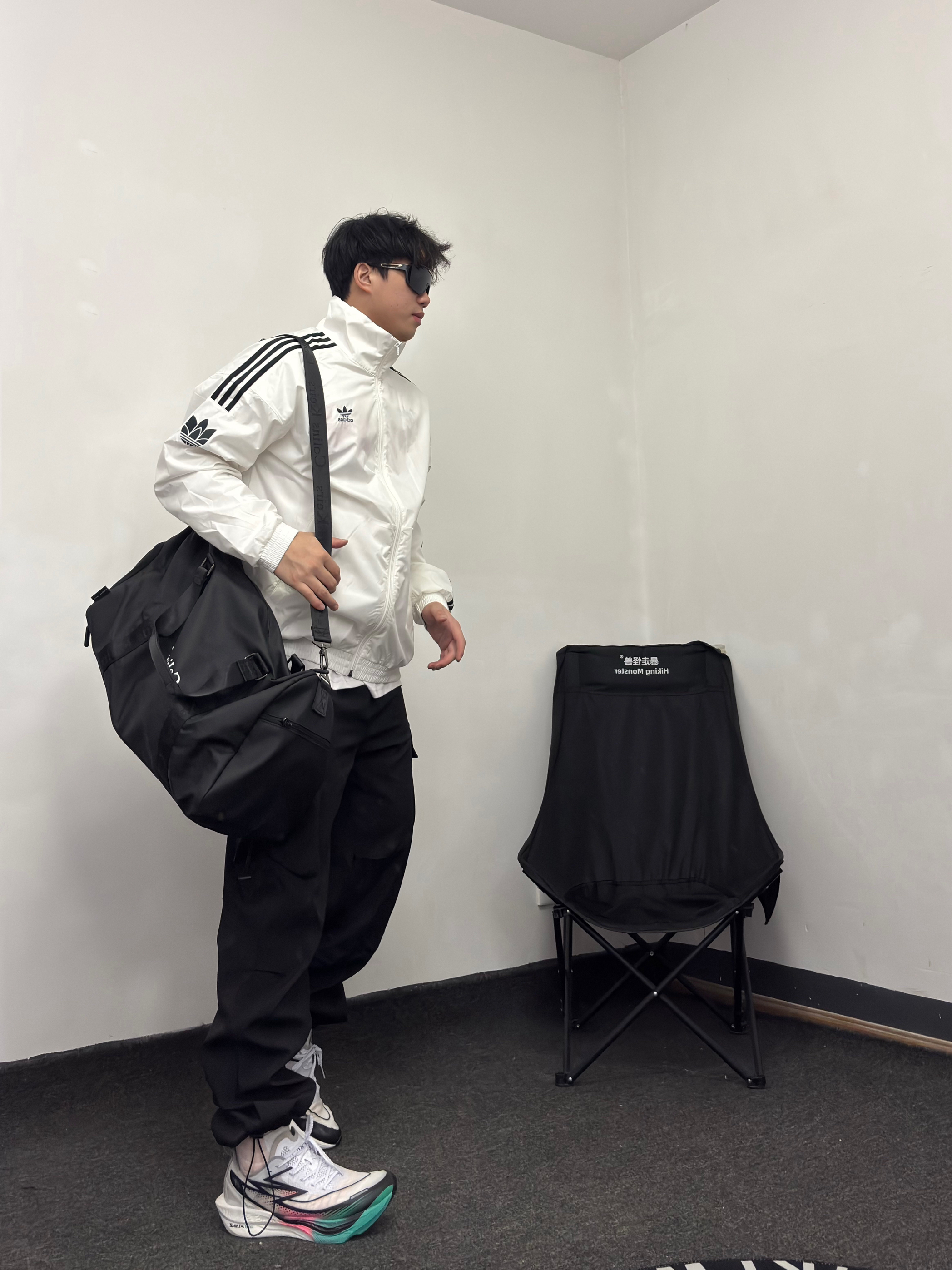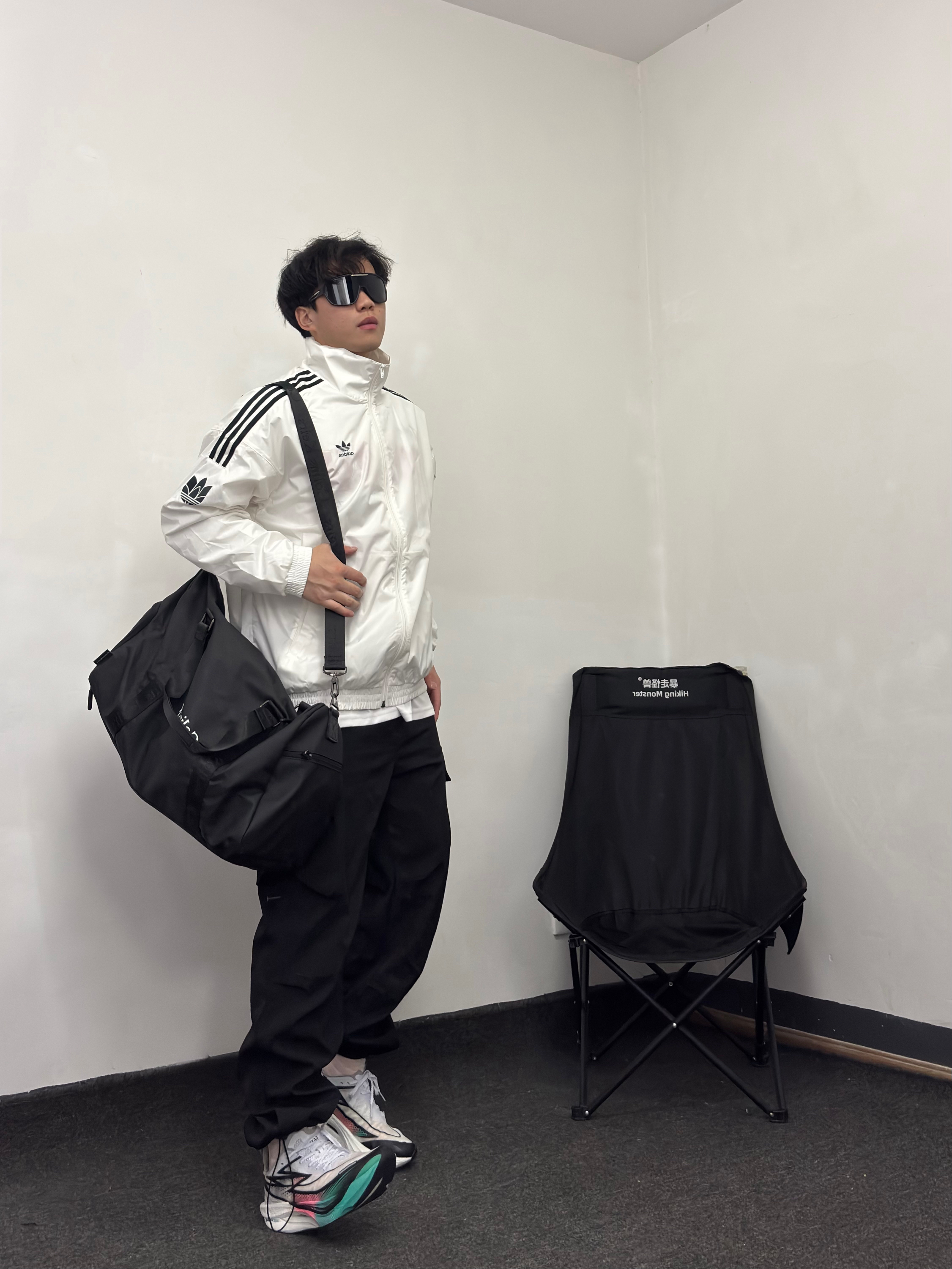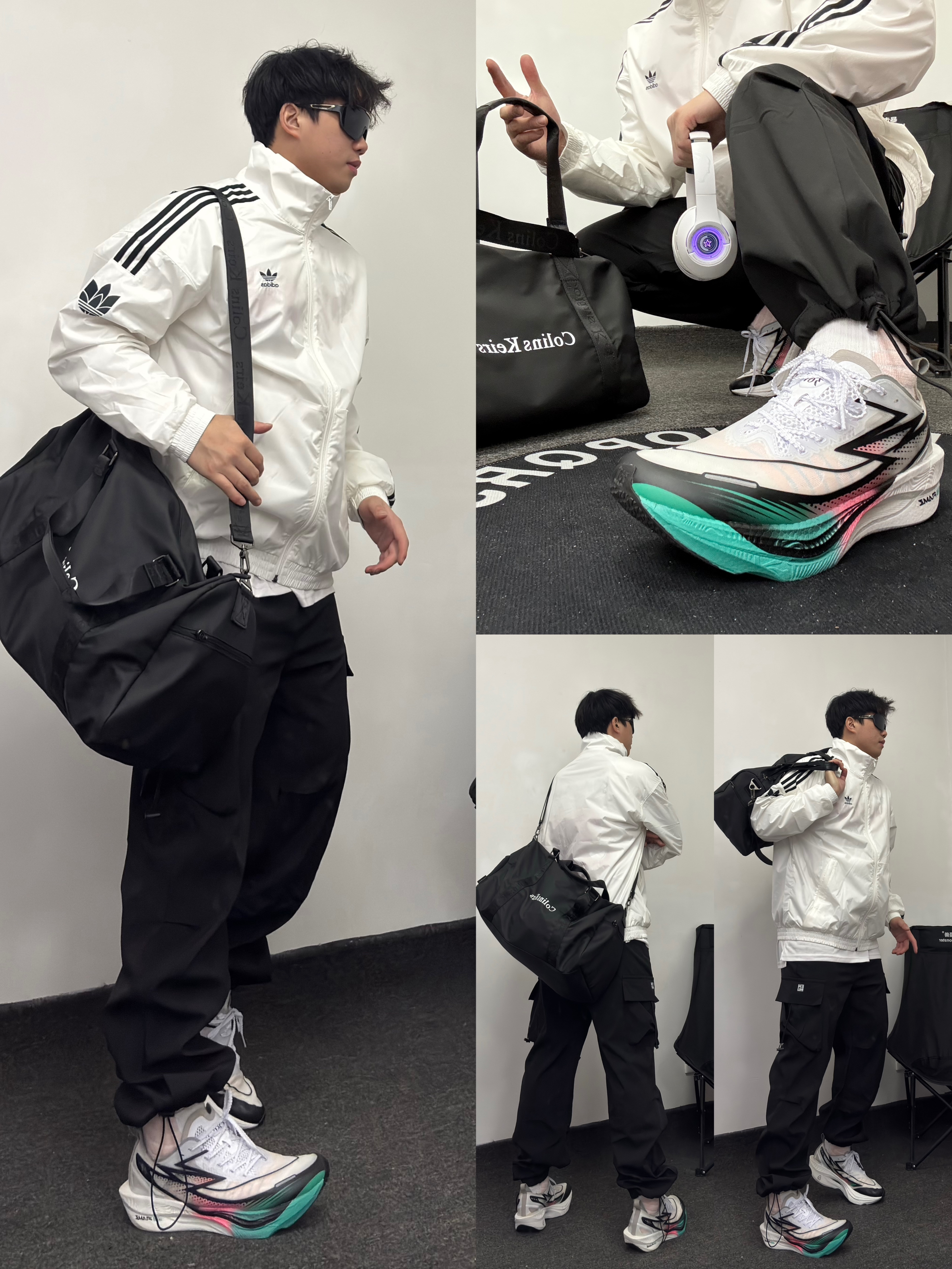 今日运动ootd 白黑色的复古运动风穿搭 有点帅气学长味道了 搭配一只 COLINS KEIRS 挎包 大容量可以作为旅行包也可以作为健身包 材质防水不错 侧面也可以装球鞋跑鞋 挺方便的 手提或者挎包 上身也蛮帅~