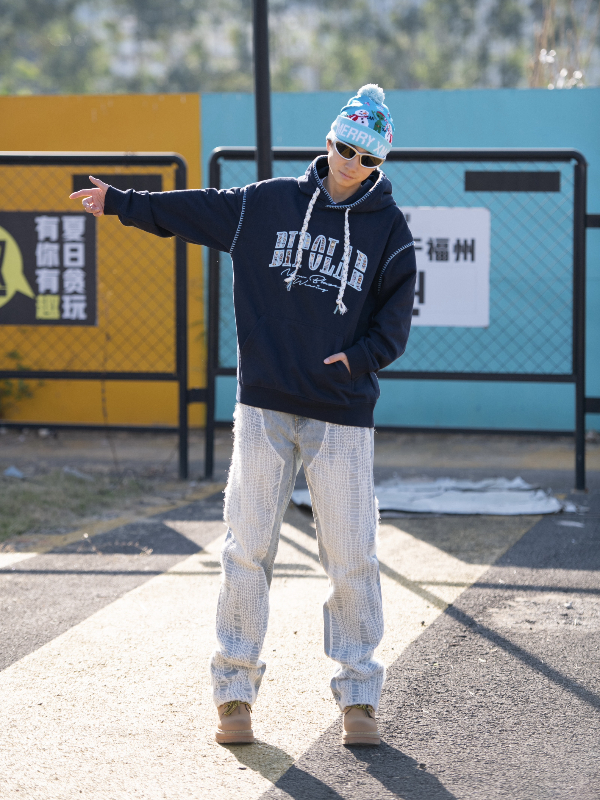 哈喽 欢迎来到哇哇哇穿搭分享频道! 172CM|55KG|👔:M 👖:m|👟:39码 圣诞节到咯! 明晚出门约会穿搭 我已经准备好啦 上身民族风贴布卫衣 比较独特的设计耶✌️ 袖口处还有莫比乌斯环 寓意满满 永恒♾️ 下半身搭配有设计感的牛仔裤👖惊艳对象 嘻嘻嘻😬 戴上圣诞帽 节日氛围满满 好咯 晚上就这么出门约会啦~