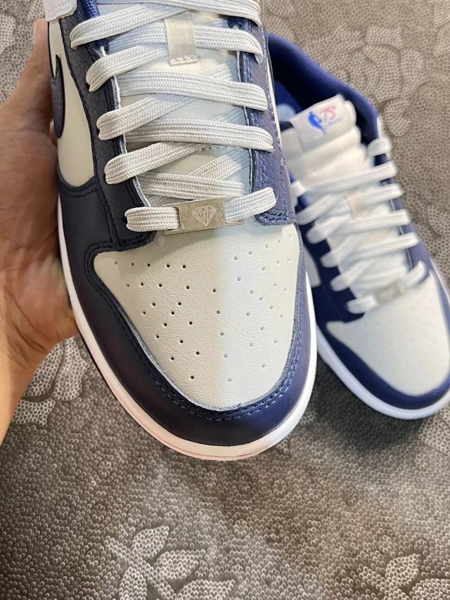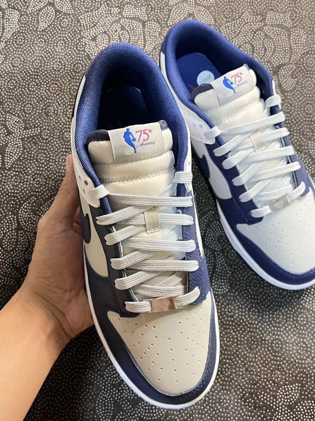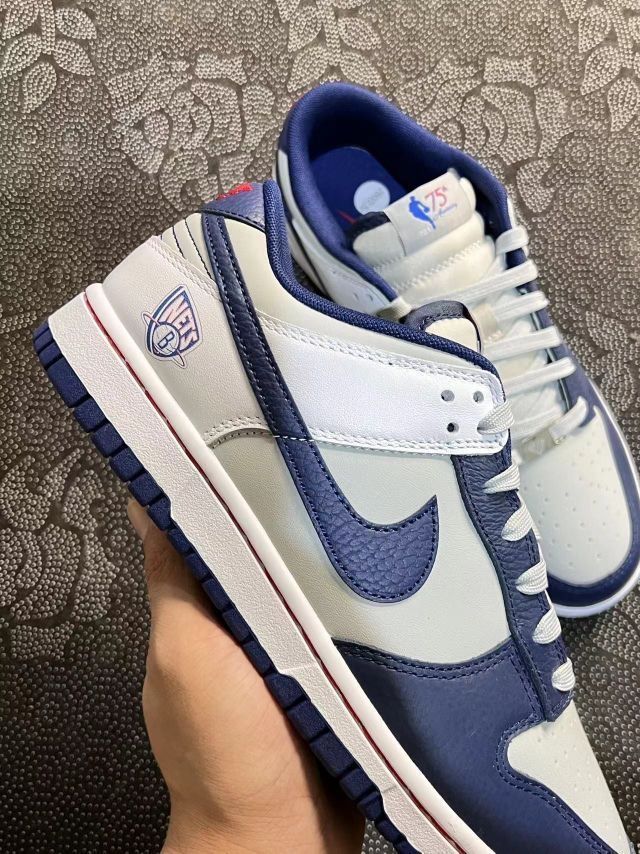 今日分享👟球鞋名称:Nike Dunk 布鲁克林篮网 🔍分享理由:这是一双Nike Dunk Low “Nets”球鞋,以布鲁克林篮网队的队色为主题设计。鞋子的配色主要为白色和深蓝色,细节处还加入了少量的红色点缀。鞋舌上有NBA 75周年的标志,彰显其纪念意义。鞋跟处绣有红色的“Nike”字样,增加了一些视觉上的亮点。 这款球鞋不仅适合篮球运动,也非常适合日常穿搭。其经典的设计和配色使其成为...