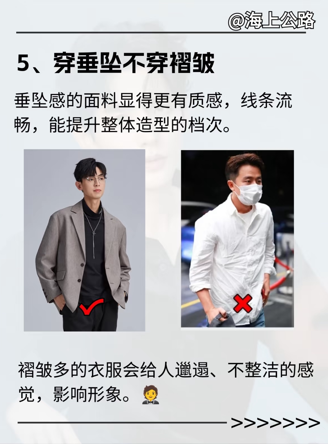 不选择原因:褶皱多的衣服会给人邋遢、不整洁的感觉,影响形象。🤵