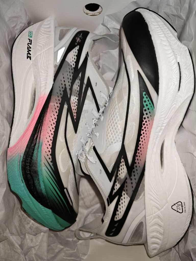 颜值非常高, 鞋面采用无敌透气的网眼, 秋冬不适合, 中底全掌cqt泡棉. 脚感非常不错, 碳板给的推进感也十足, 相对3.0有提升!