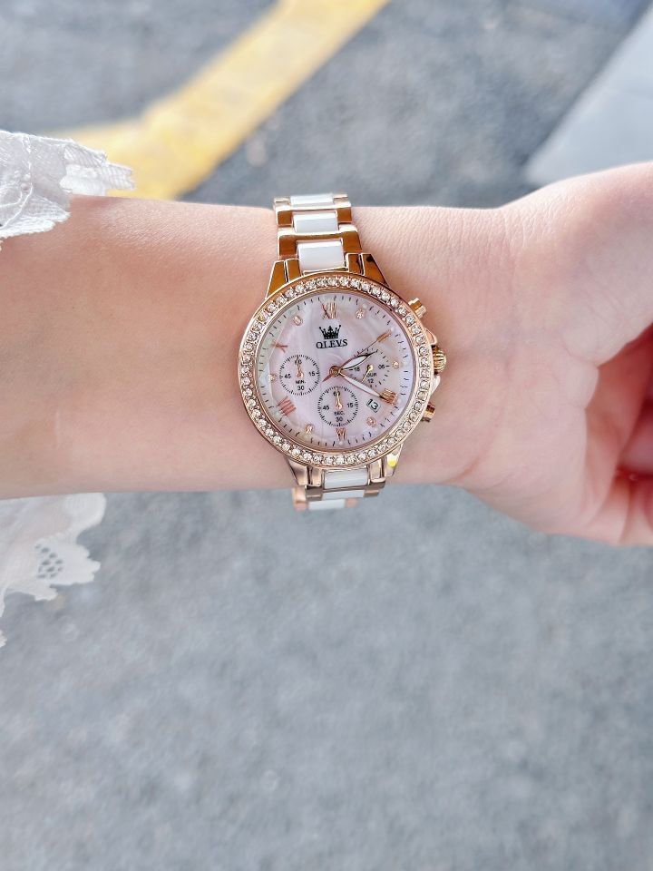 本篇笔记关联了OLEVS/欧利时 璀璨系列 轻奢华时尚简约满钻镶钻防水小巧石英女士手表 【礼盒装】钢带粉红、OLEVS/欧利时 五芒星满钻满天星镶钻梦幻蝴蝶防水大表盘轻奢镂空闪耀锆石360旋转盘七夕送礼石英女士手表 【礼盒装】白皮玫瑰金 、OLEVS/欧利时 简约真皮带款小巧防水双日历机械男女同款手表 玫壳白面 女款等商品,为用户提供真实的使用体验和购买参考。