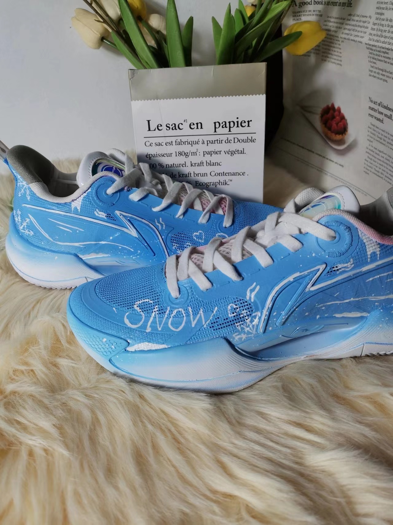 宝子们✨,李宁鞋子值得关注。鞋型美观,蓝白配色亮眼。手绘很有创意。日常穿它,能轻松成为焦点😏,展现潮流风格。 纯净的浅蓝色调让走进了冰雪世界⛄~材质独特又细腻🎊搭配精致的时尚元素,是冰原精灵留下的魔法印记🎈🎉
