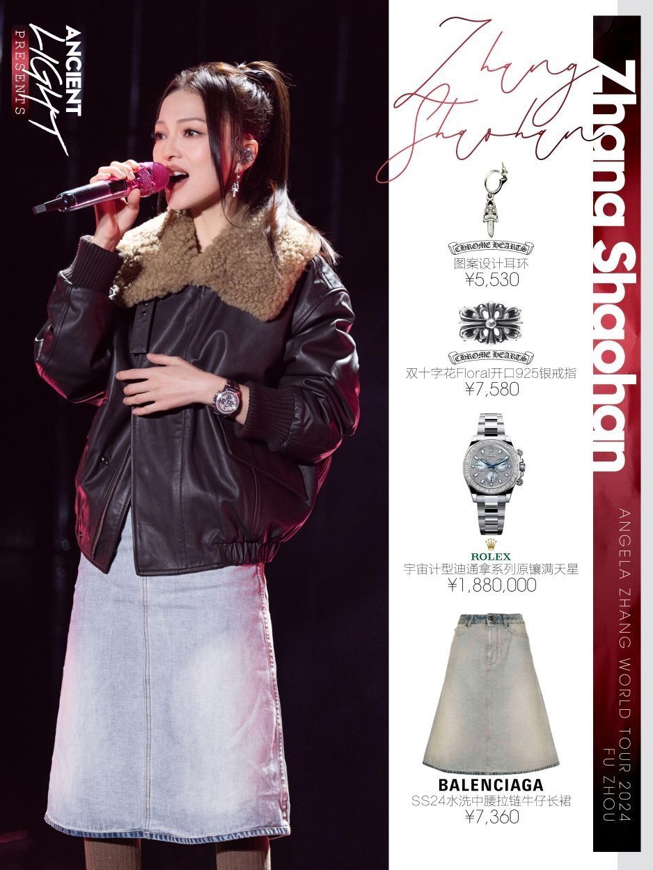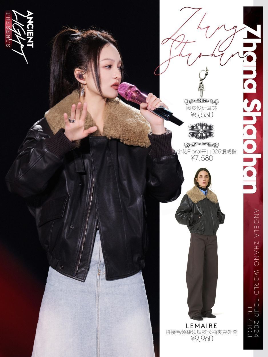 2024 「张韶涵」演唱会·福州站。天气渐冷,张韶涵的彩排妆造,皮衣是御寒必备,有了暖暖的毛领加持下看着好像一下子就不那么冷了。
