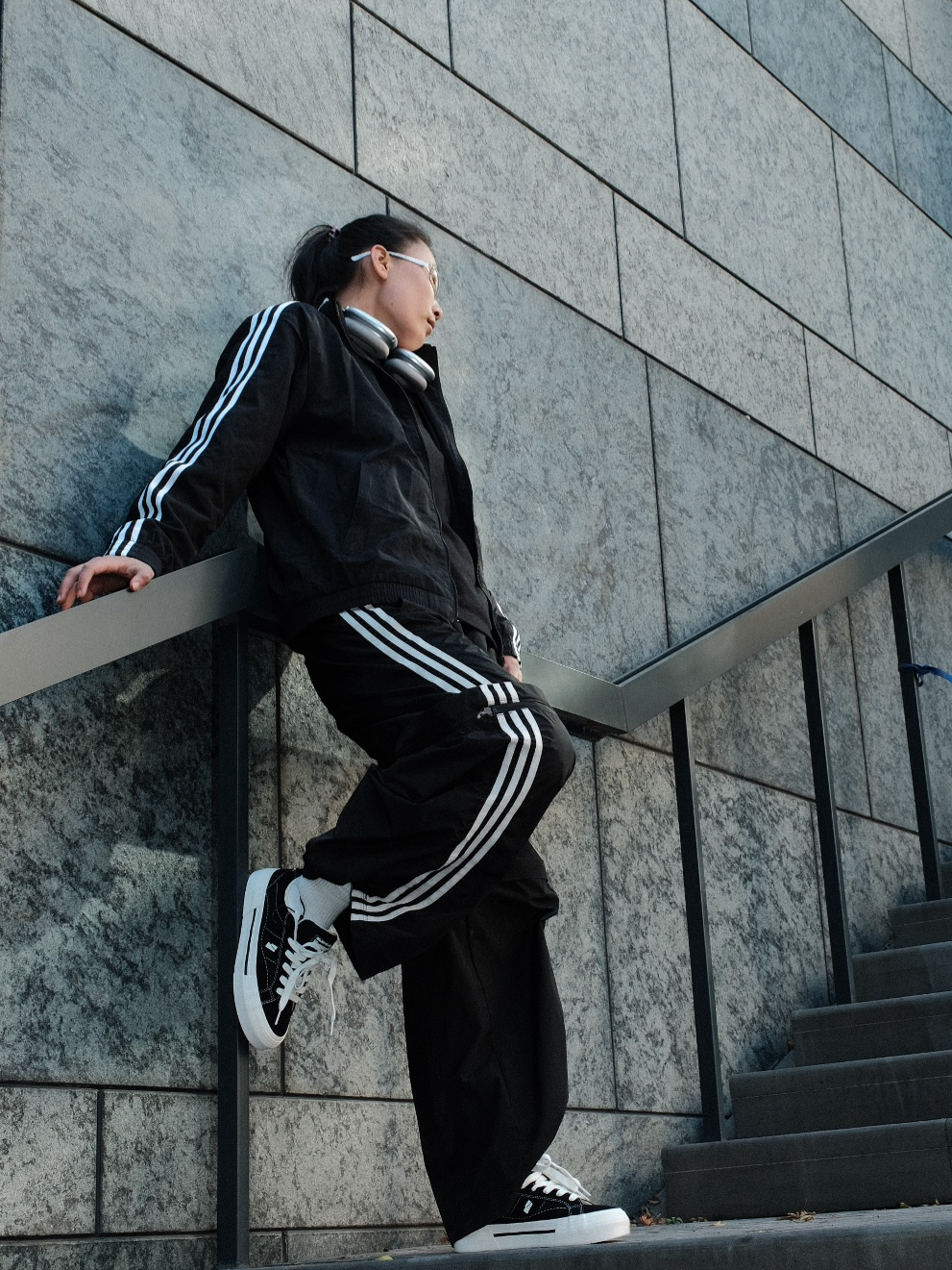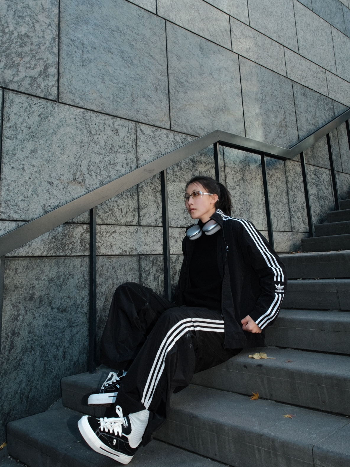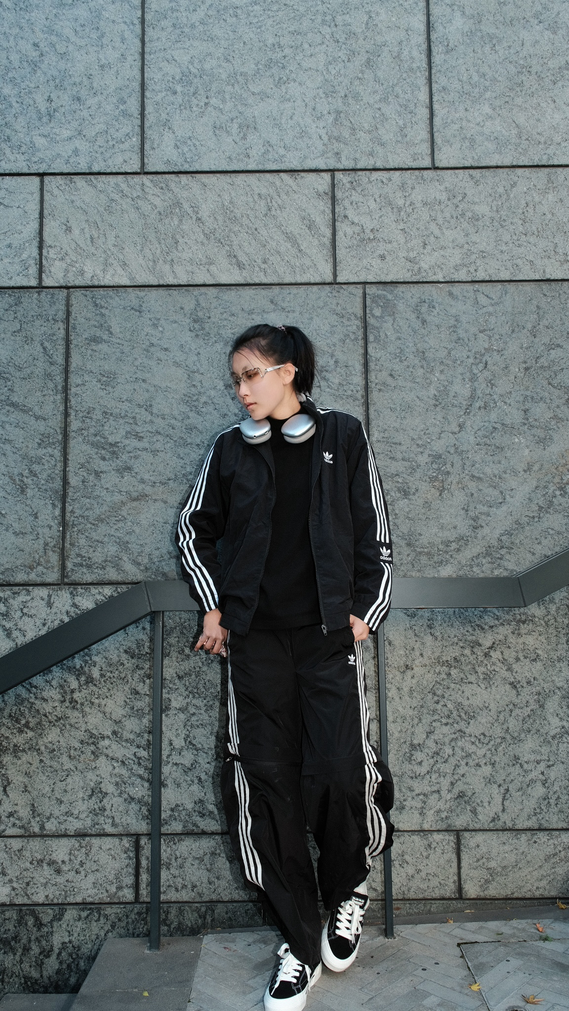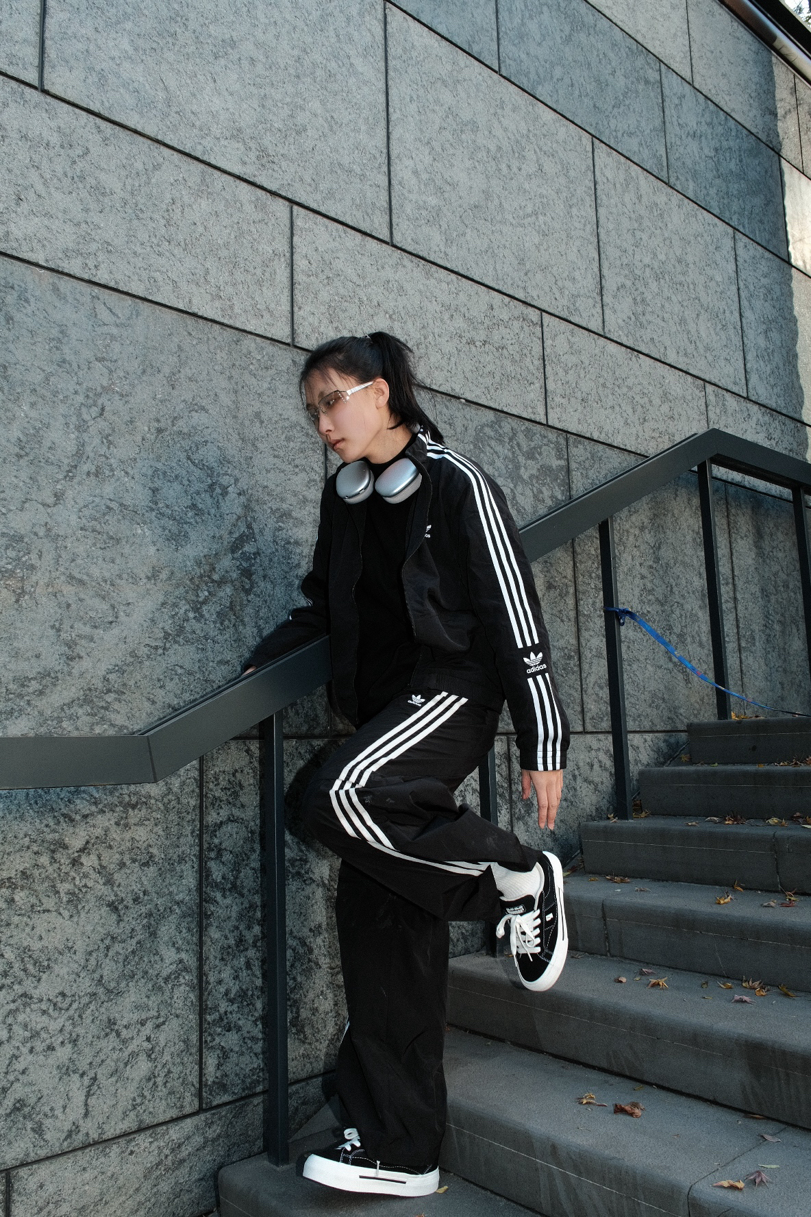 不知道穿什么就穿一身黑准没错的 adidas一身轻松出街 搭配微迷板鞋 拍照也不在话下