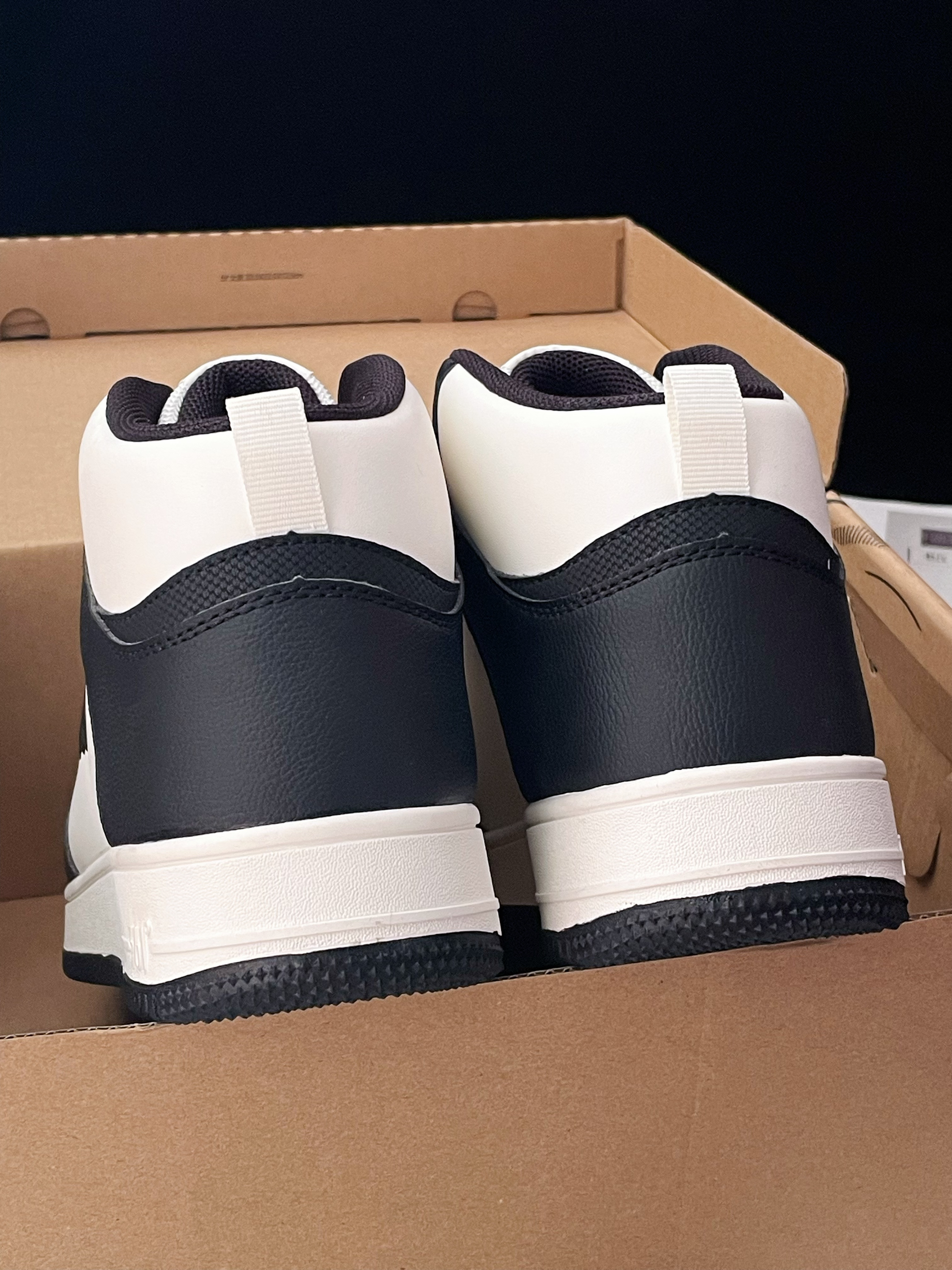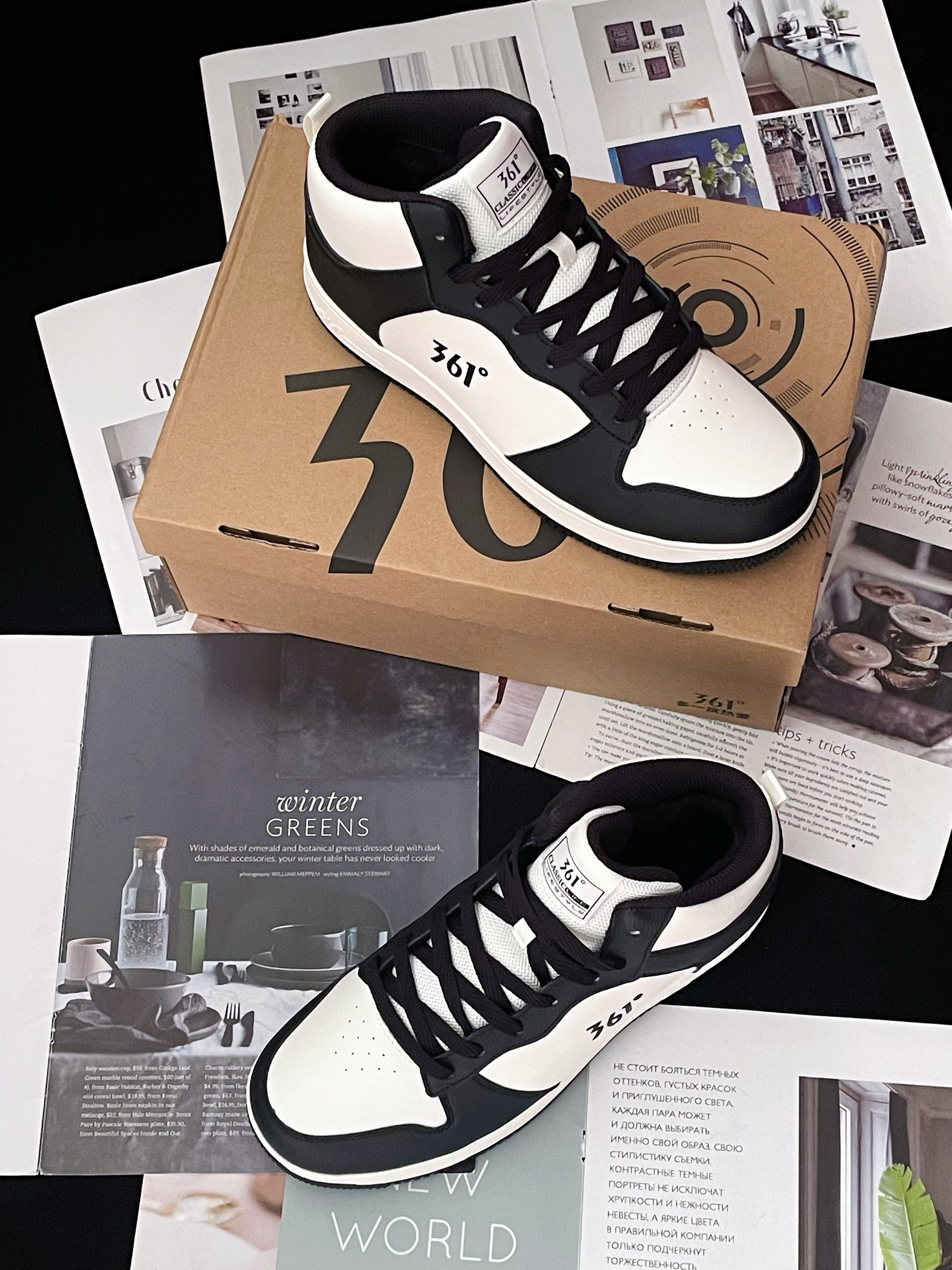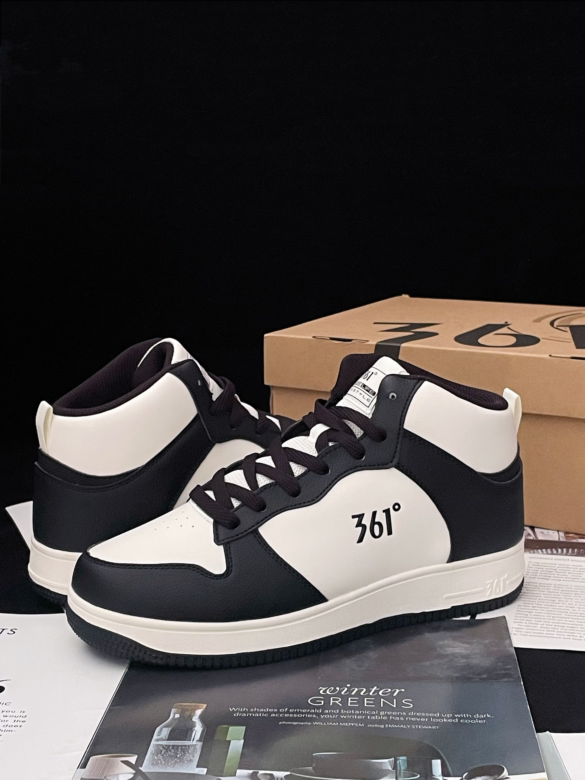 今天给大家分享这双 361°空军一号 加绒高帮板鞋 鞋款由经典的黑白色为主色调 时尚简约百搭 也很有高级感~ 皮革材质的鞋面很好打理 搭配上高帮的鞋型 包裹性也挺不错 加绒加厚的内衬很保暖 过冬毫无压力 厚实的中底脚感软弹 舒适轻便 并且还有很不错的增高效果呢~ 多纹路的大底耐磨防滑问题不大 ⚠️尺码方面不偏码 建议正码选择