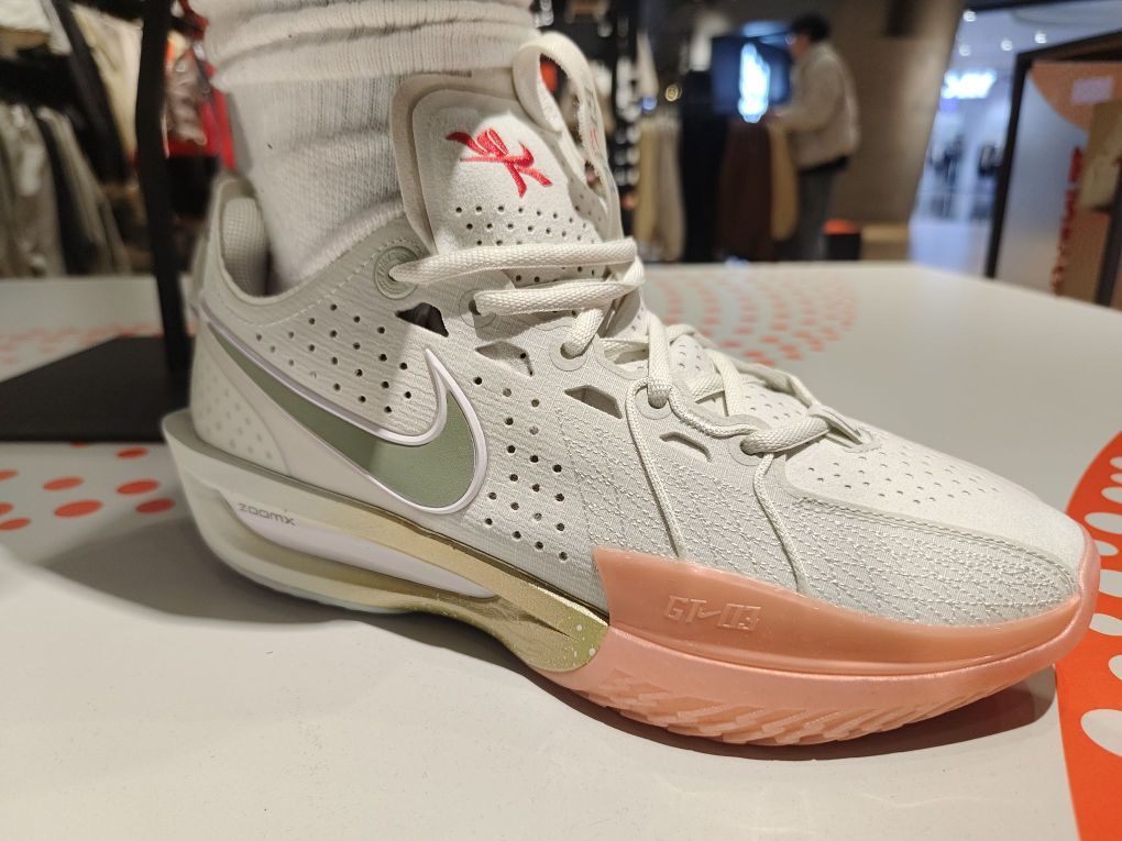 Nike Air Zoom G.T. Cut 3 EP 说实话是先看到了某物的鞋王榜单 后来才来线下看的鞋 实物配色还行比想象好看👀点鞋头和中断的粉加金竟然莫名的和谐 zoom x + Flywire飞线的科技配置看上去还是比较朴实的 期待上脚实战喽