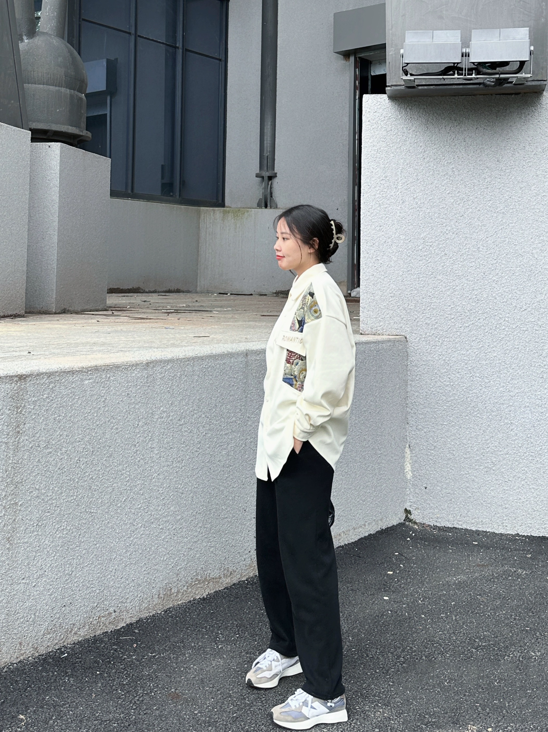 秋冬季通勤日常怎么穿,内搭一件小熊拼接衬衫+黑色长裤,外套一件棉服或者羽绒服,嘎嘎好看嘎嘎舒适,室内热的时候可以把外套脱掉,一样的时髦好看!