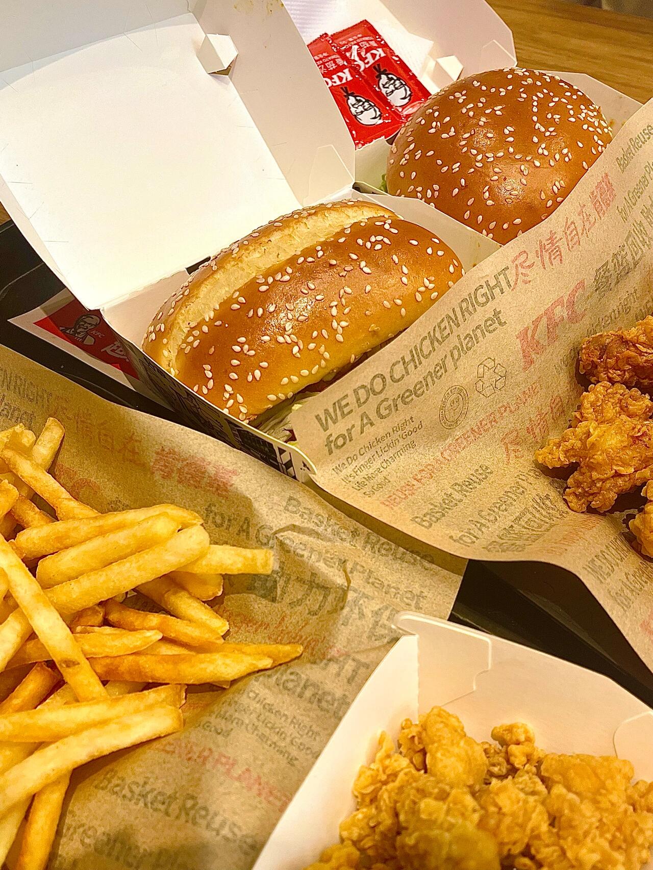 天哪,肯德基你真的不要太给力啦 内容真的chao丰富,都是我平常爱点的 有经典汉堡主食、人气炸鸡配餐和饮料🥤 其中,主食可任选2⃣ 份,我点了香辣鸡腿堡和劲脆鸡腿堡,两个人一起吃刚刚好 还有3⃣份小食,2⃣份饮料🥤 小食就有黄金脆皮鸡、吮指原味鸡、薯条 黄金鸡块、劲爆鸡米花、辣翅烤翅等选择 算下来真的省了不少,而且份量也很足喔~ 很适合约上小姐妹👭一起打卡✔ 图源网络侵删