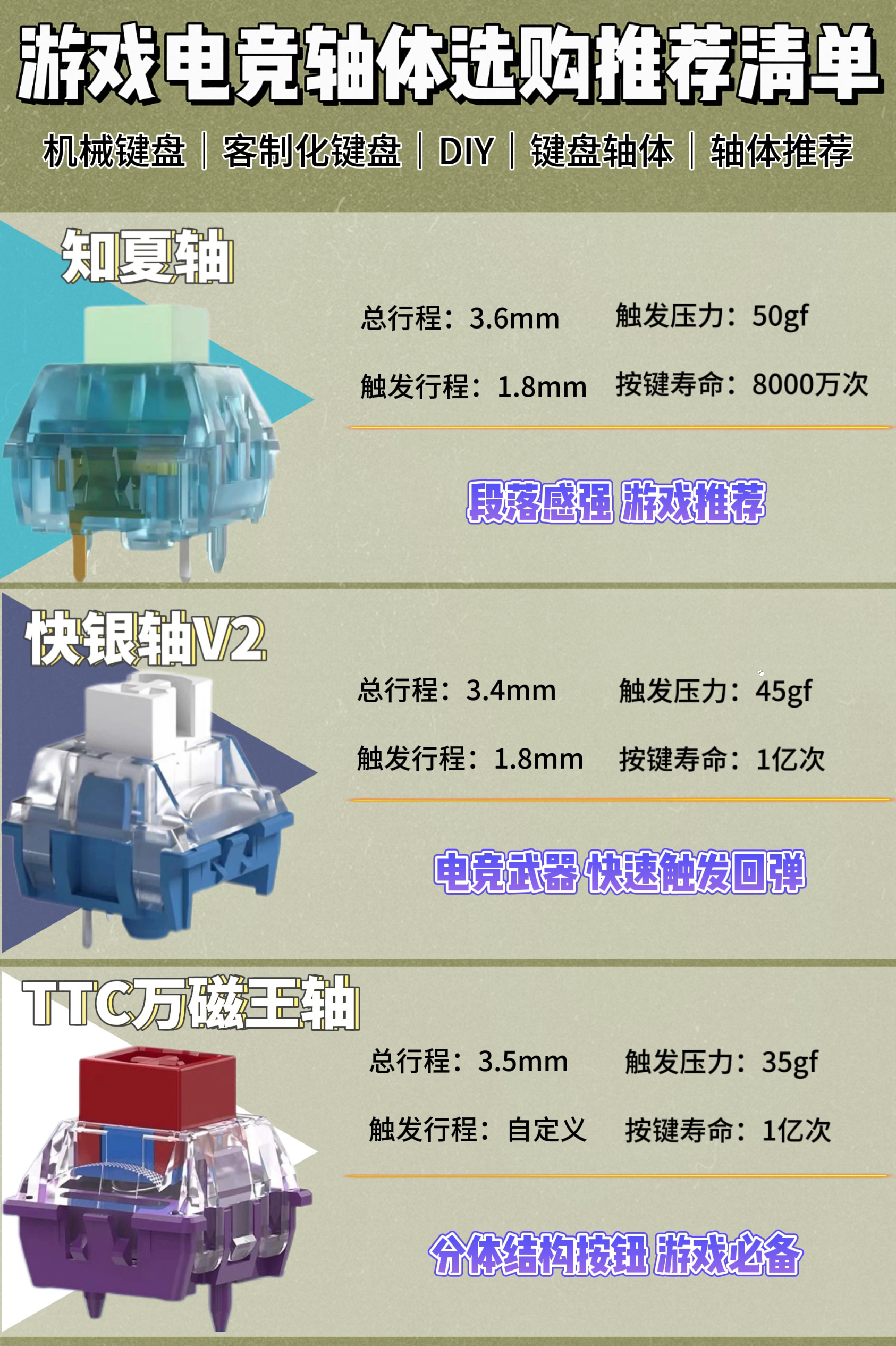 ⌨️本期给大家分享9款,合适游戏电竞的轴体!!! ⌨️非常适合游戏党!!!DIY一把属于自己的游戏键盘!!! ⌨️有没有使用过其中一款的兄弟们呢????
