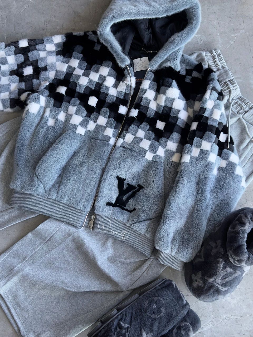 lv25ss灰色棋盘格水貂 lv24ss灰色熊掌鞋