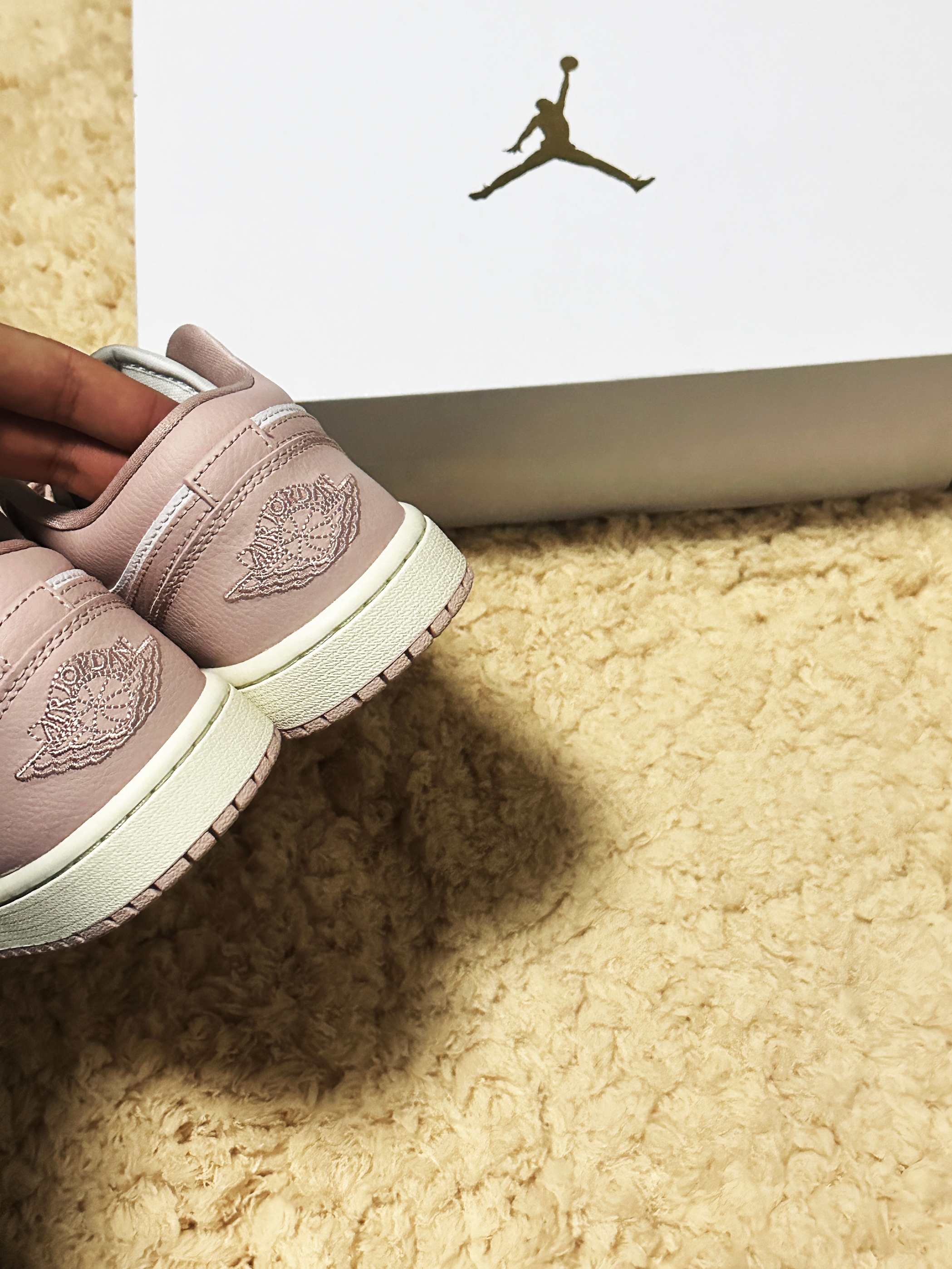 原本不想推荐aj1的,但是看到这双粉色的又忍不住推荐一下了 鞋舌处粉色刺绣的Jordan logo以及后跟处的飞翼logo无不彰显这双鞋的做工 粉色的鞋身和swoosh让我一眼奠定了这肯定是一双女孩子会喜欢的板鞋 粉色的鞋底和鞋带让这双鞋无论从哪个角度看都非常耐看