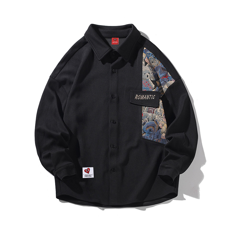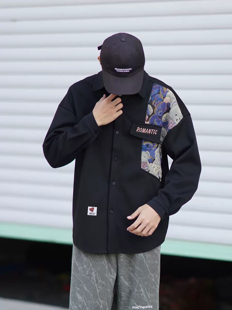 春秋可以把衬衫当做外套,冬天可以当做内搭,搭配一个工装长裤,很时髦很帅气~黑色显瘦又百搭,小熊图案也很特别不会轻易的撞款,简约又日常
