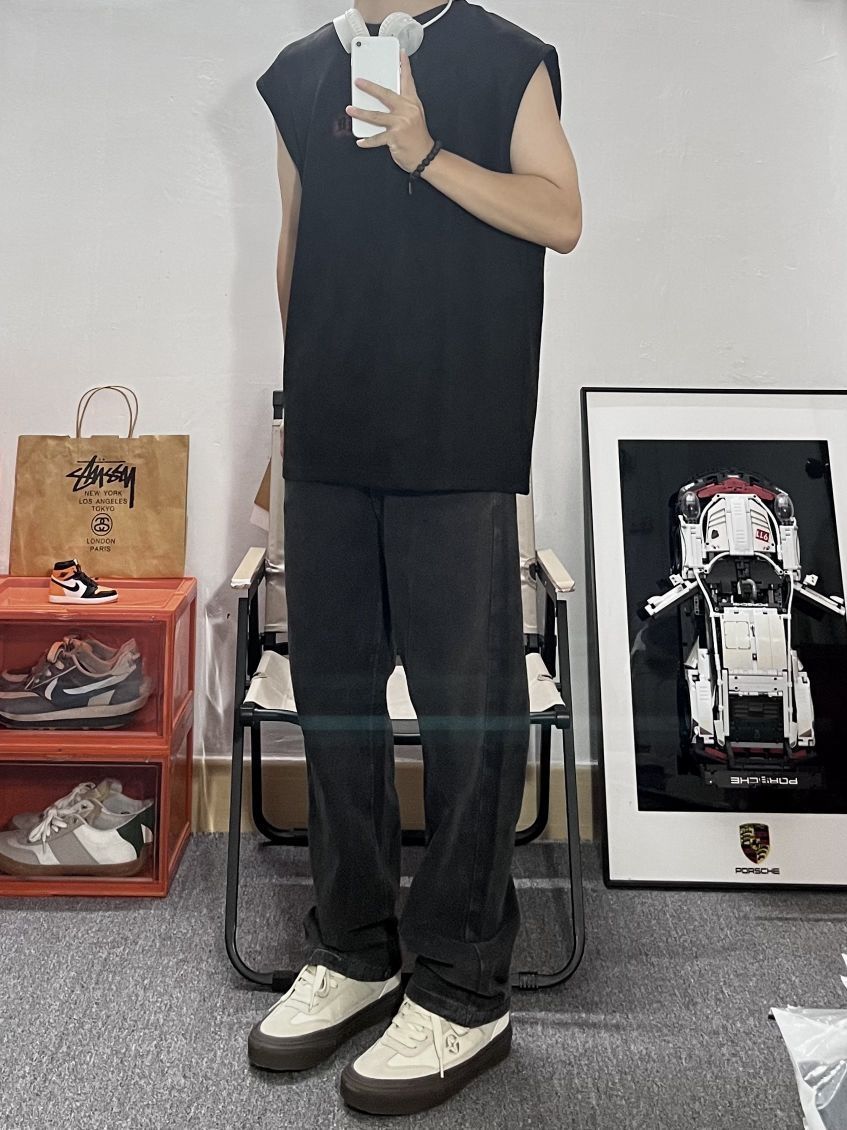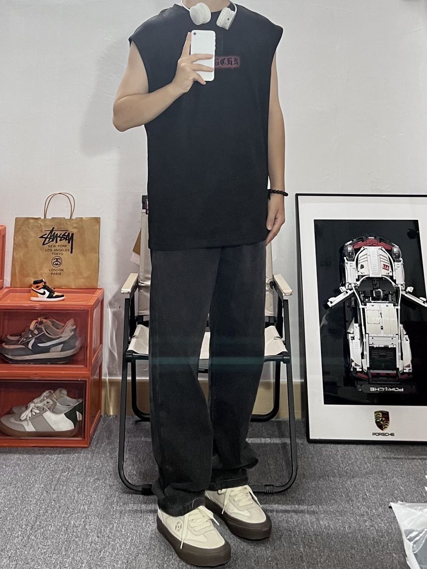 哈喽这里是pupu同鞋🏄🏻♂️ ——————————— · 👔:bjhg不计后果 一件潮流的无袖背心真的很适合夏天✔️ 外表简约的黑色麂皮绒非常有质感 黑红色搭配真的很帅 印花自带街头感 · 👖:黑色牛仔裤 · 👟:visionstreet ——————————— 💁🏻♂️:170/115 以上都是个人观点🍟欢迎讨论
