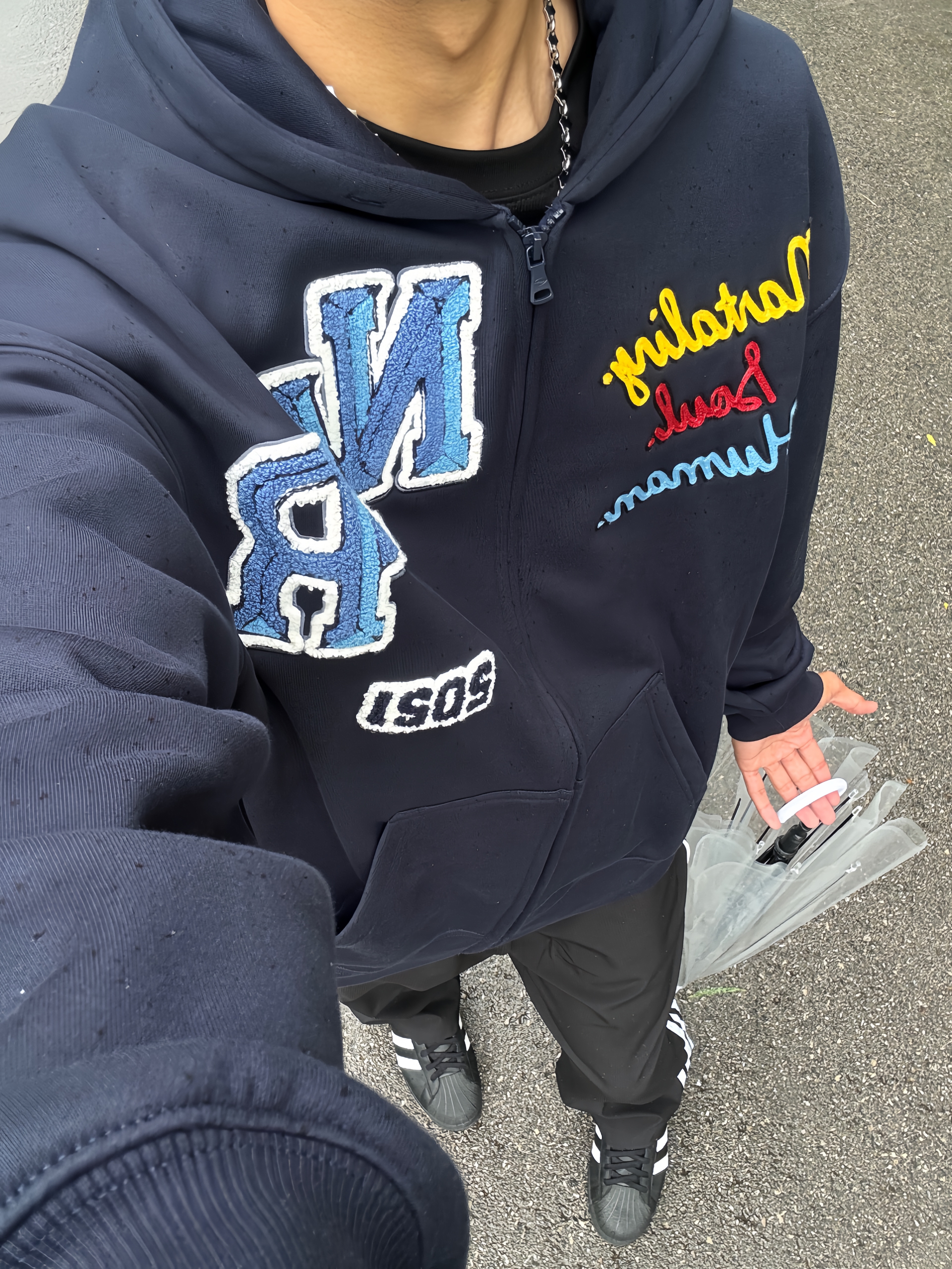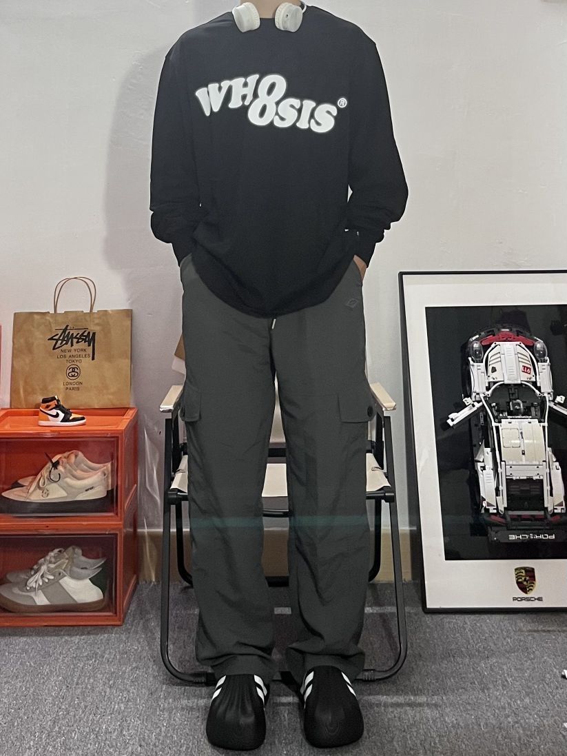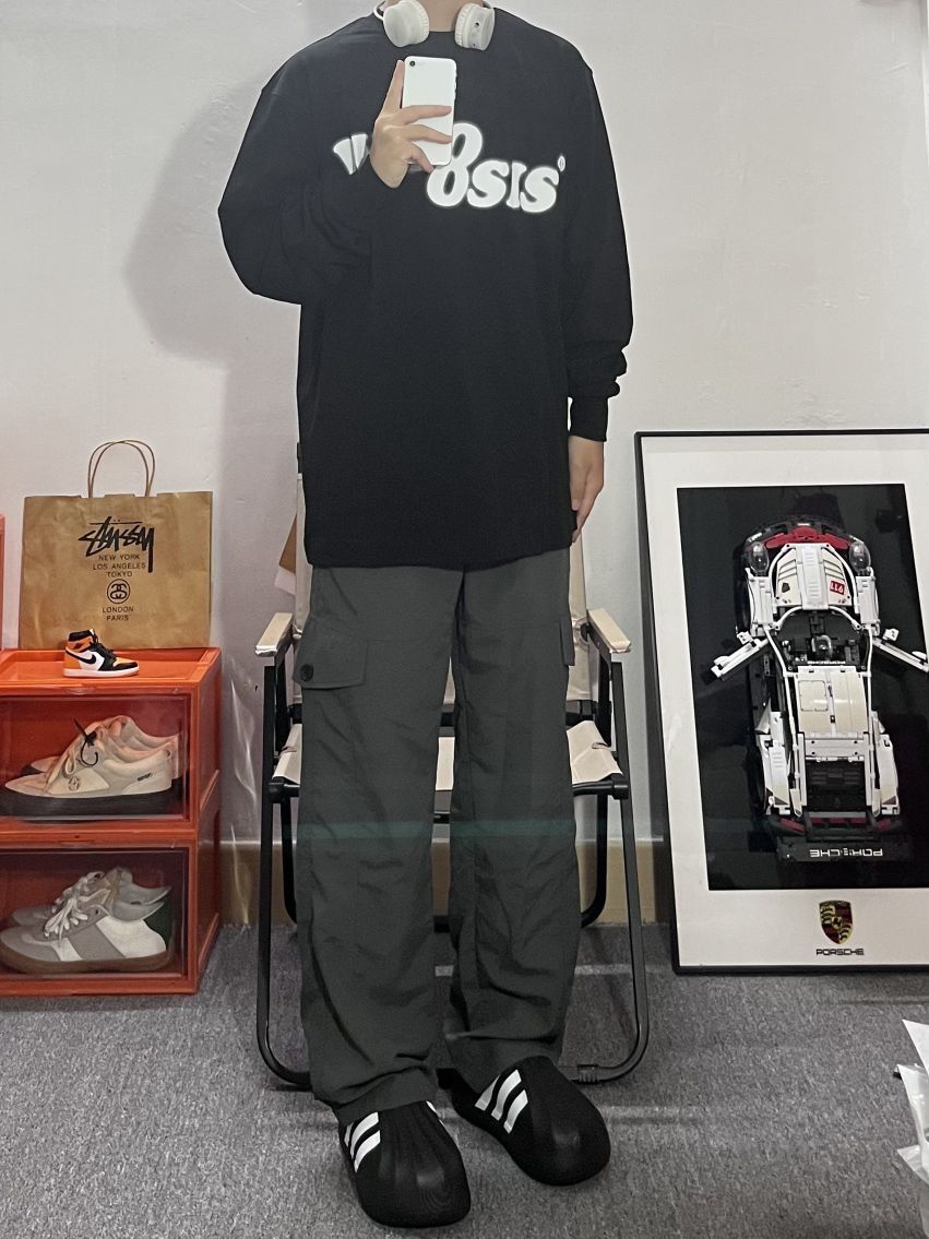 哈喽这里是pupu同鞋🏄🏻♂️ ——————————— · 👔:whoosis 幻影logo长T真的不要太帅✔️ 黑色百搭很耐看搭配银白色的眩晕印花 宽松落肩的oversize版型不挑人好好看 · 👖:伞兵裤 · 👟:adifom ——————————— 💁🏻♂️:170/115 以上都是个人观点🍟欢迎讨论