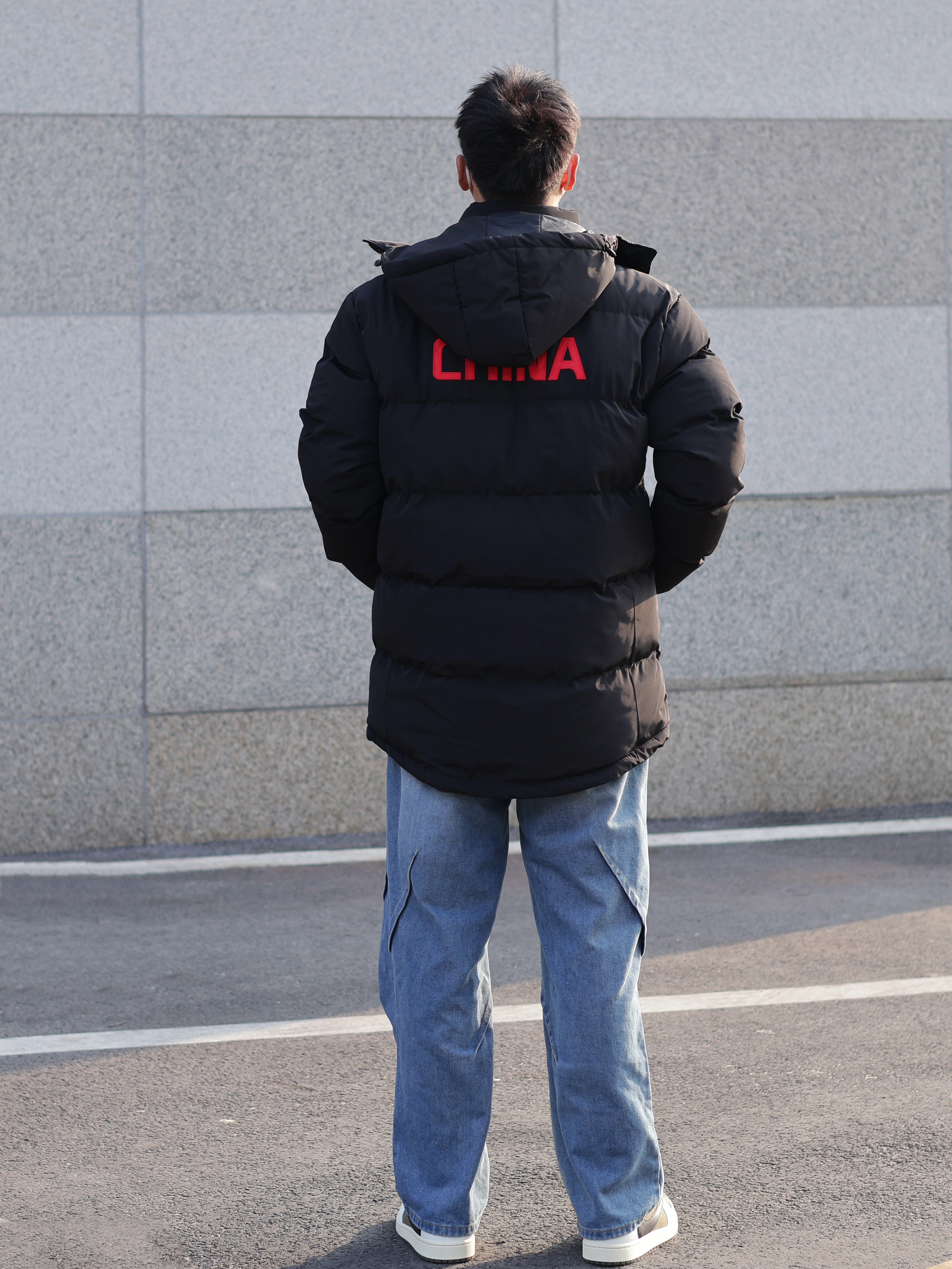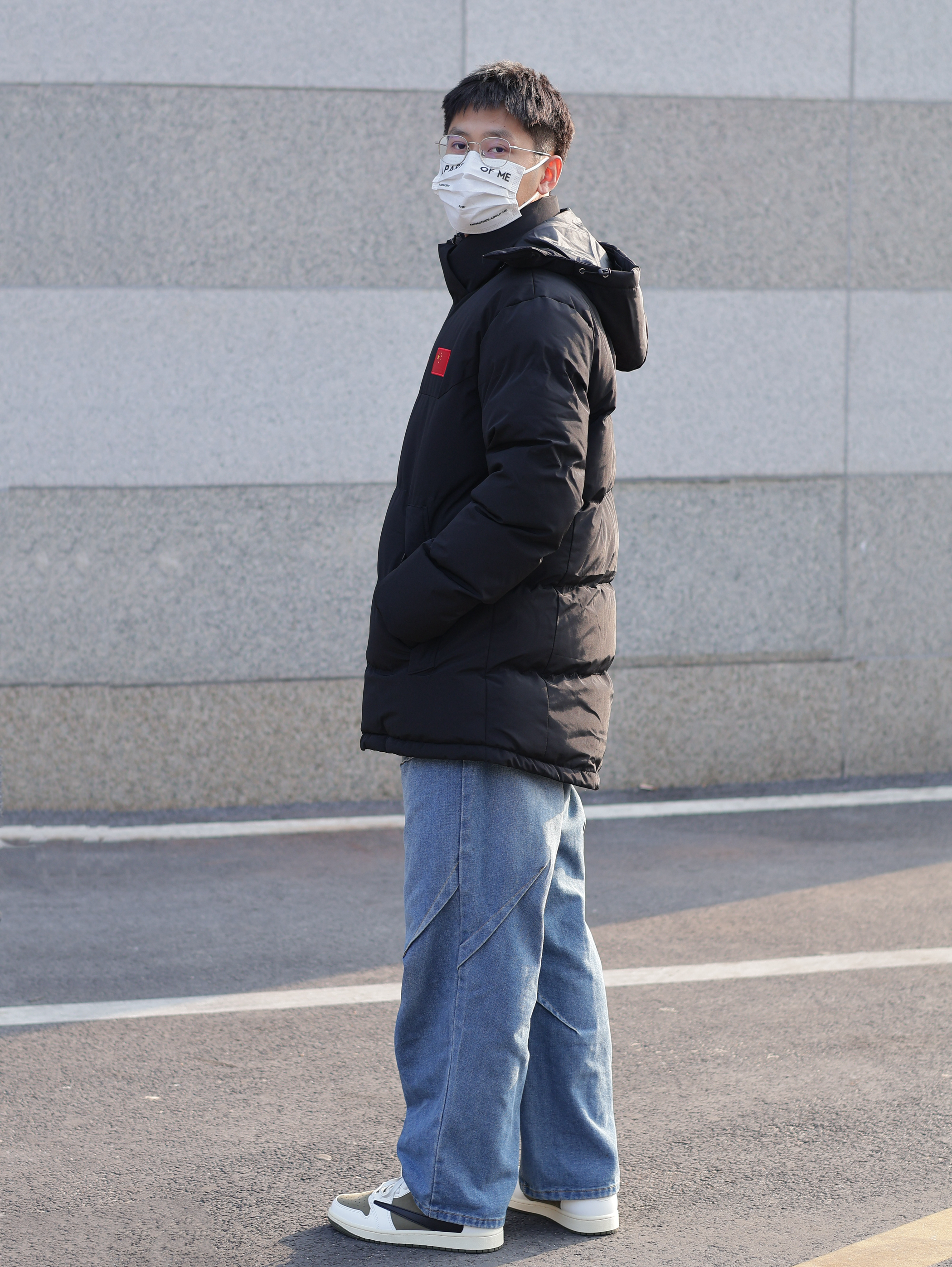 过冬还是想要暖和一点才舒服 上身内搭白T,外套来一件黑色中款棉服 羽绒棉的面料,保暖效果真不错~ 帽子还是可拆卸的立领,全方位防风❄️ 裤子可以搭配牛仔裤👖 最后上脚一双白裤板鞋吧