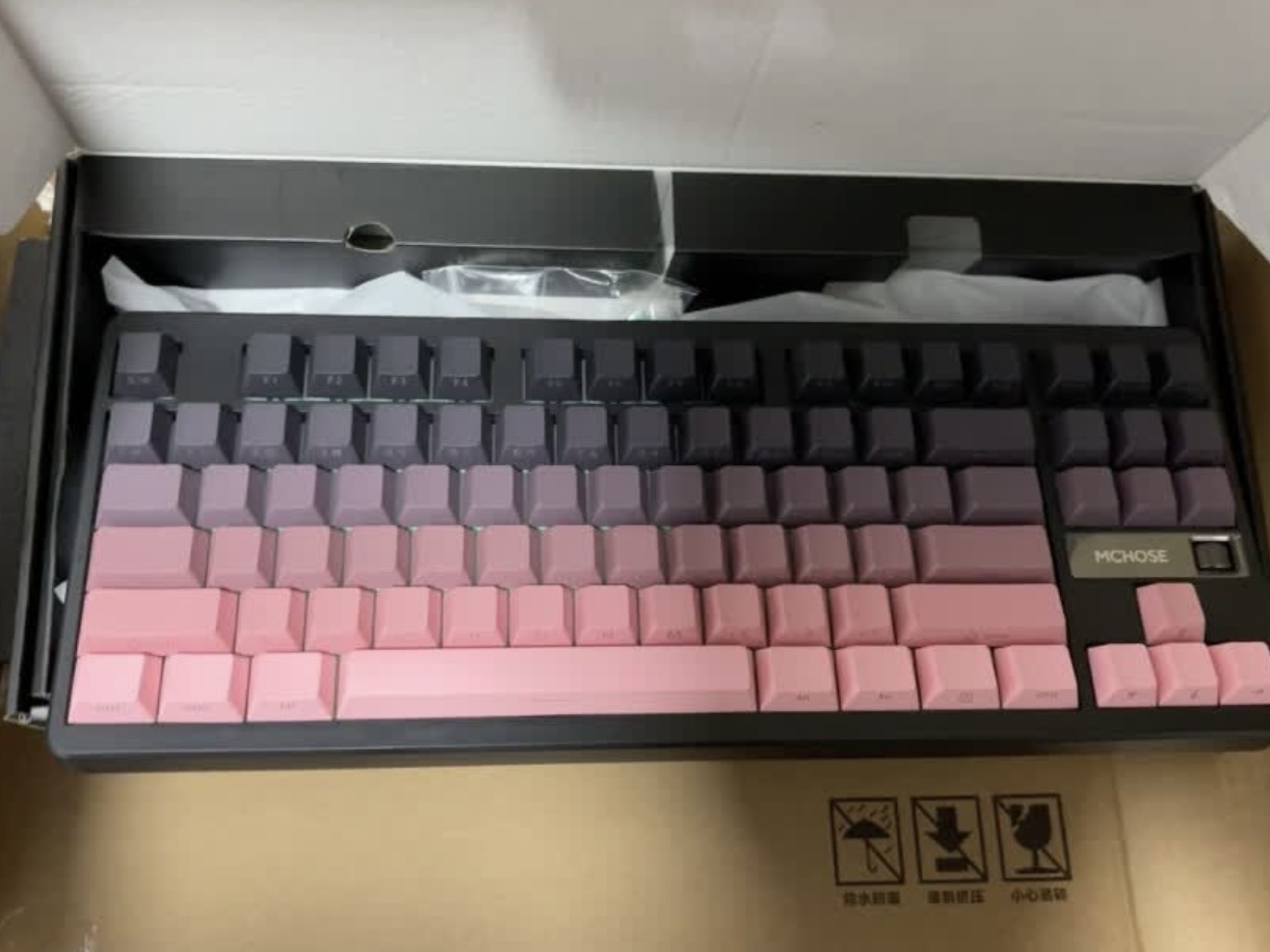 本篇笔记关联了MC/迈从 G87 三模 机械键盘 87键 gasket结构 全键热插拔 电竞游戏 客制化 带旋钮 炽焰轴 黑莓粉 侧刻等商品,为用户提供真实的使用体验和购买参考。
