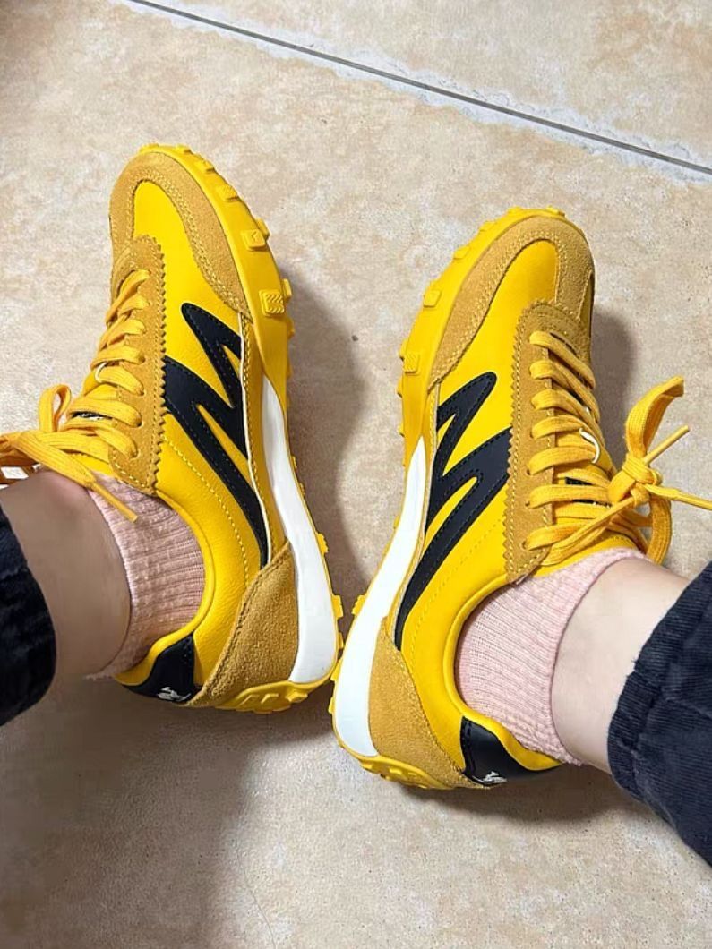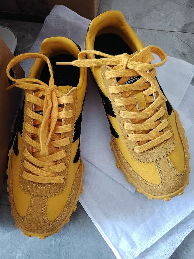 亮黄色搭配黑色上脚吼酷😎 鞋面翻毛皮拼接皮革敲有质感~ 鞋子贼软的 穿上脚软软哒! 鞋底还🈶防滑橡胶~ 日常出乎意料的百搭~ 各种风格都🉑以轻松驾驭! 平时通勤或户外旅游完全OK~ hhh...敲亮眼👀出门不会撞款😜