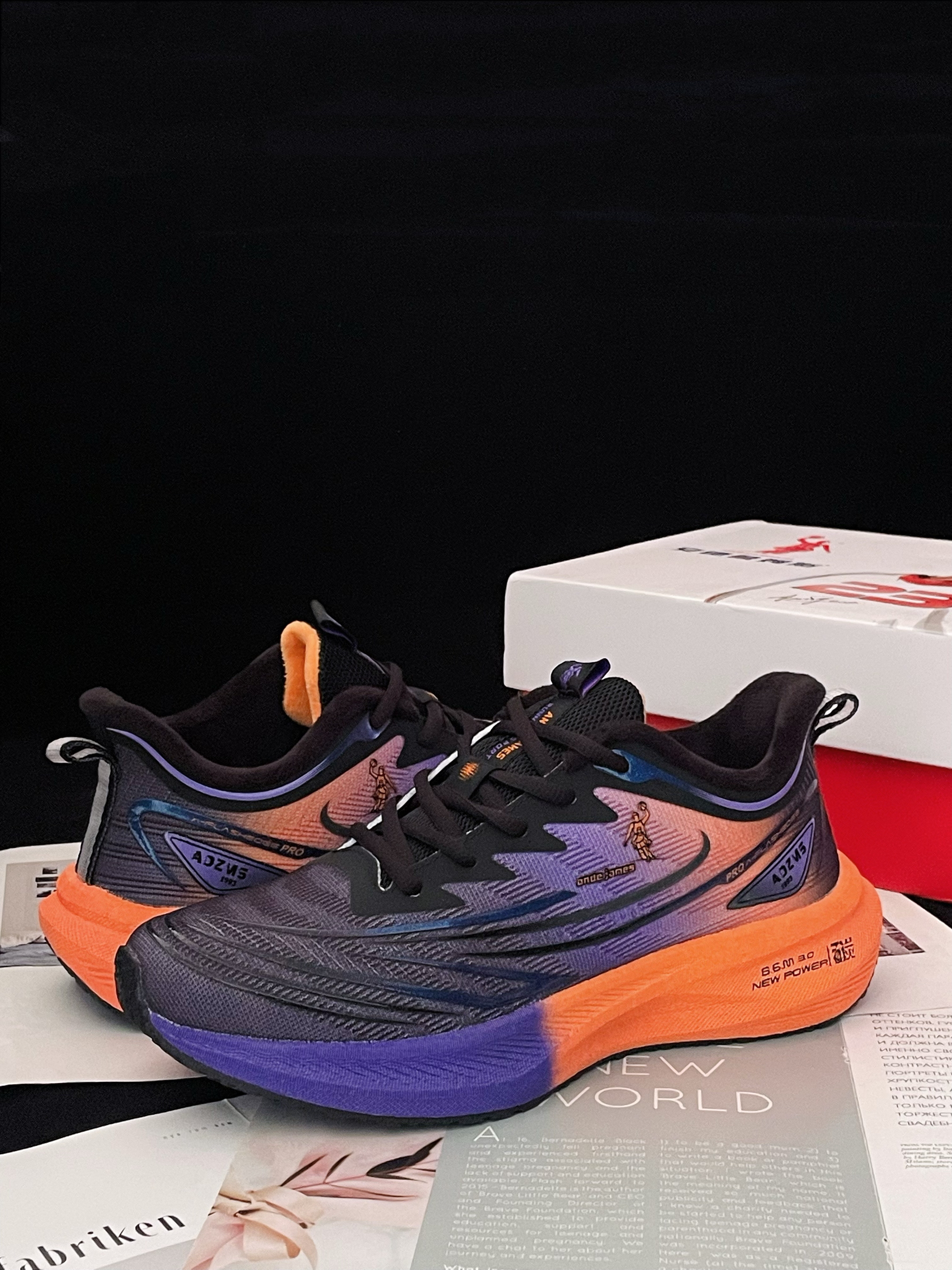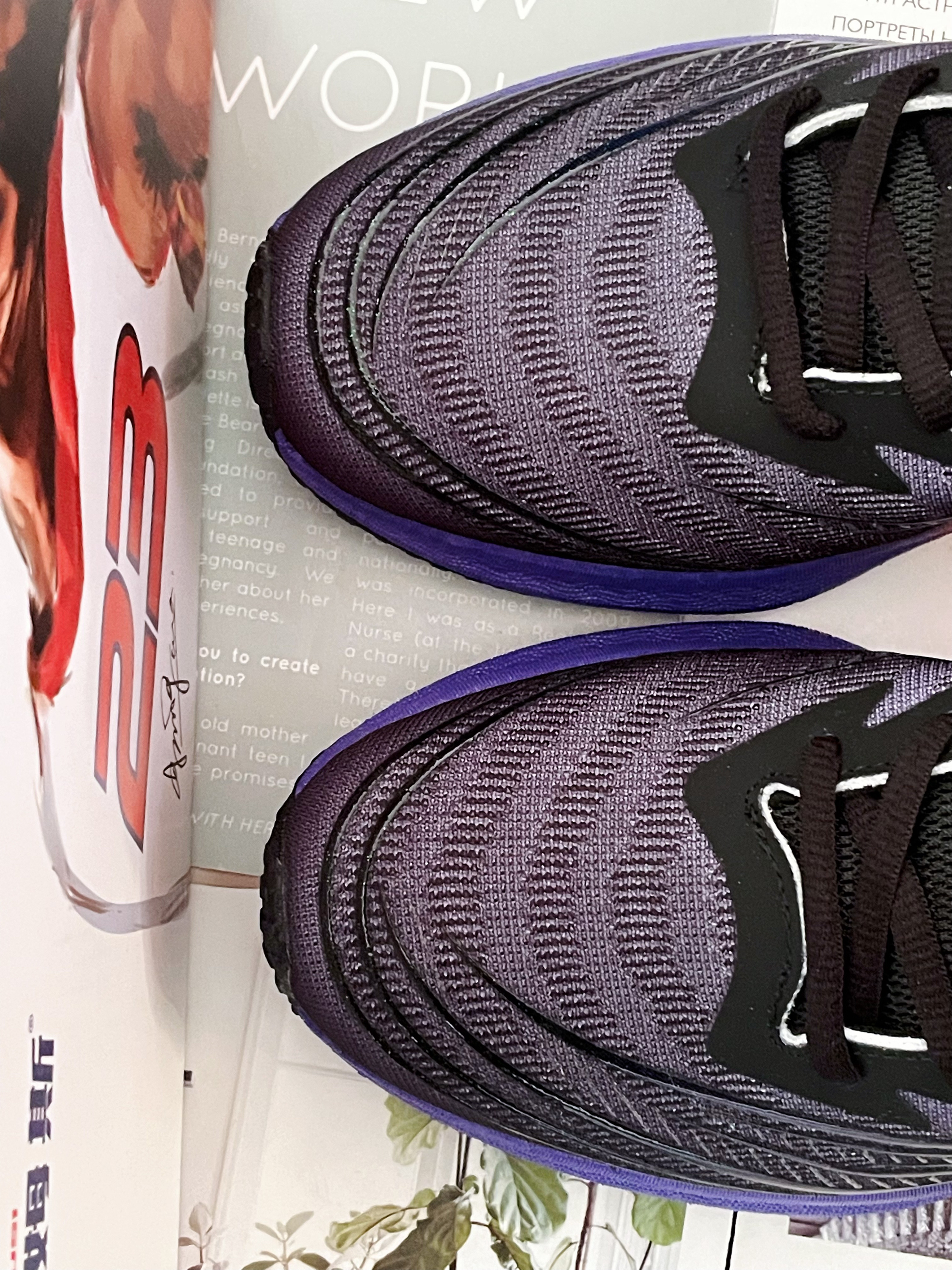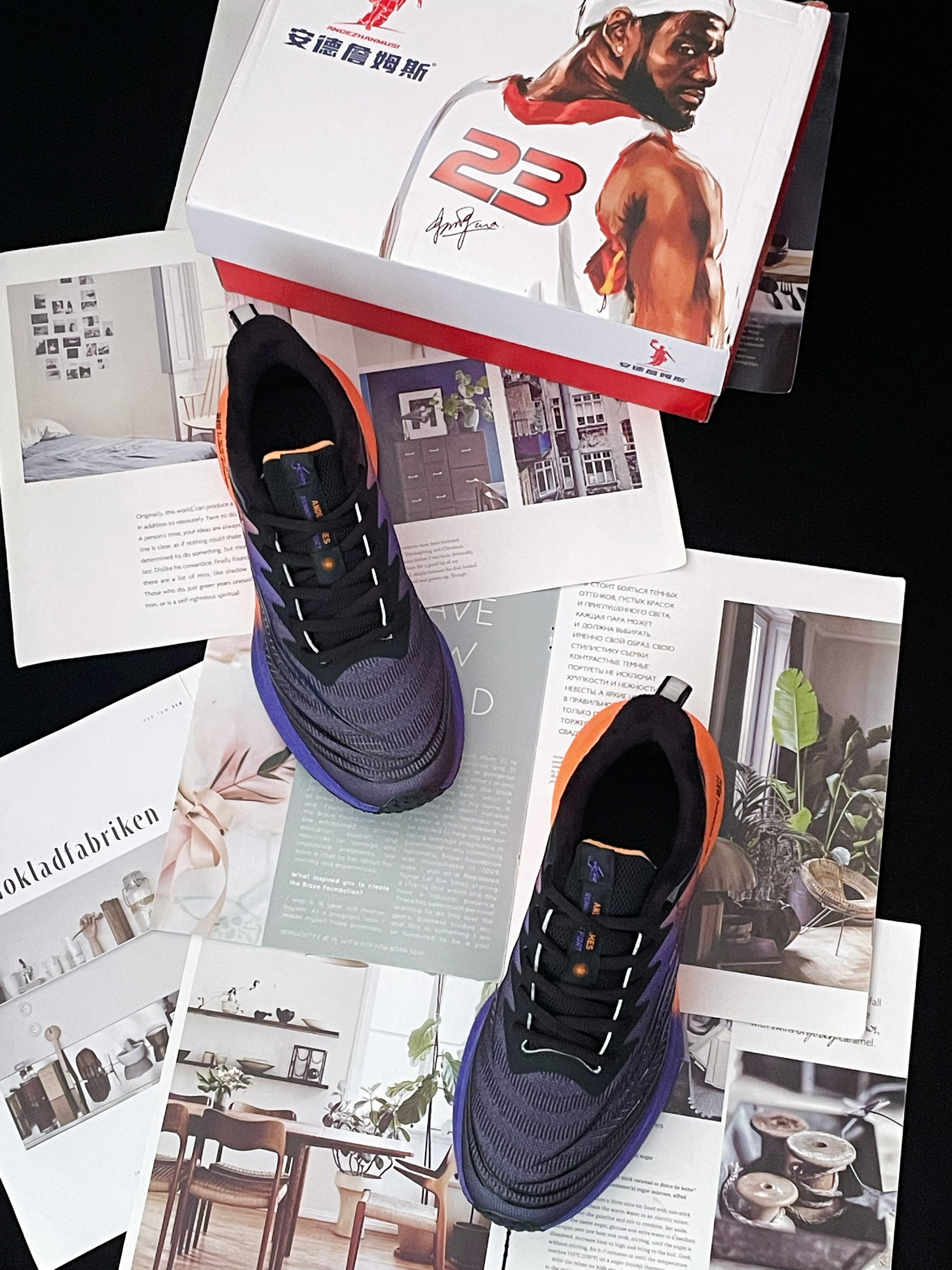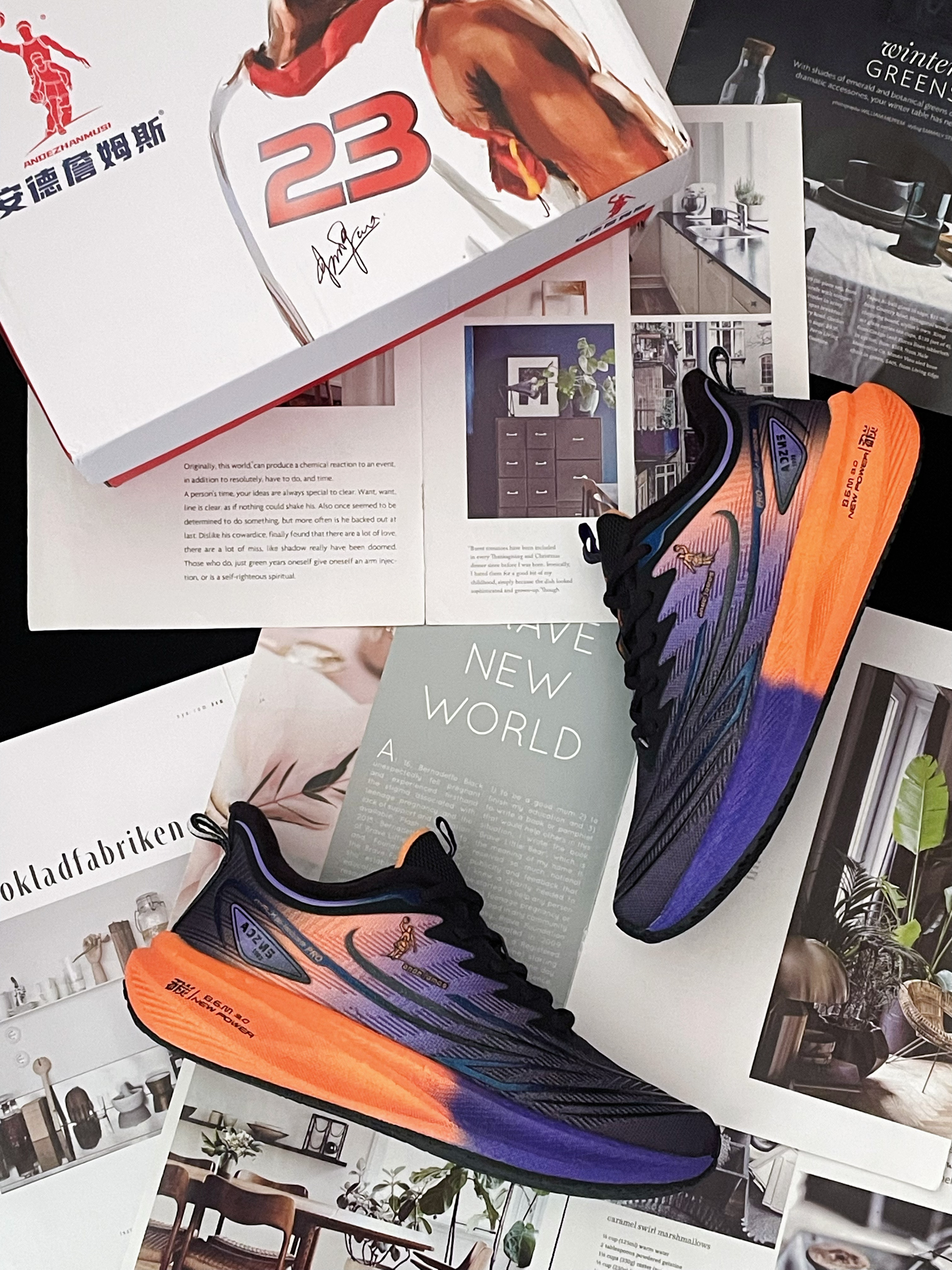 今天给大家分享这双 安德詹姆斯 全掌碳板 加绒跑步鞋 鞋款由黑紫橙渐变为主色调 整体的配色蛮酷帅的 也很有活力~ 鞋面选用了网布织物+热熔补强 不仅轻薄透气 强度和韧性也不错 加绒的内里很保暖 更适合秋冬季节~ 中底搭载了爆米花材质+全掌碳板 脚感软弹 舒适轻盈 抗扭稳定性也到位 不规则纹路大底抓地力出色 耐磨防滑没有问题 ⚠️尺码方面不偏码 建议正码选择