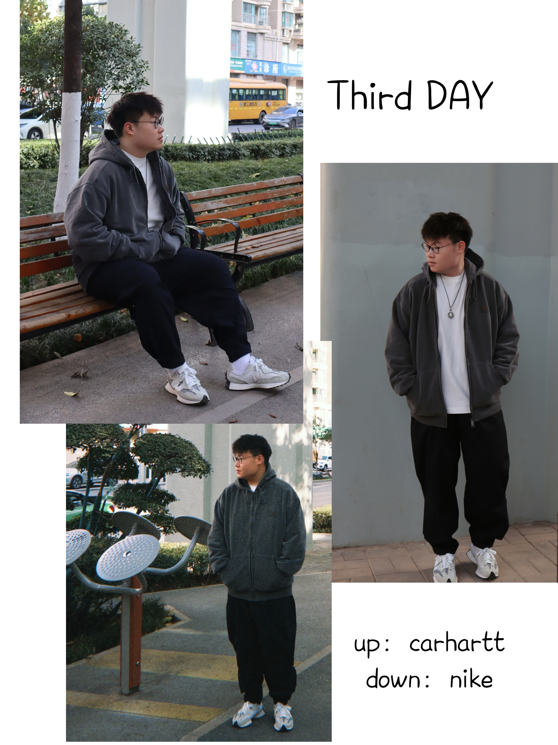 最近冬天经常穿的四套衣服❤️ 参上⬆️ 1⃣️第一套是很保暖的一件炭黑色的羽绒服+西裤 这个羽绒服有两根背带,有拉链和魔术贴两种设计。 2⃣️第二套是卡哈特今年新款羊羔绒厚外套,毛毛很舒服不扎,而且很厚实很温暖。就是衣领容易翘。 3⃣️第三套也是卡哈特的一款水洗夹棉外套,很重的质感,但手感很柔软,穿起来很舒服。 4⃣️第四套是nautica的经典卫衣(长谷川),日产的用料是偏重磅的...