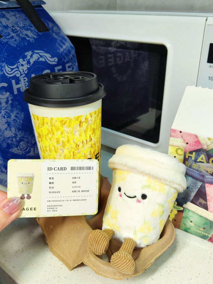早上喝🧋总不会失眠了叭 太疯狂了这些人,还好我没去门店 早上九点多很多店就售完了 远一点的外卖只剩一个,果断拿下 我其实一开始是想要粉色那款的 结果开出来桂馥兰香也很乖