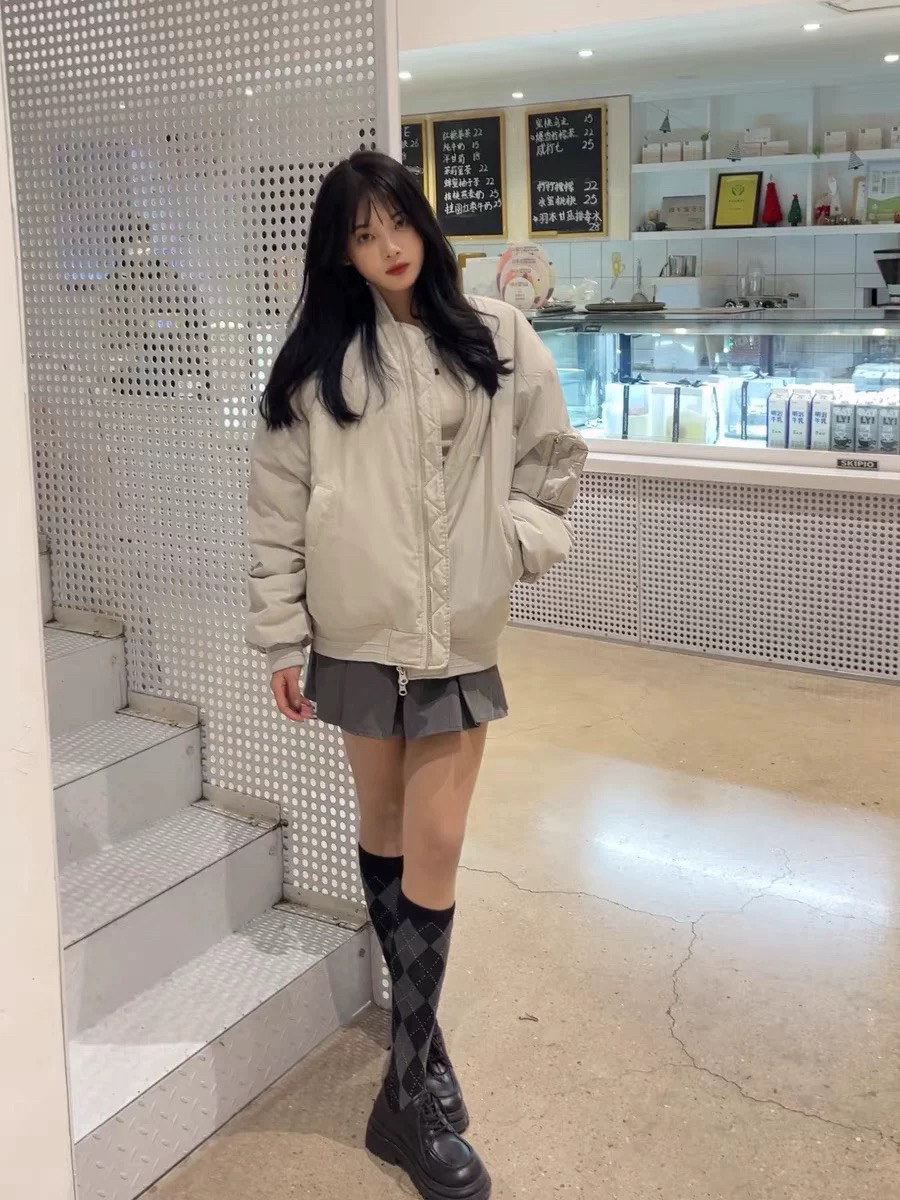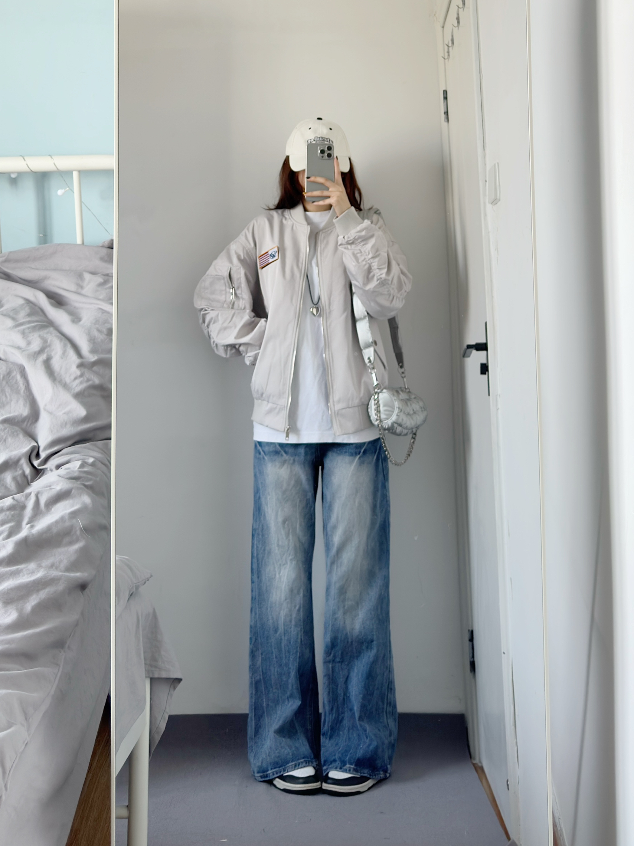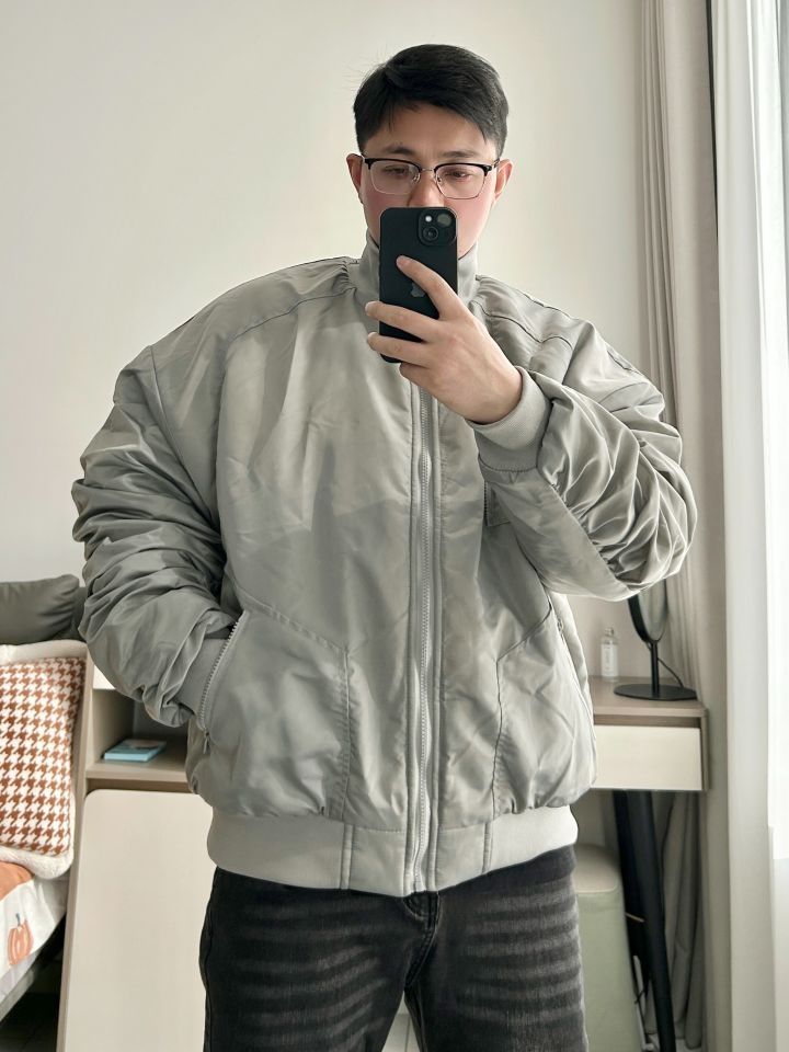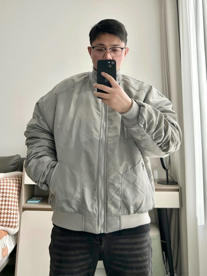今天出门这么搭 一件新因素灰色飞行夹克棉服外套 宽松版型,上身酷感个性 加厚棉服很保暖 搭一条新因素牛仔裤 鞋子 JEEP SPIRIT 厚底高帮板鞋 加绒加厚很保暖