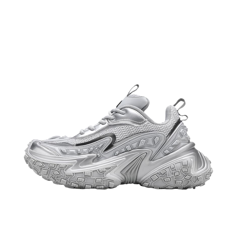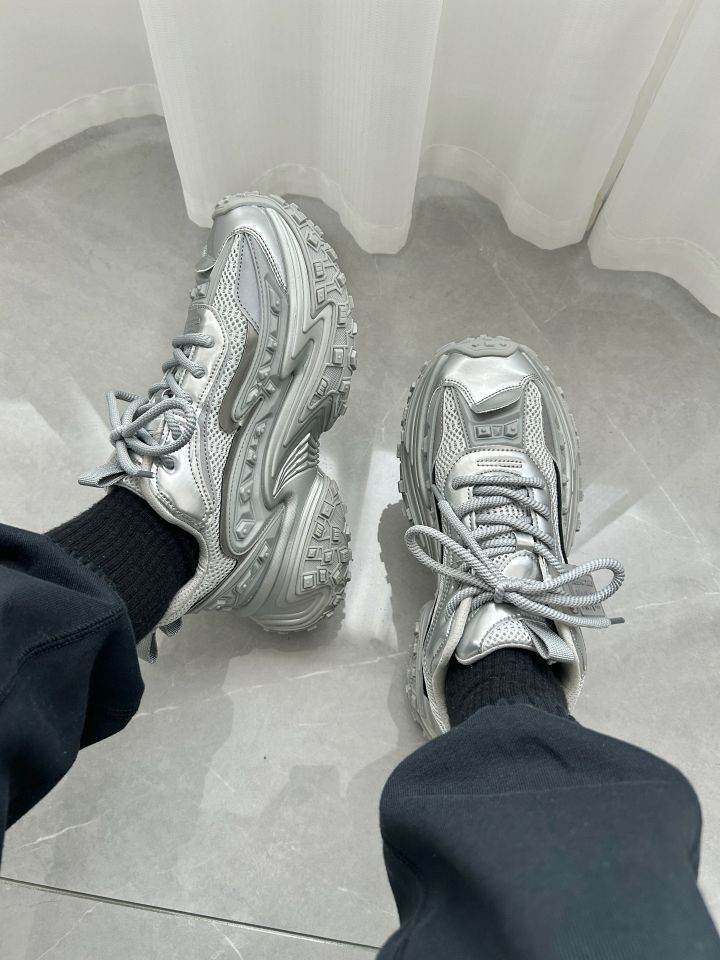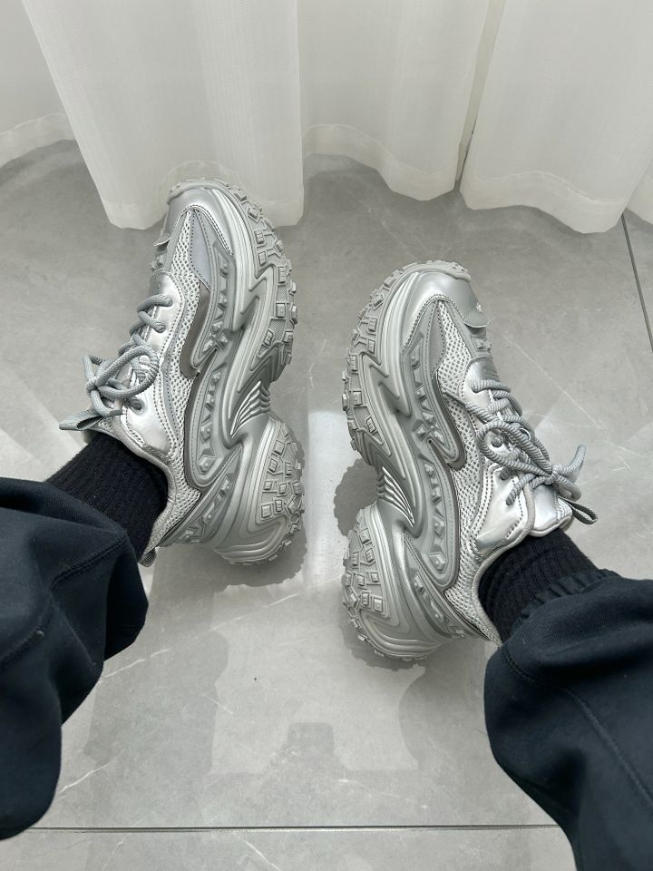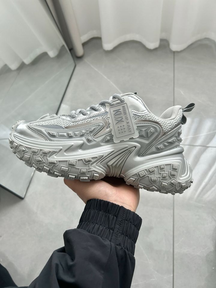 一件耐克立领夹克外套 蓬松柔软,宽松舒适保暖 搭一条耐克黑色宽松束脚裤 一双 KUX 轮胎厚底银色机能感老爹鞋 银色皮革网面鞋面,很亮眼,质感很好 上脚很好看,机能潮流酷感个性 内里柔软保暖舒适 加厚防滑耐磨鞋底,显高又舒适