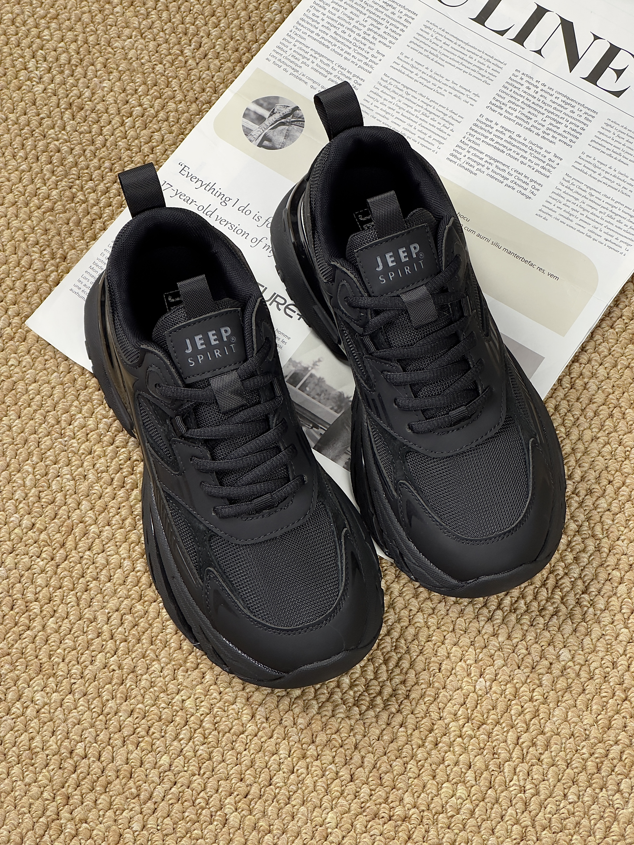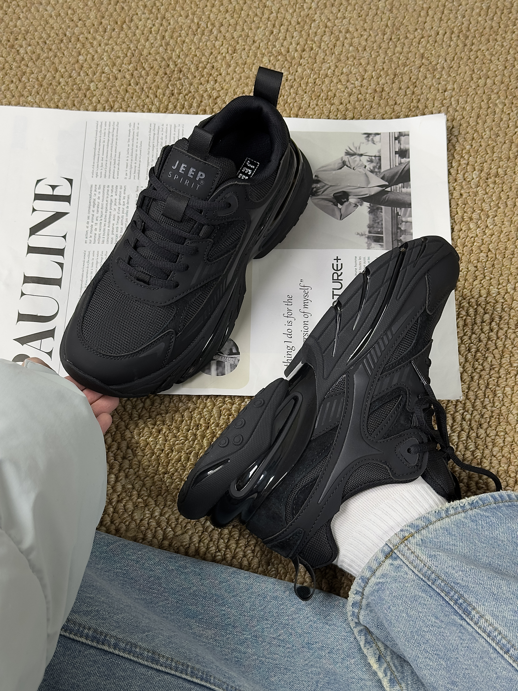 hello,这里是陈白羊🐑!冬天鞋柜里怎么能少得了一双酷酷的黑武士老爹鞋~ 来自JEEP SPIRIT 纯黑色🖤的鞋身与机能风鞋型的组合 看起来复古又未来✨ 黑武士配色又帅又耐脏 鞋面多种材质拼接 增加了鞋子的层次感 日常拿去搭浅色牛仔裤👖就吼吼看~ 上脚太显腿细了,又显腿长 而且脚感也很轻便 跑步运动或者通勤穿都🉑 🌟:尺码不偏码,按平时穿着尺码即可。
