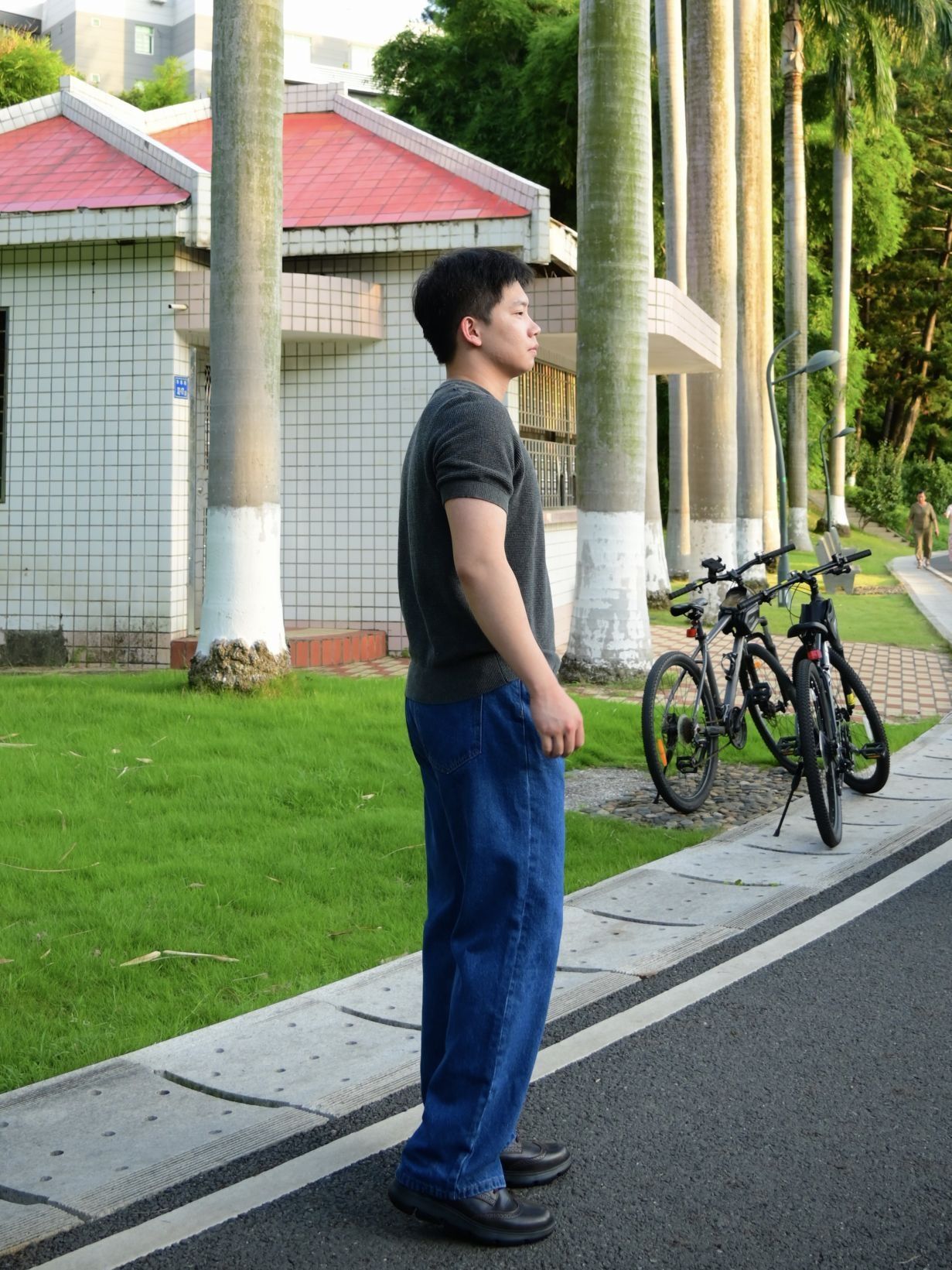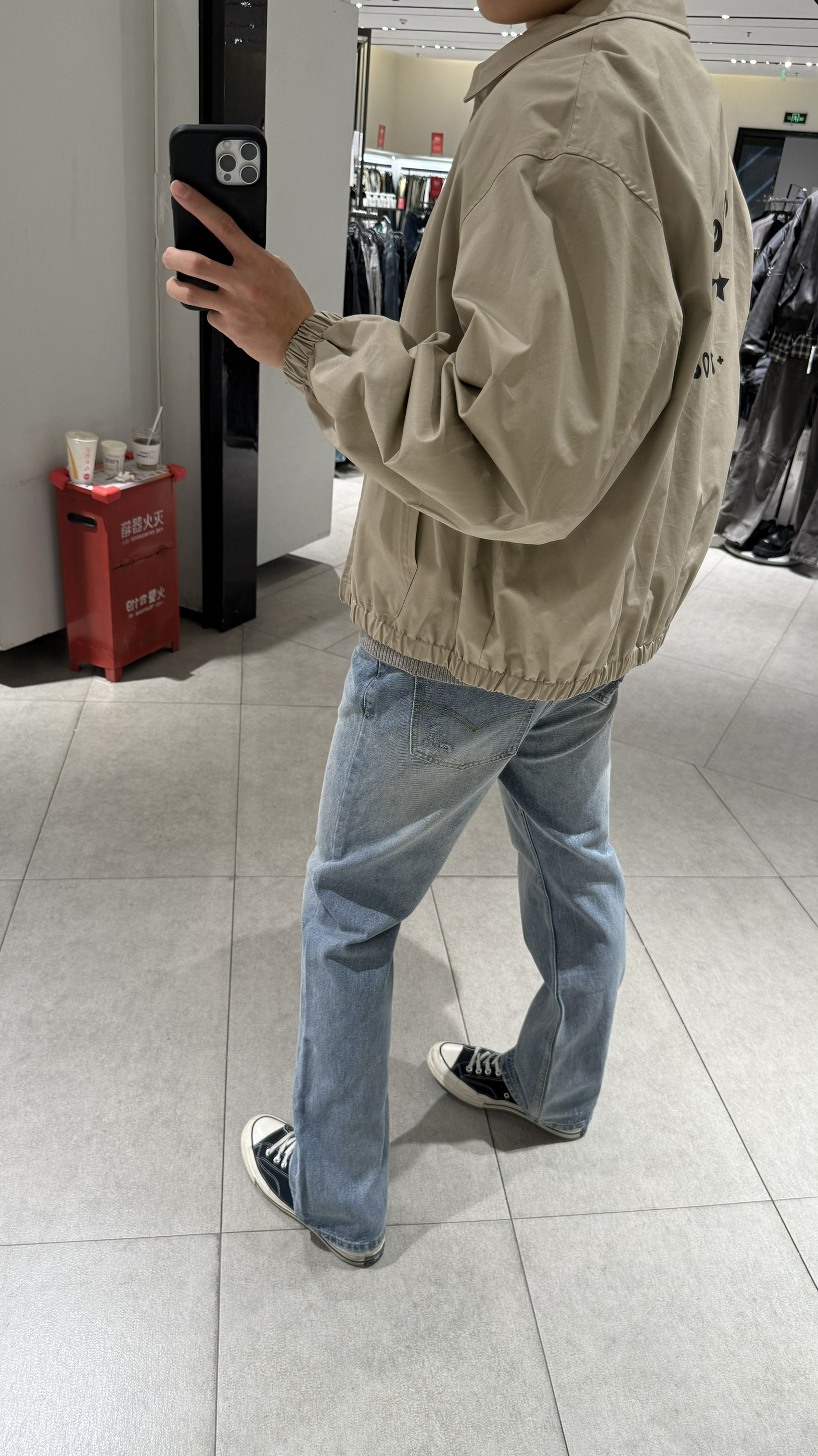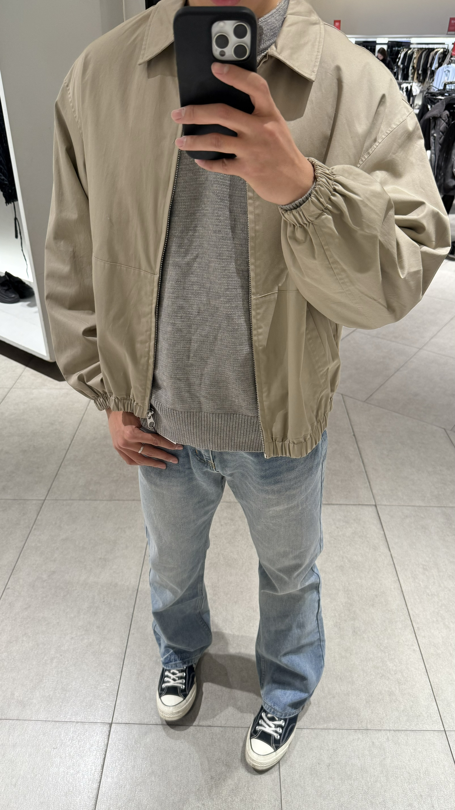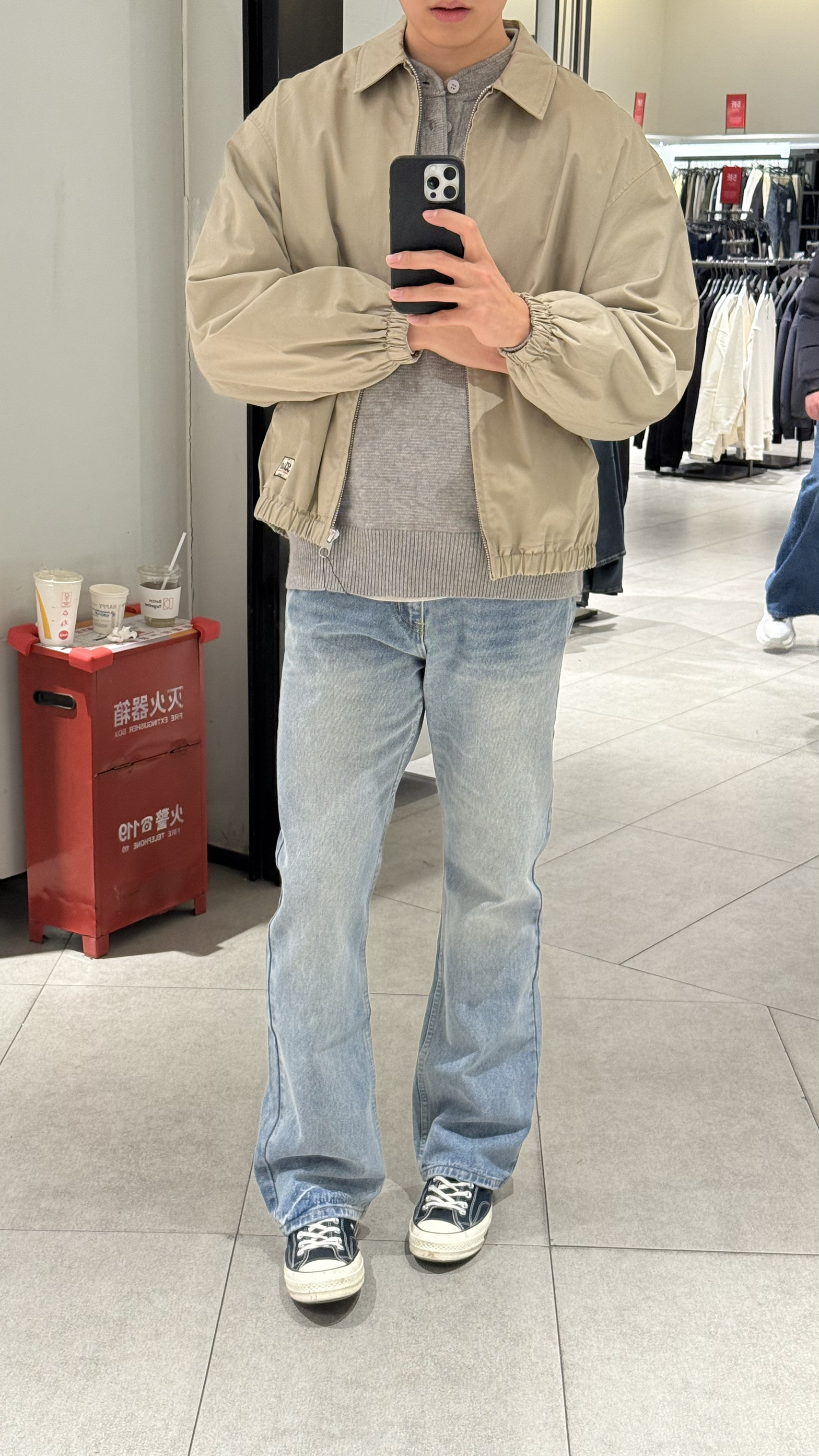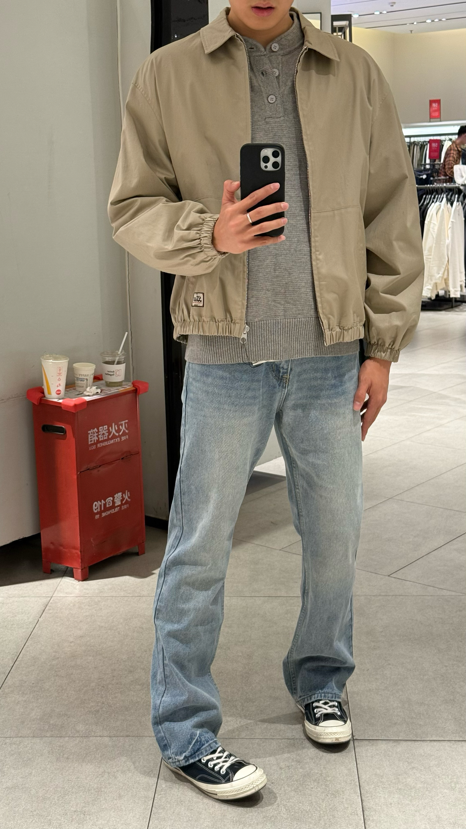身高|体重:190/83kg 🧍♂️ 穿搭风格:老钱风 👔 上衣:一款卡其灰色外套 👖 下装:李维斯牛仔裤 👟 鞋子:匡威 🎒配饰:🈚️