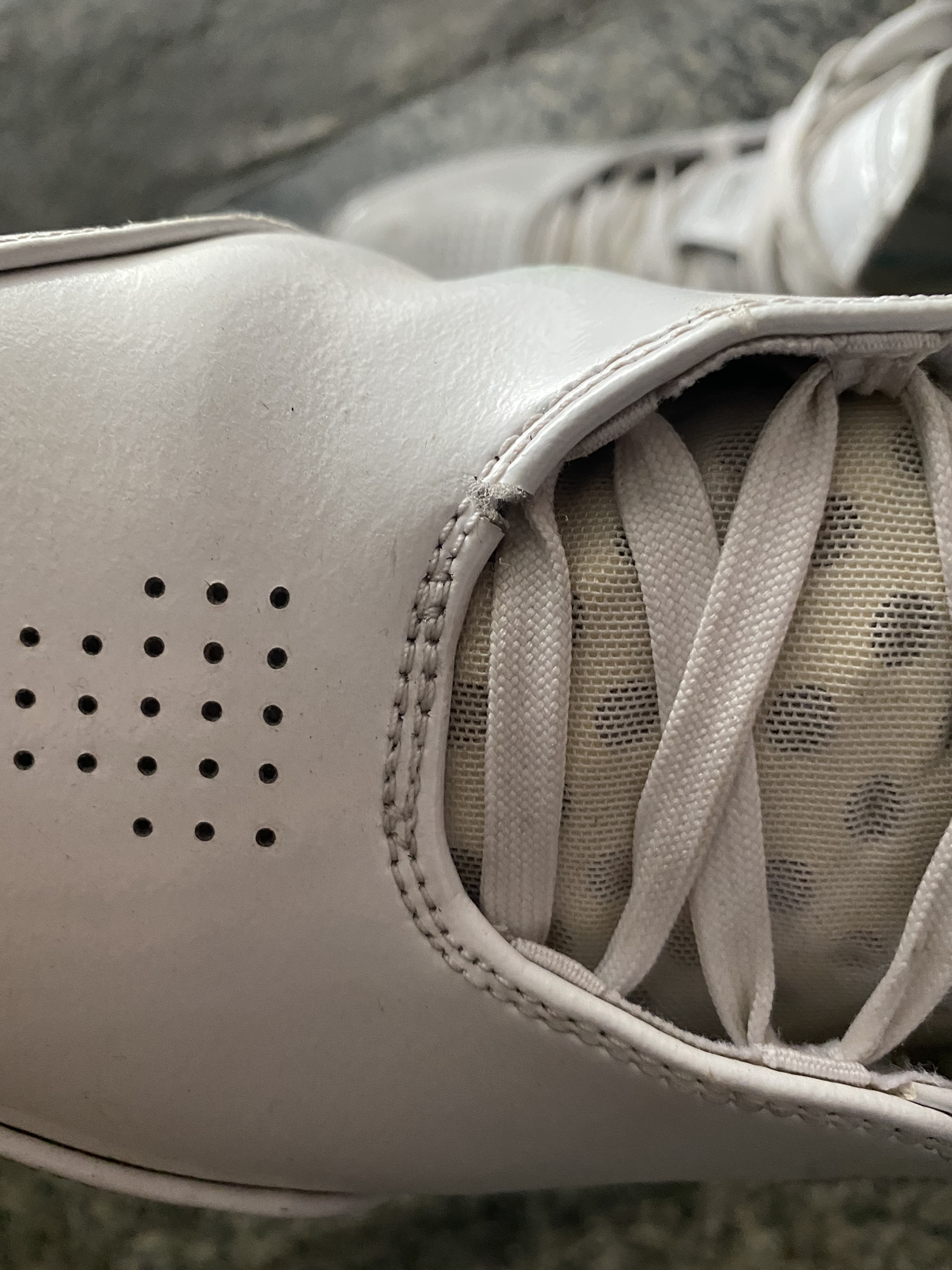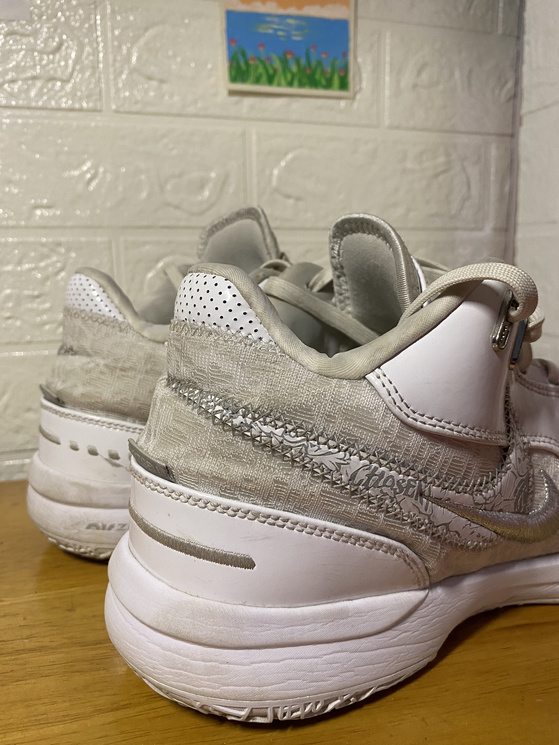 分享一下这双Nxxt多场穿着下来的实战感受. 本人体重83kg.7投3突.以下内容仅个人感受 前后zoom气垫的脚感很好,过度感觉挺舒适的,气垫也没有导致重心穿起来很高,后跟稳定性相比詹姆斯20好很多,不会软塌塌带来崴脚风险! 我买的这个白色漆皮版,颜值挺高的,鞋面可能会裂开一点点,参考最后一张图.漆皮和aj11同款,实战起来容易刮蹭,容易褶皱,但是实战鞋相对来说比较没关系. 漆皮版的包...