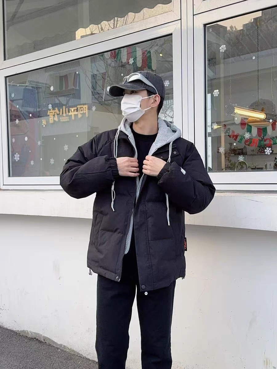 这件假两件的羽绒服好好穿,黑色和灰白色的搭配泰高级了,很有层次感。卫衣帽子够大,整体也很厚实,里面内搭一件T恤就很暖和。今年冬天保命厚外套就靠它啦!面料感是看到的厚实,穿上真的很保暖。宽松版型,遮肉显瘦,不臃肿哦~ (图片来自网络,侵删)