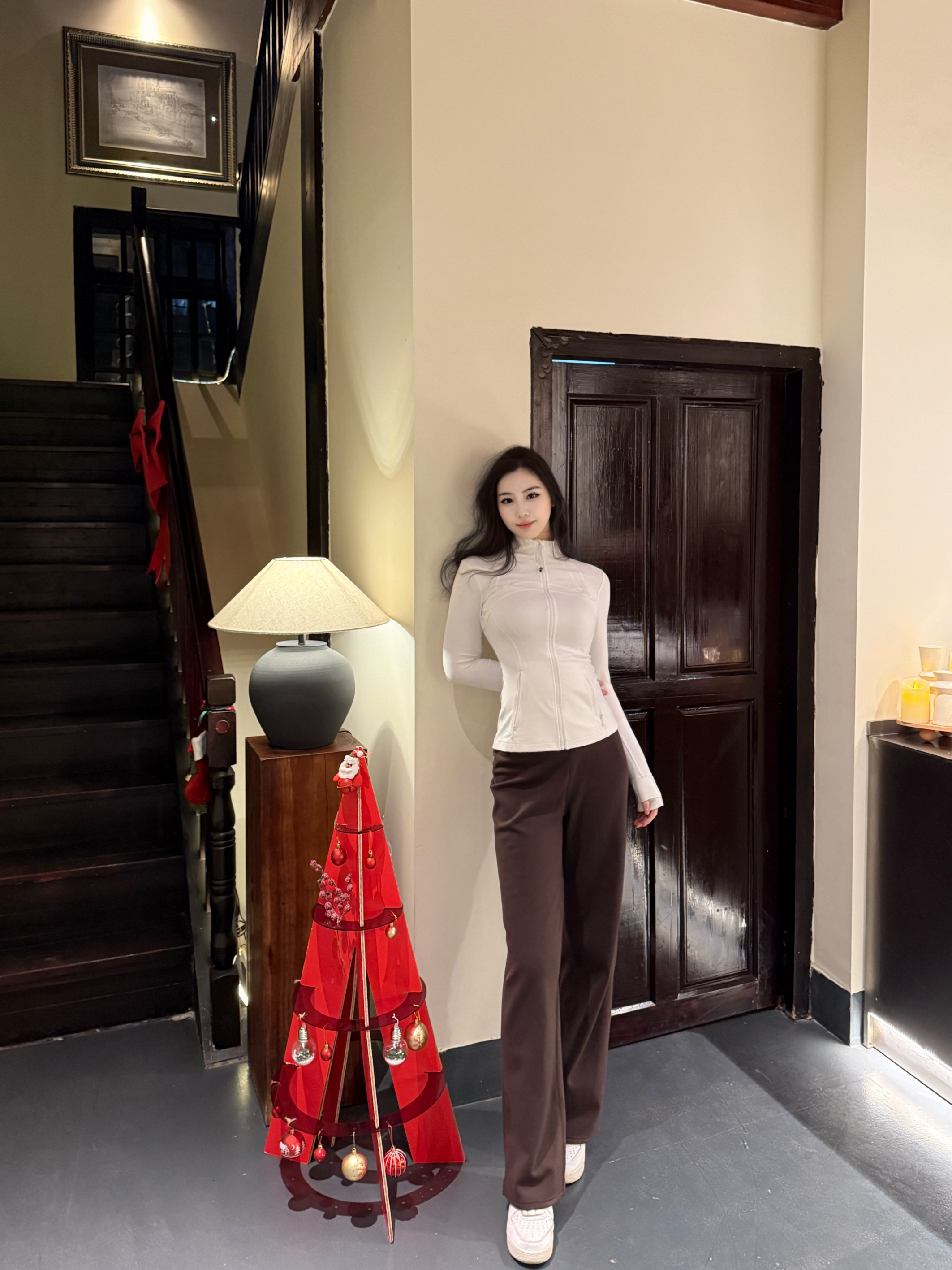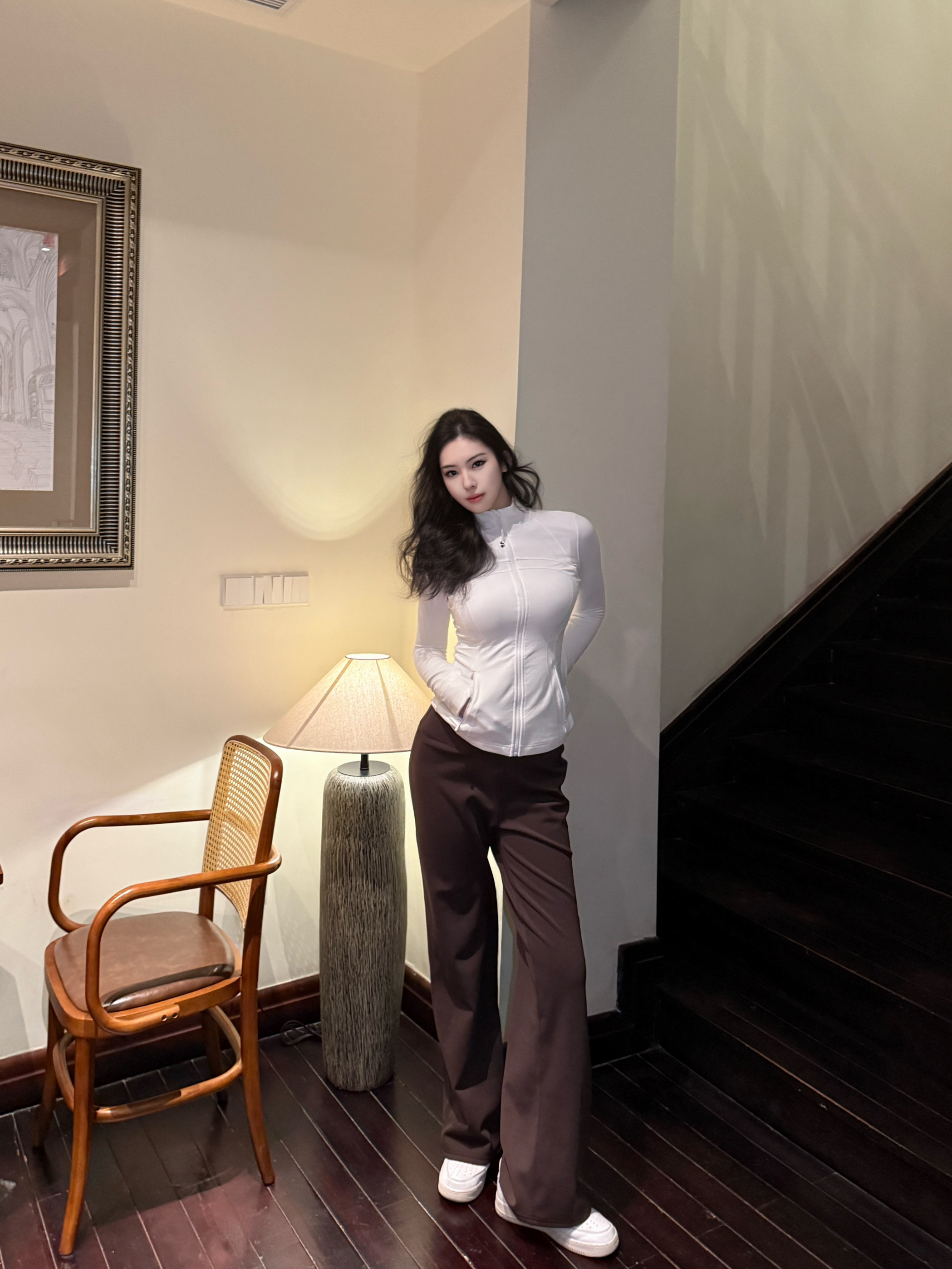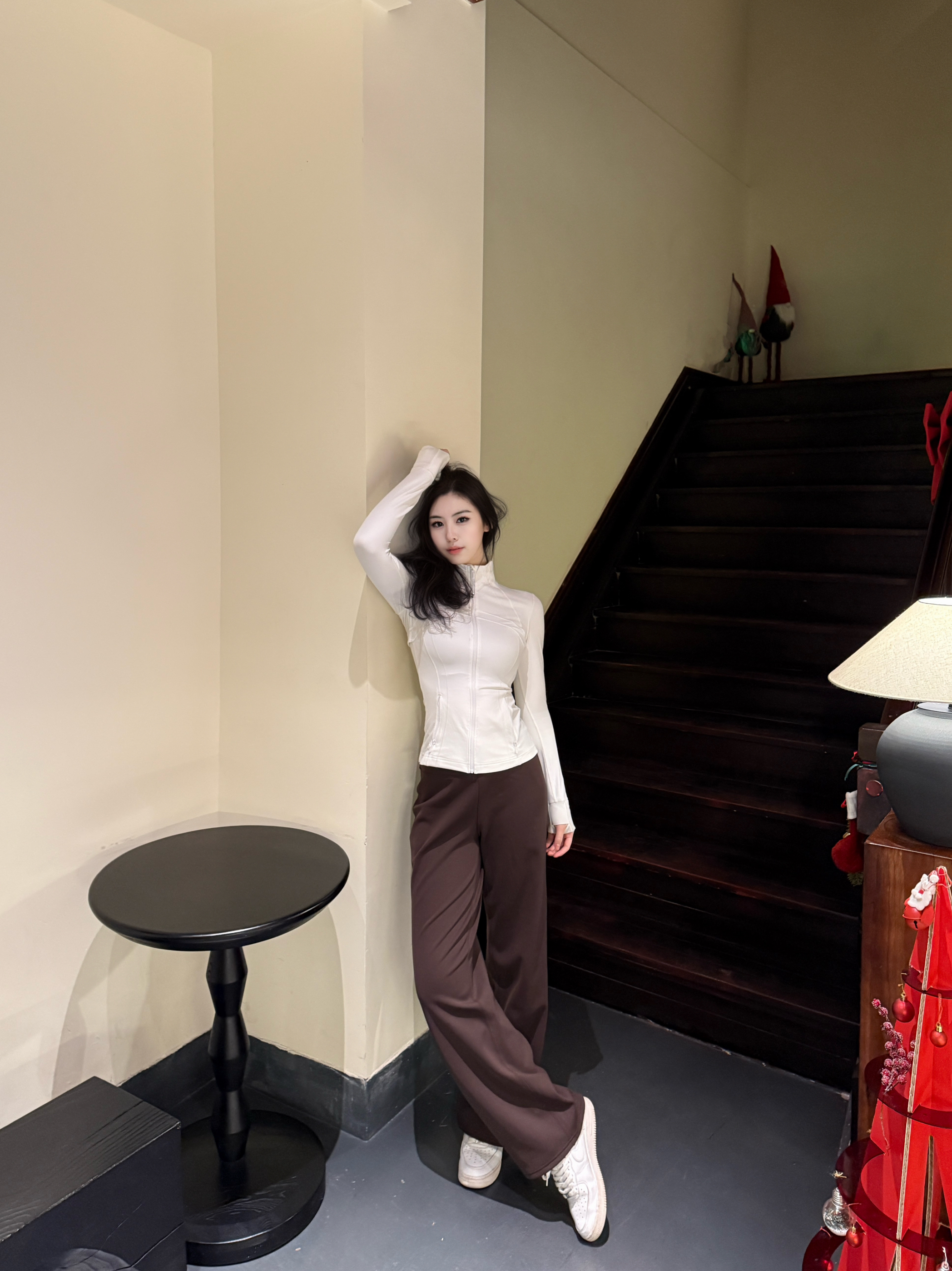 冬天运动怎么穿? 试试修身夹克➕宽松直筒裤吧 Lululemon家白色define真的是心头爱了 今天搭配sinsin加绒直筒裤 白➕棕的配色简约高级 冬日clean girl穿搭 我是175/120 这件穿L码加长 长度是完全OK的 腰围稍微有一点点松 刚刚好的感觉 北方的冬天可以再加一条秋裤 夹克外面穿一件羽绒服就可以暖暖过冬啦