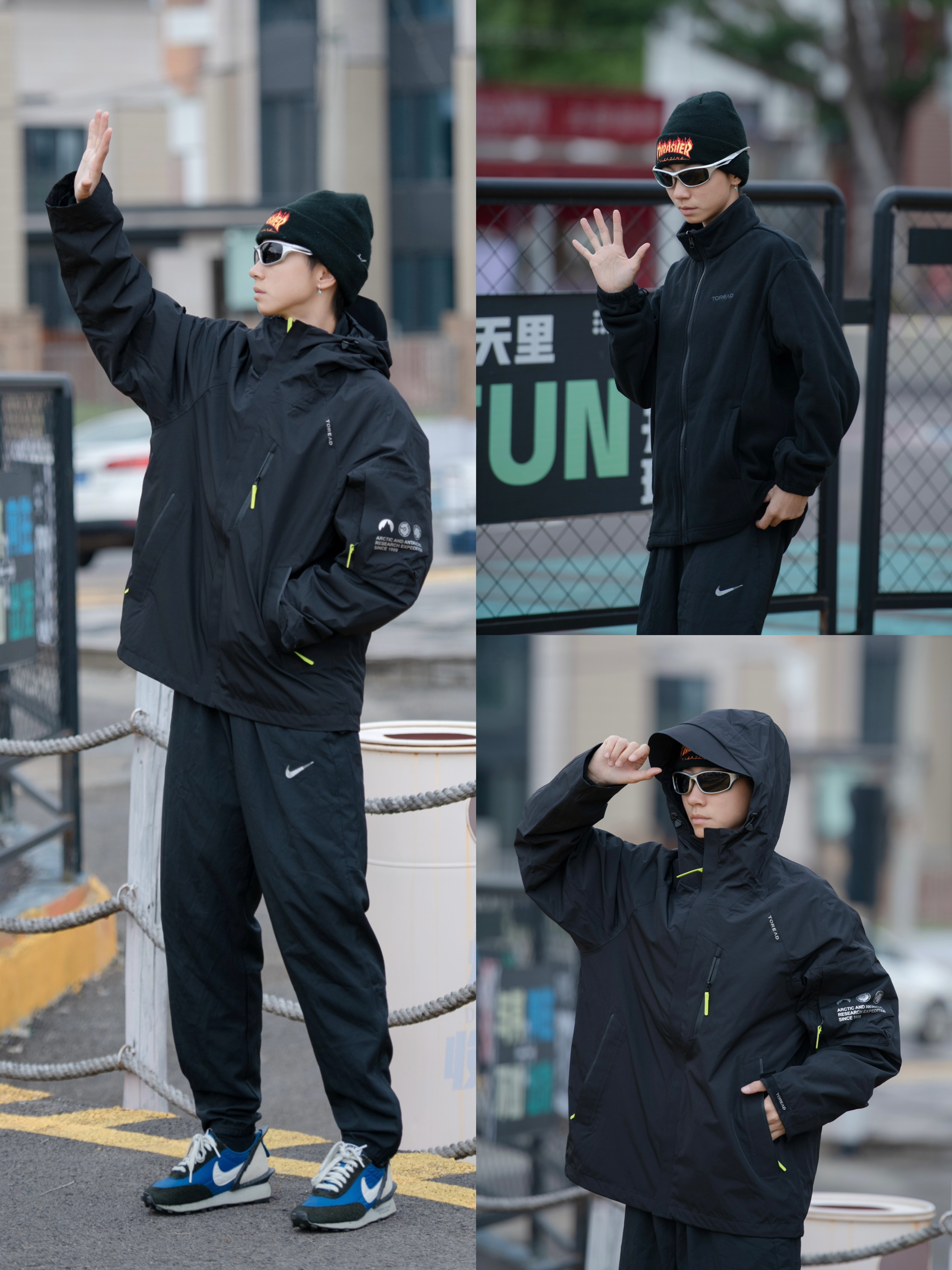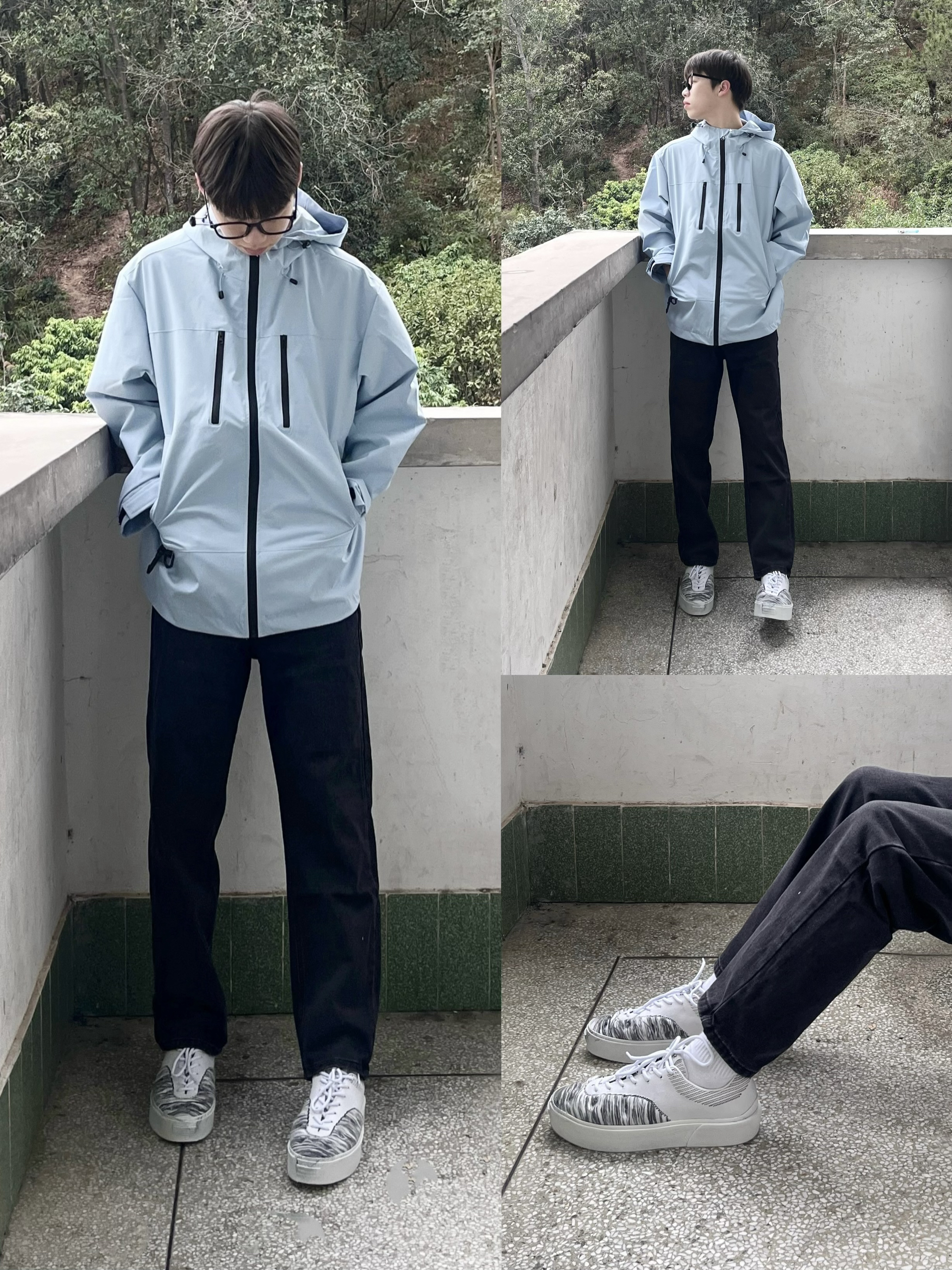 这件冲锋衣整体都是很简约的,上身很宽松,很显瘦,还是防风防水的哦😊🤗 衣服里面也很有余量,冷了可以给里面套厚卫衣、毛衣等等...不会显臃肿(◍•ᴗ•◍) 裤子平常搭配简单的牛仔裤、运动裤就很不错😉😉😉 男女同款,喜欢的宝宝可以看看(◍•ᴗ•◍) 图源网络侵删