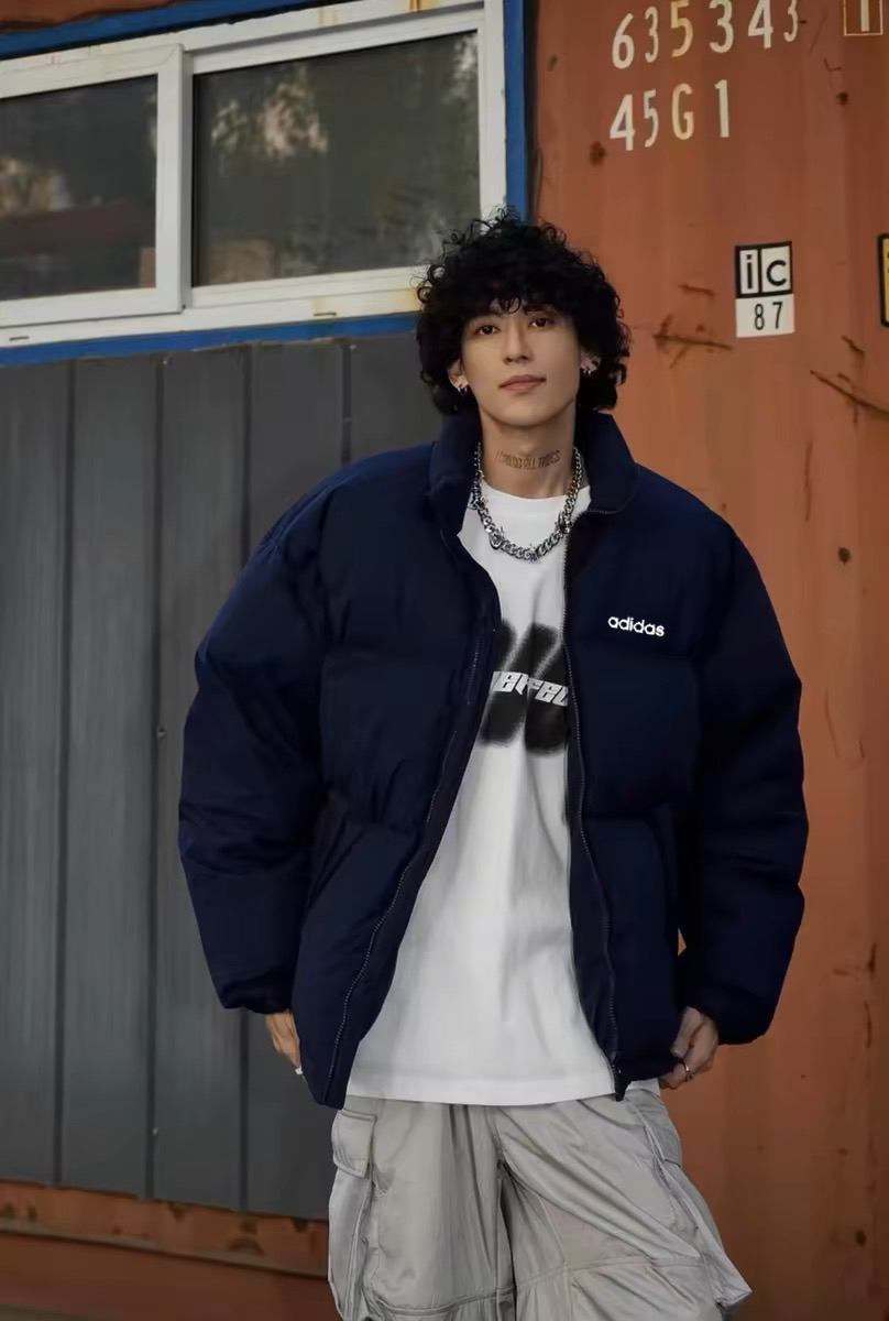 男女同款的羽绒服,上身很好看,属于简约风,立领设计很防风。衣服口袋设计有纽扣,平常揣手机东西类的不容易掉。版型就是常规款,不显肩宽。70%鸭绒在南方几度左右,里面穿个卫衣也完全没问题。 (图片来自网络,侵删)