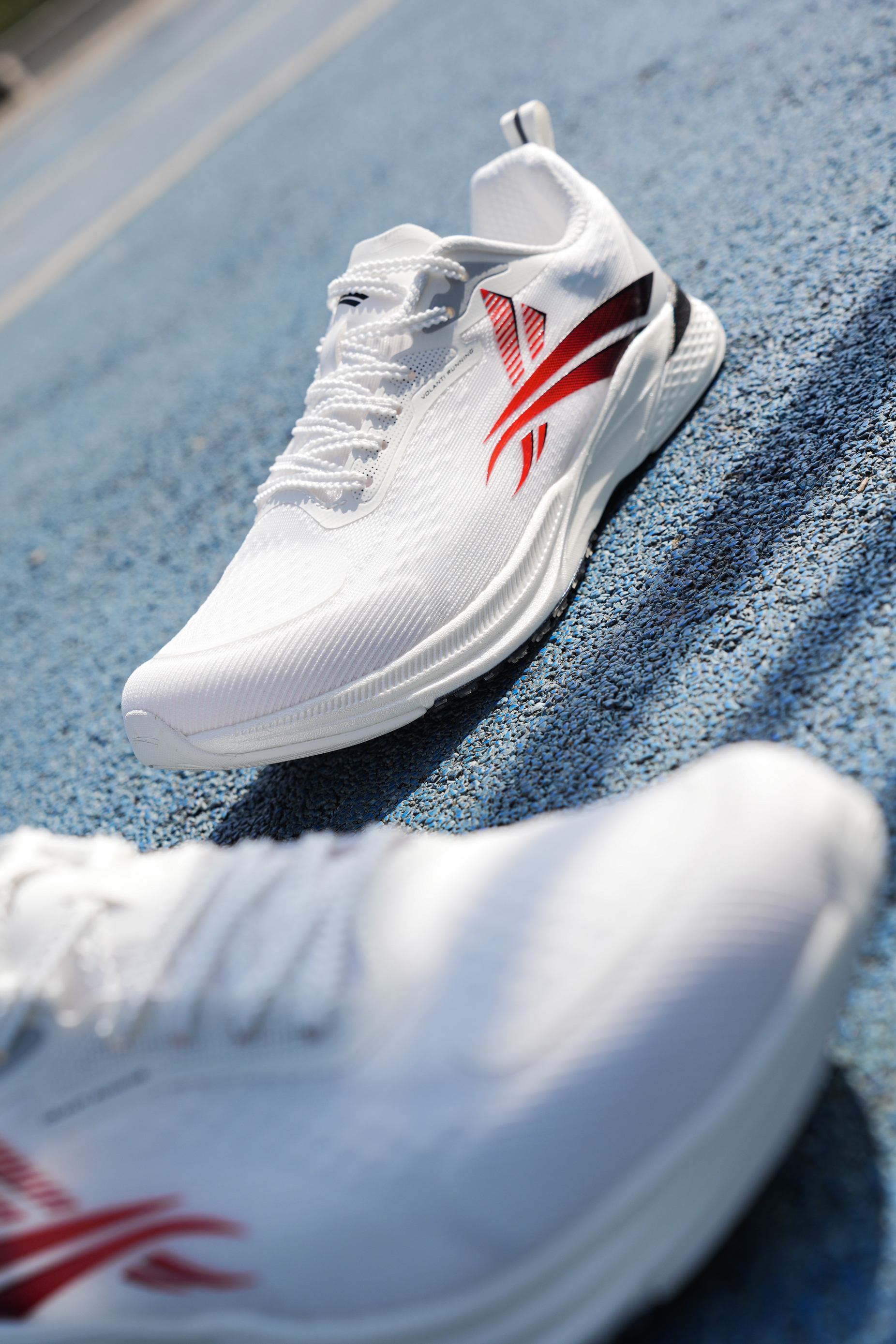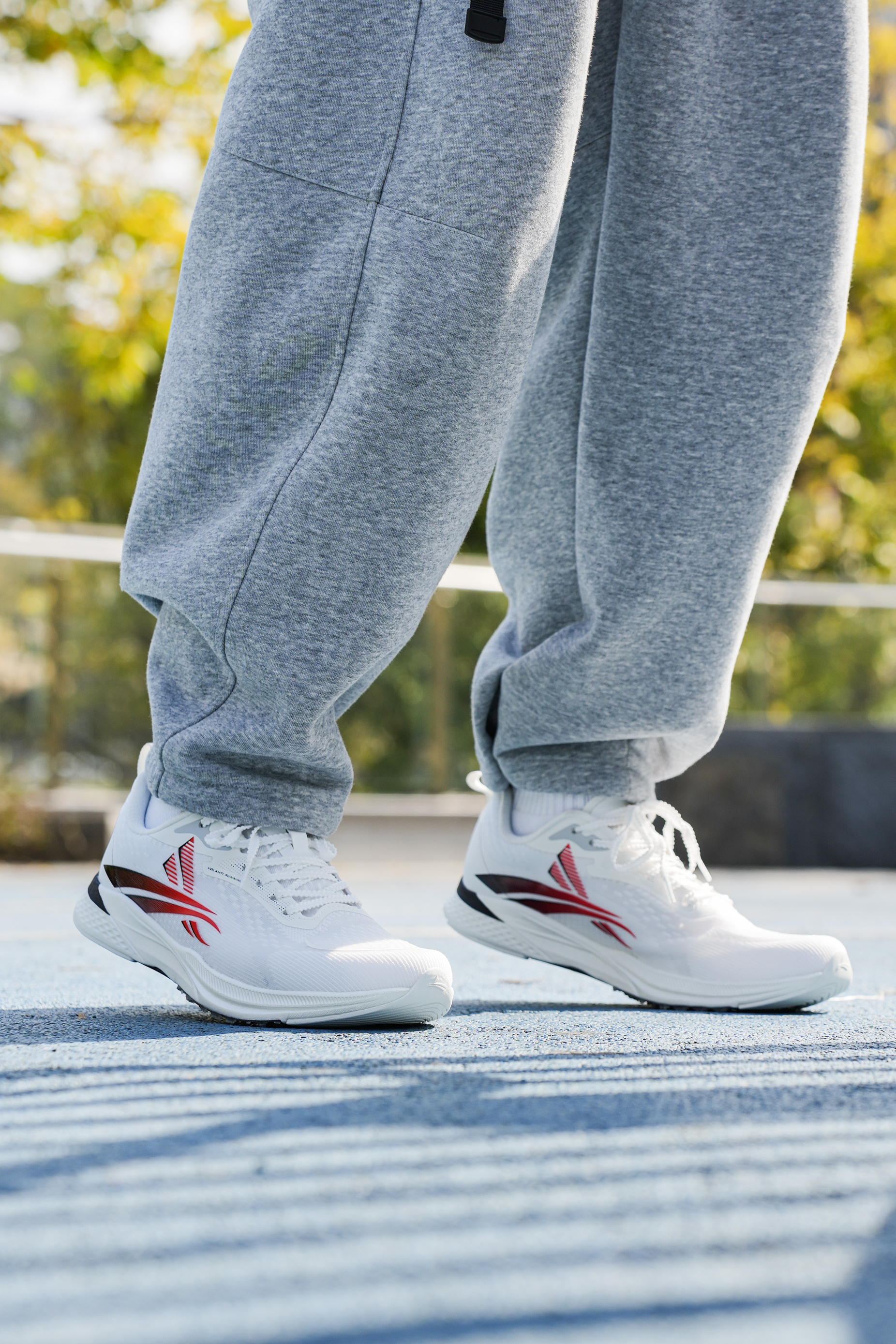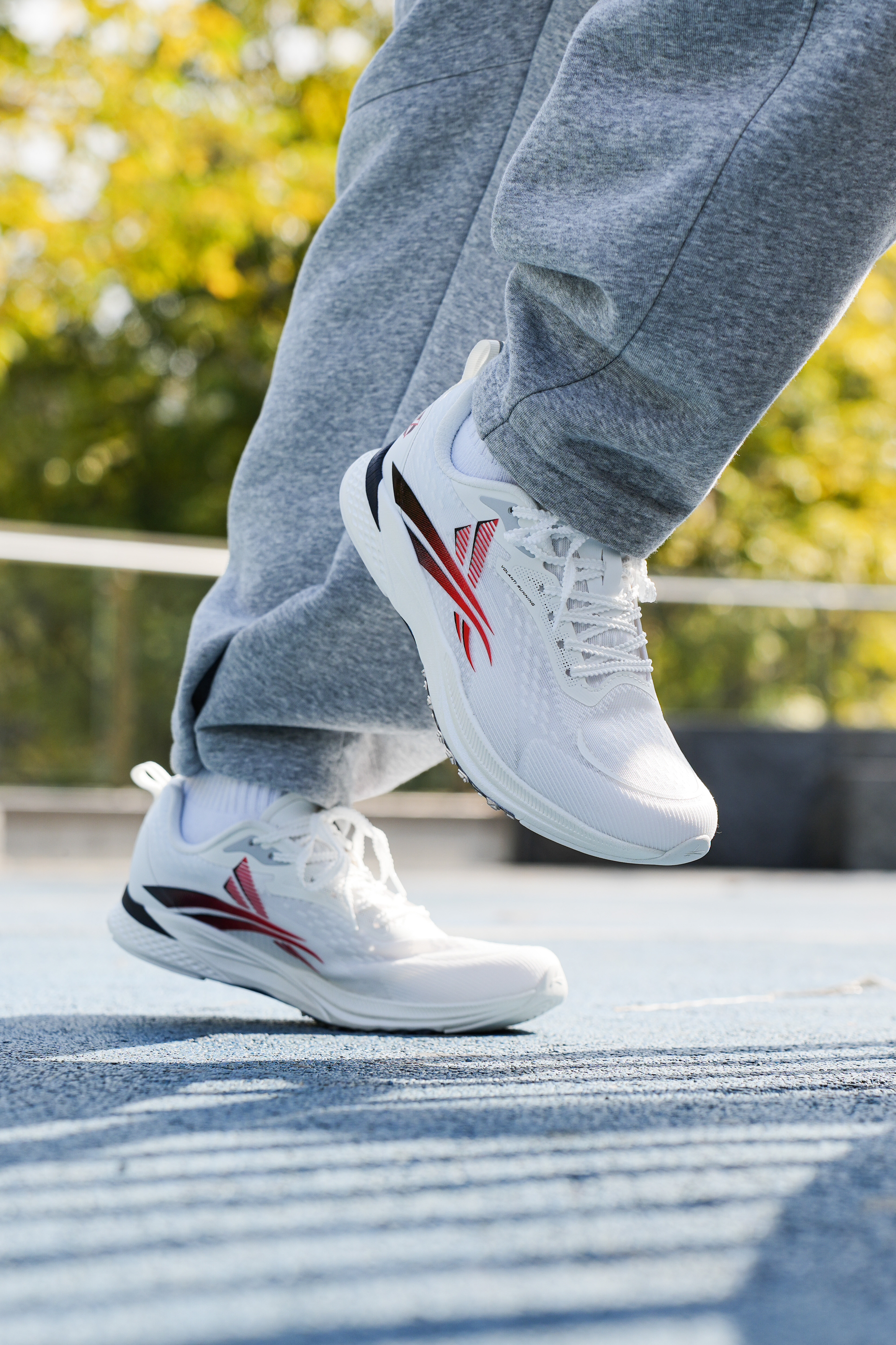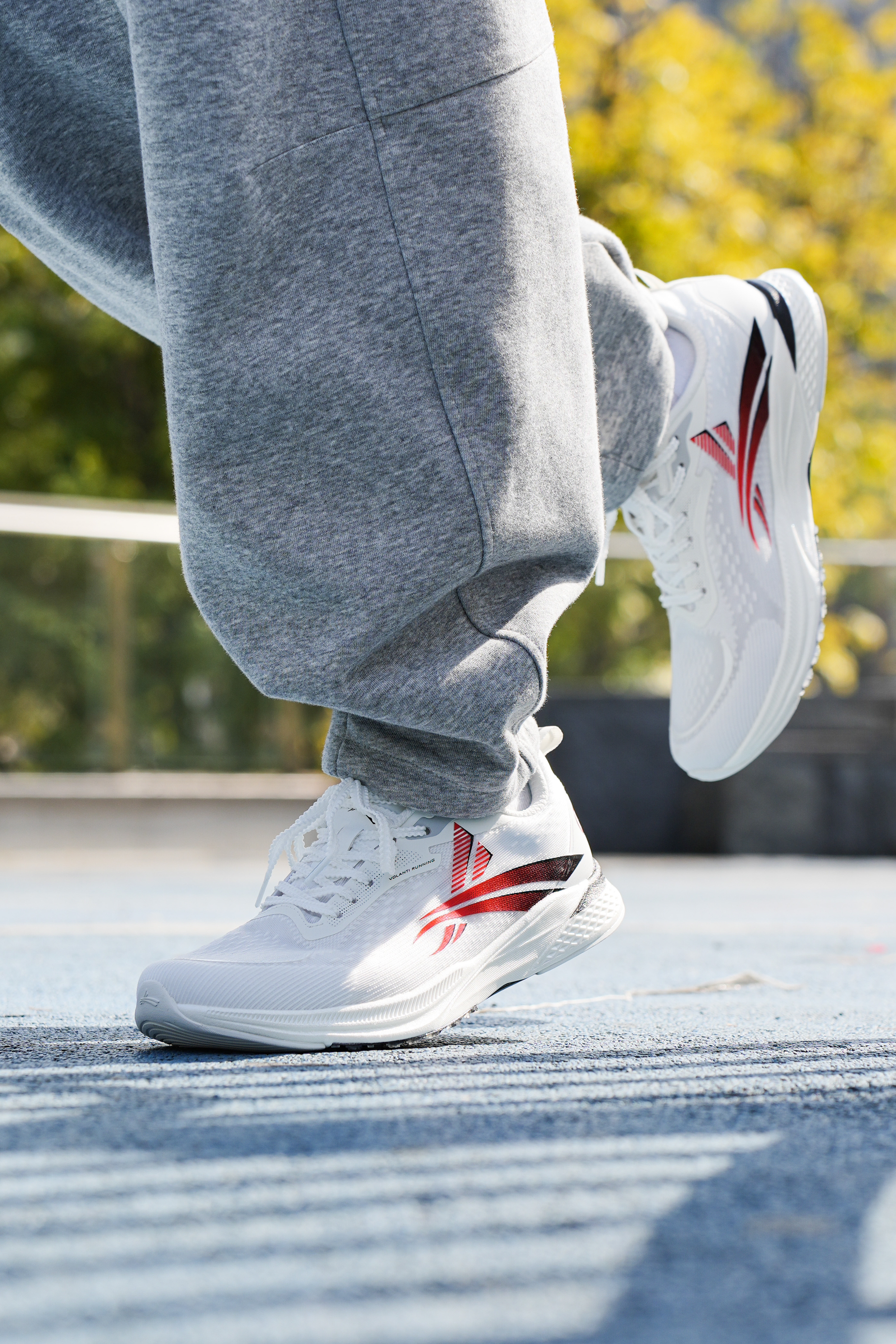 白红配色的搭配还是蛮有青春少年感的,不枉这“学院”配色名,就是这双沃兰迪的梦幻闪电系列跑鞋,鞋身以白色为主,在侧身用到黑红的渐变点缀,上脚还是蛮百搭的。 配置方面中底用到了高弹VTEC-EVA,以及全掌V800纯碳板,跑动起来的推进感很强,也是受到不少体育生的喜爱。而且鞋面轻薄透气,个人感觉在体考体测,或竞速跑中都是不错的选择。
