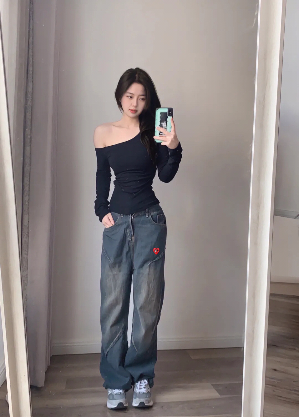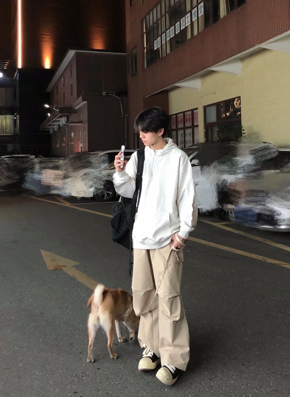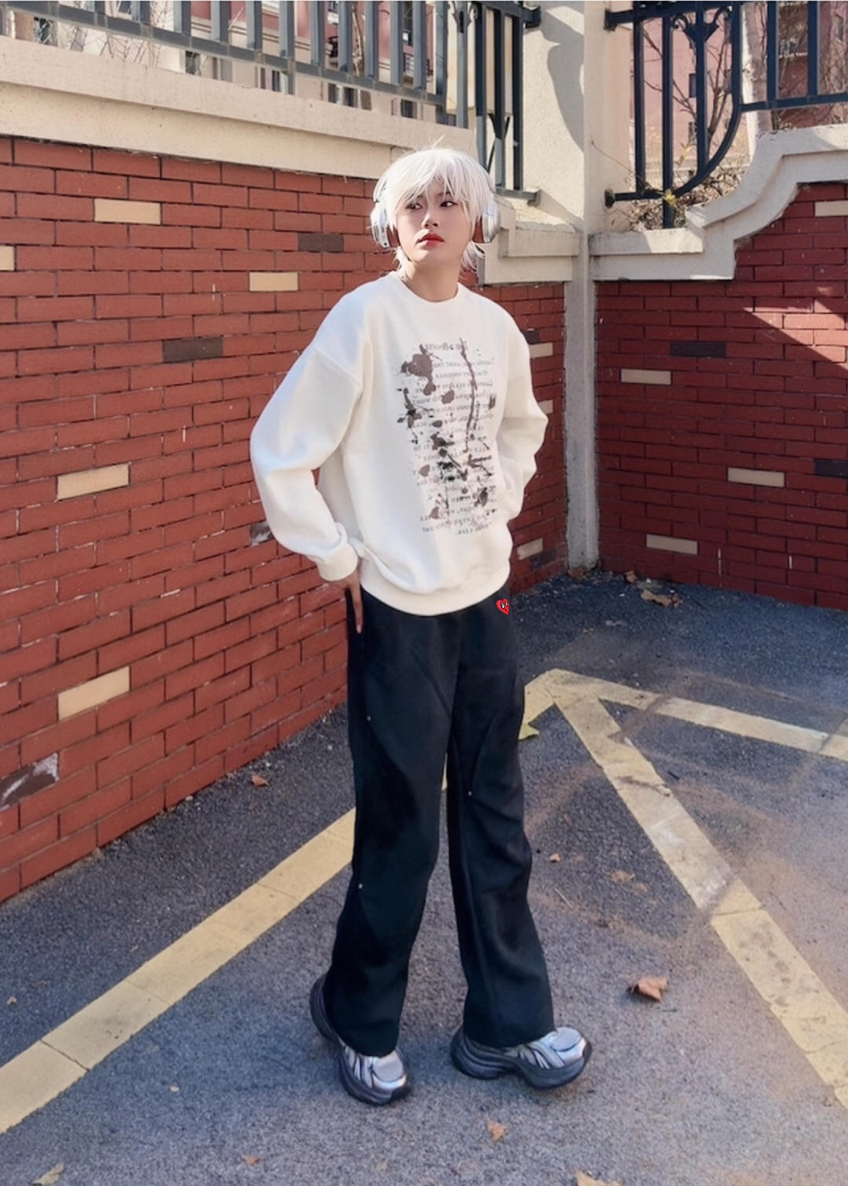 这条裤子真的好显瘦啊,版型也很ok,仔细一看还做了铆钉褶皱的细节设计,腰部也做了松紧带,上身搭配一件卫衣,简约又好看~