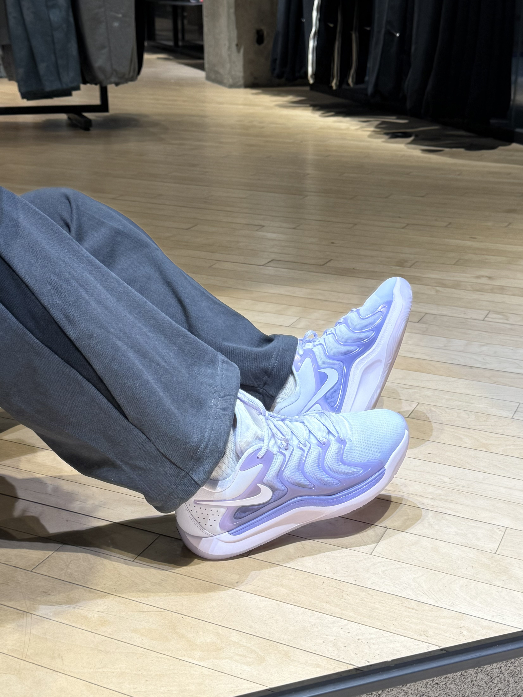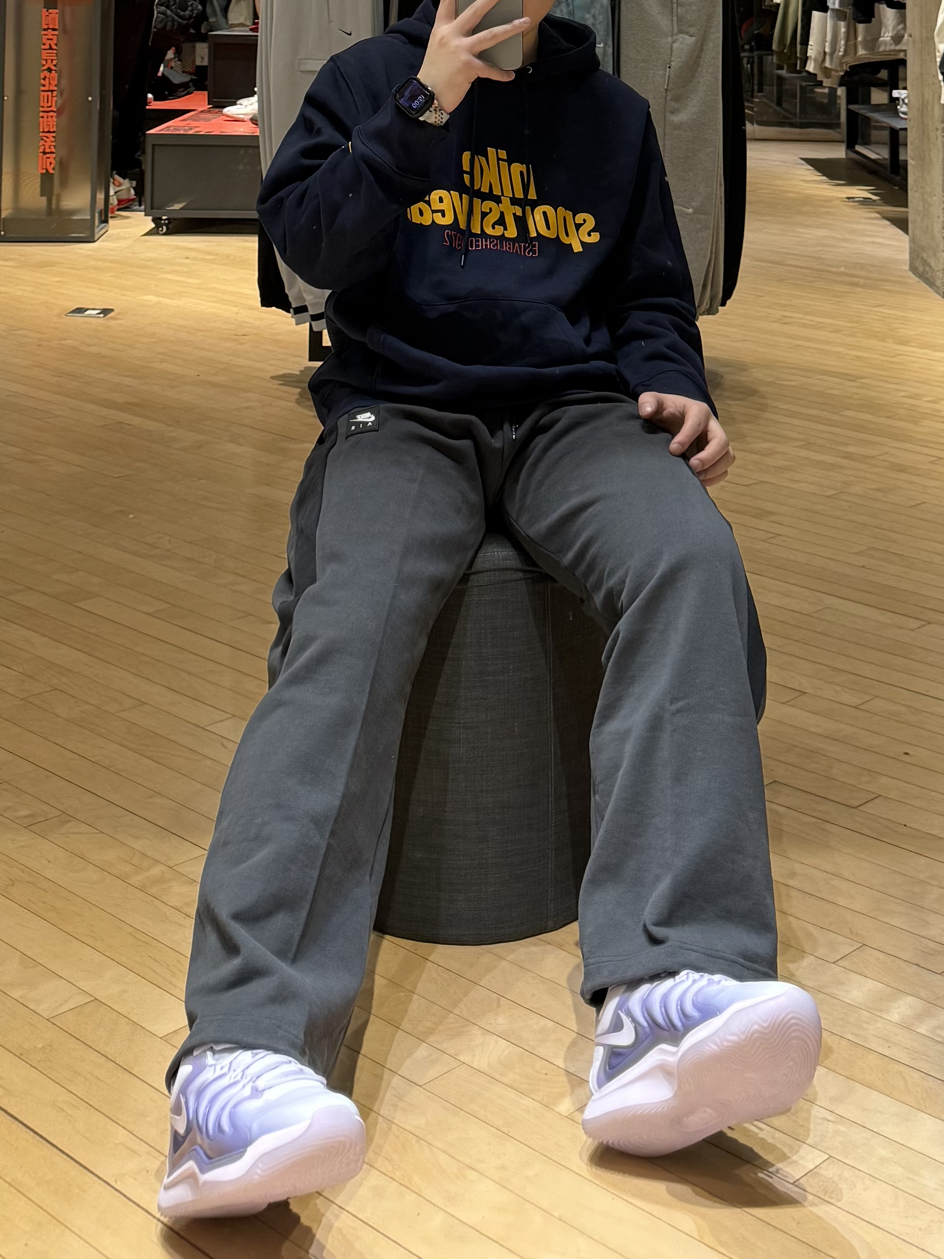 ✨今日份穿搭分享✨ Nike 连帽卫衣➕Nike 直筒长裤➕Nike KD17,这颜色真的太梦幻了吧,鞋舌标志性的KD Logo也是太显高级感了。