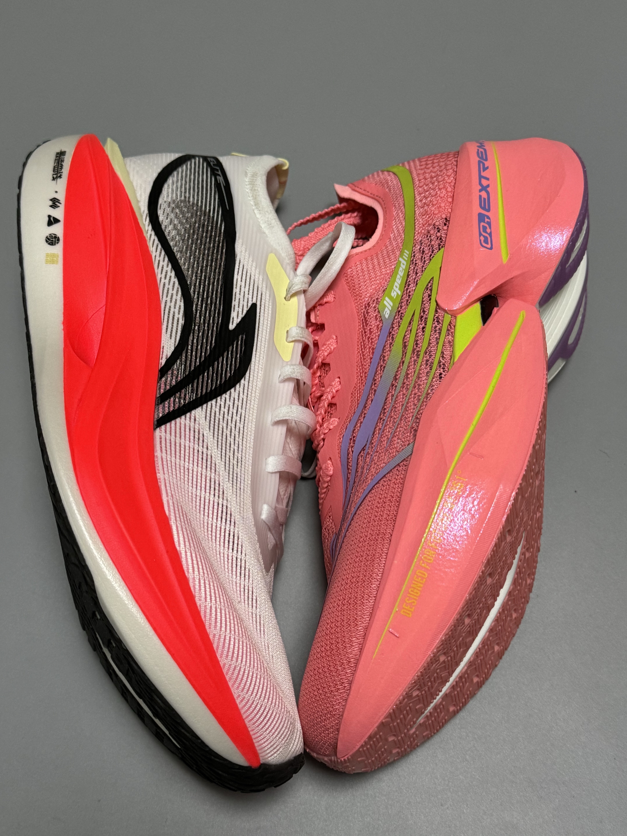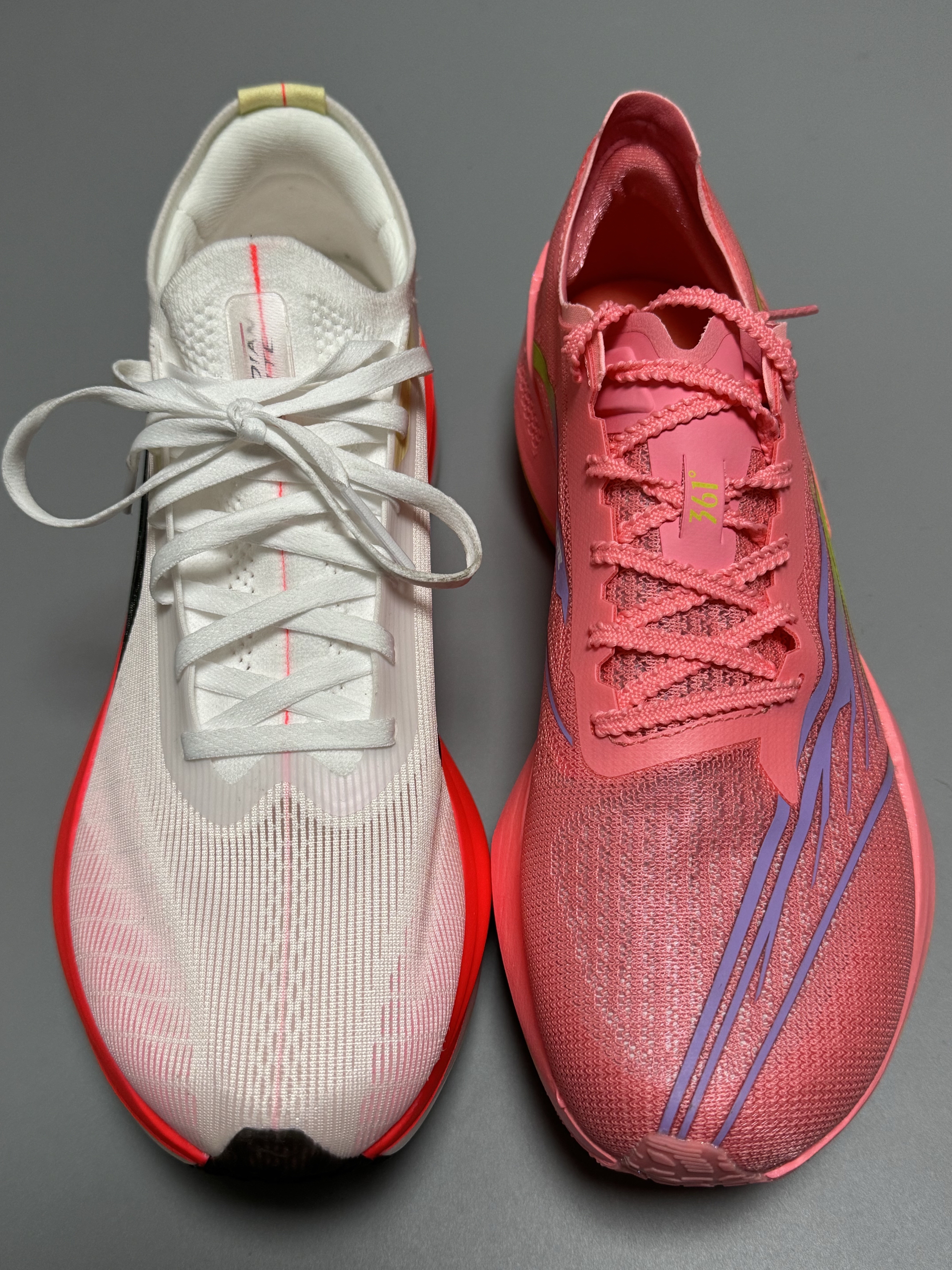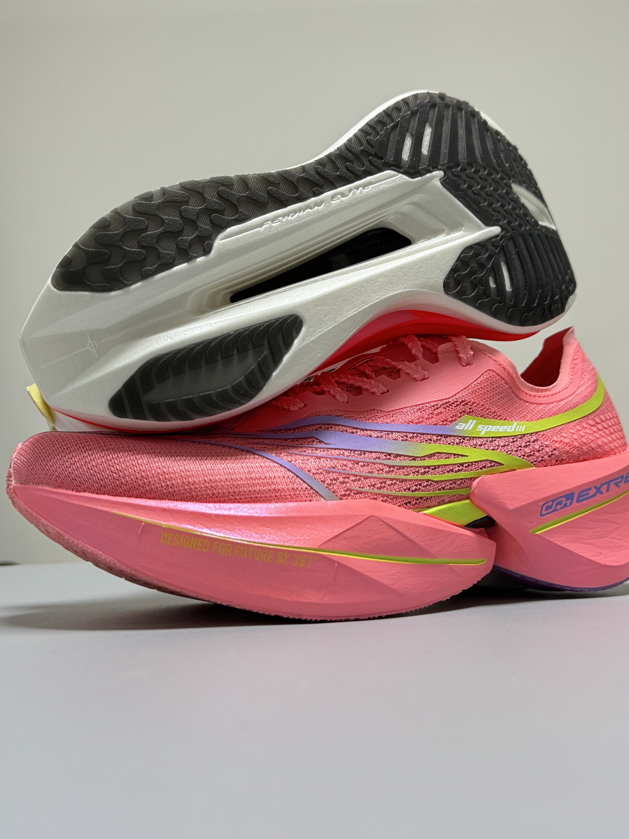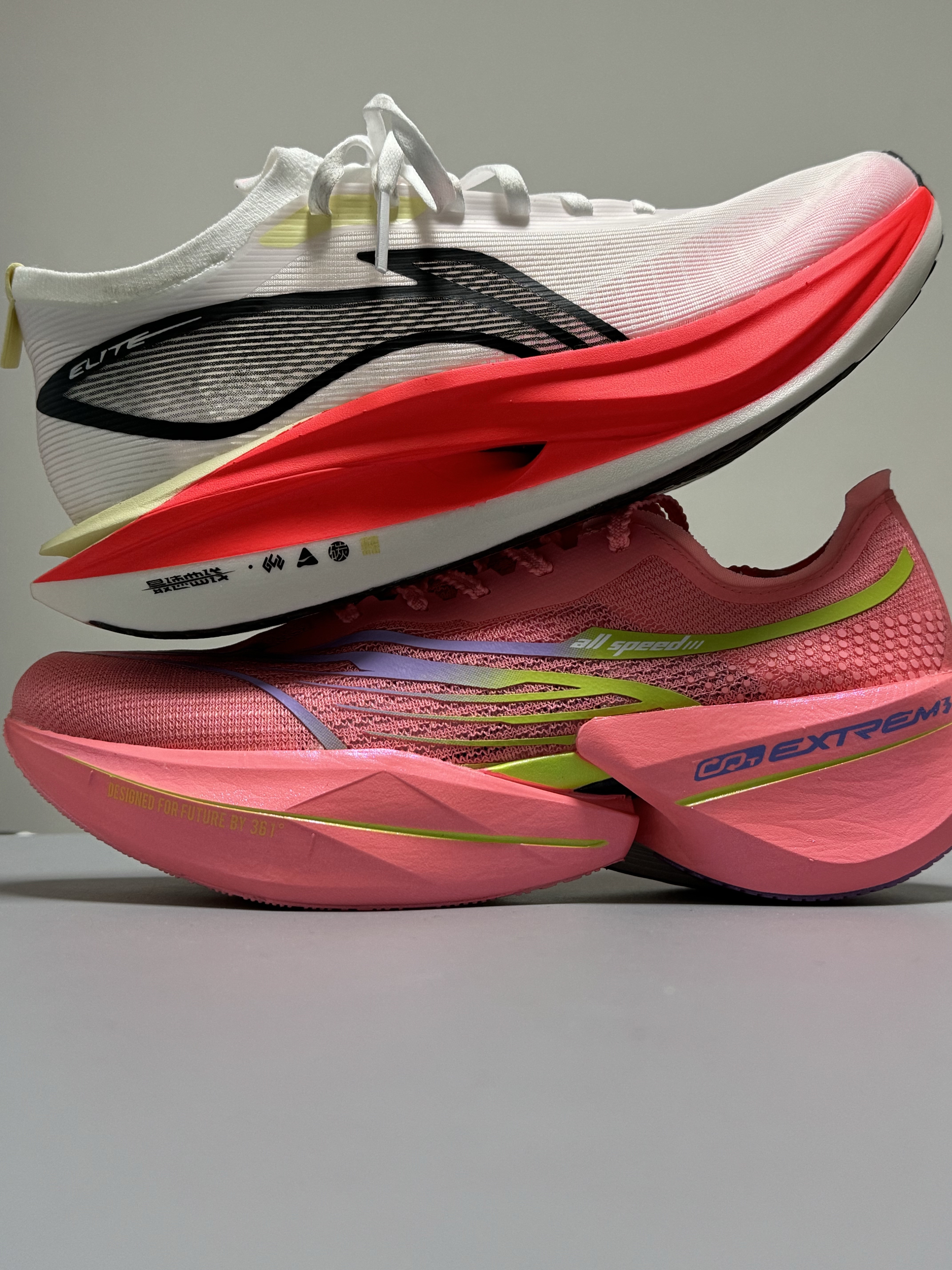 halo 阿迪来了,本期的跑鞋分享带来的是这双361度的飞飚future 1.5和这双飞电5Elite! 话不多说,我们先来看看这双飞飚future1.5,该说不说,这次的飞飚future 1.5和之前入手的飞飚future 基本外观和参数没啥区别! “派大星”的外观颇具匠心,采用了中底三明治架构,并配备了外露加强筋碳板以及分体式中底。其前掌厚度为31mm,后掌厚度为39mm,坡差为8mm,给人一...