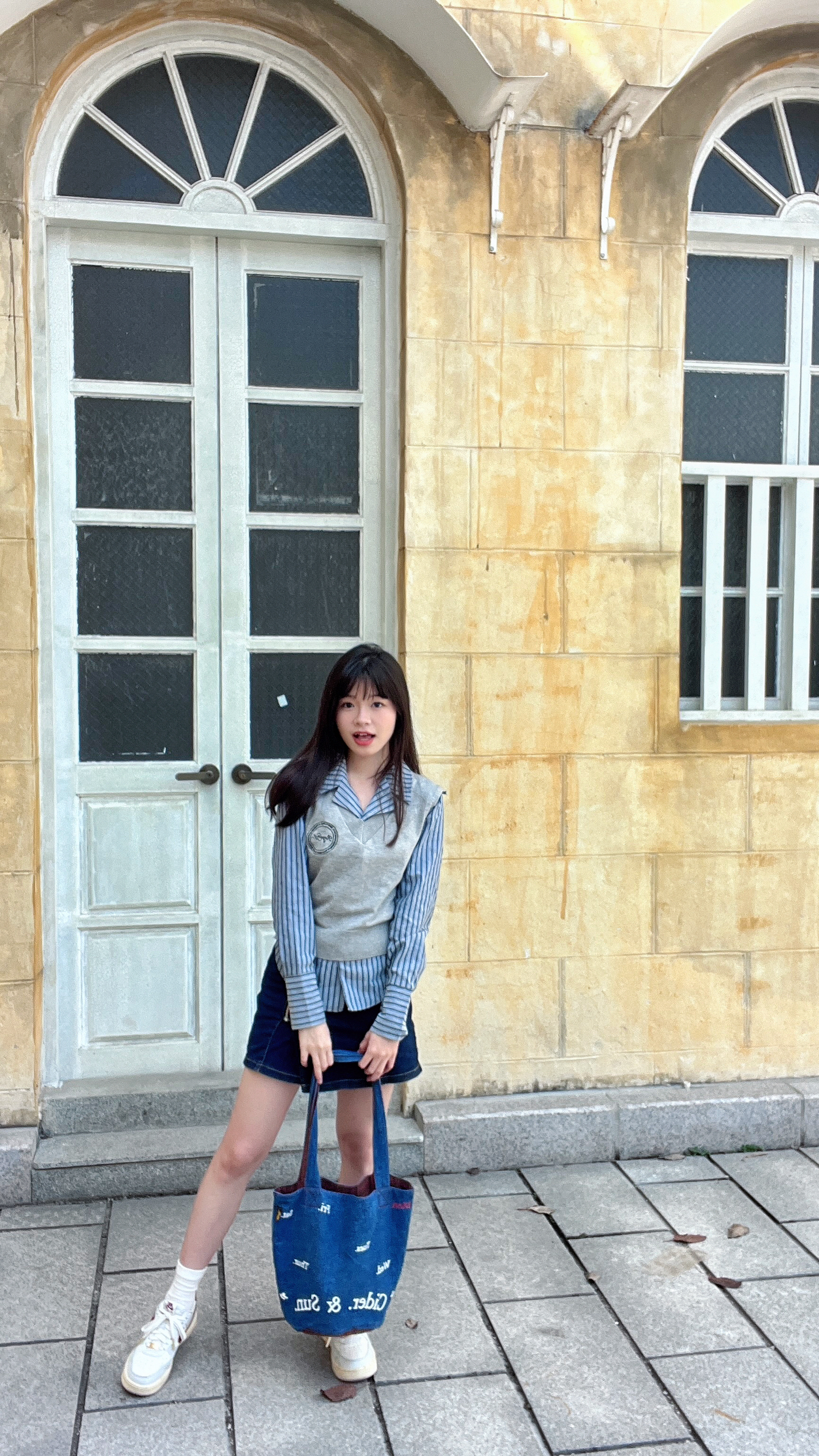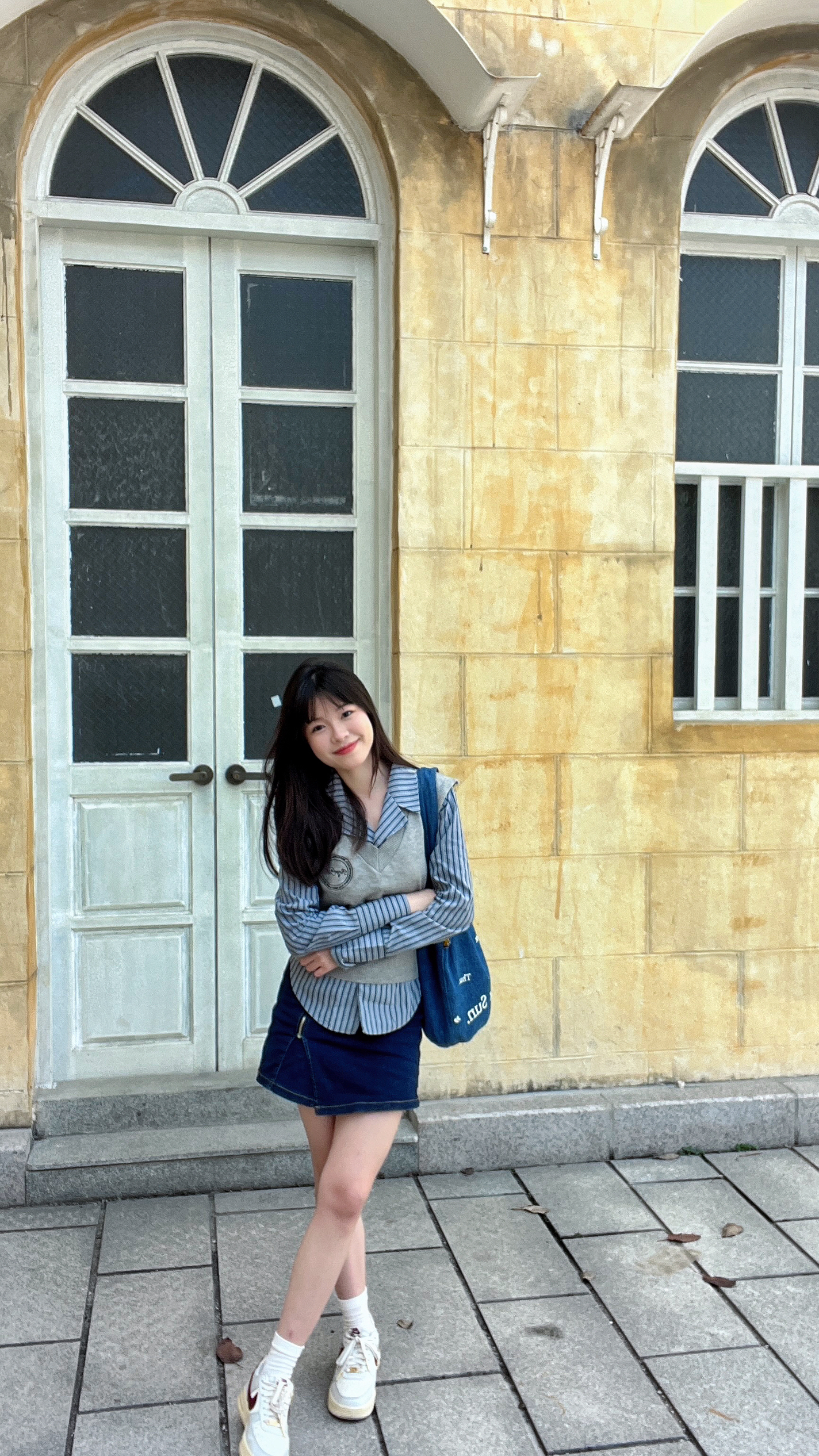 空军一号搭配套装小裙子 休闲又活泼~ 整套穿搭是蓝色系 空军一号的红色标志增添了亮点 鞋底柔软舒适 旅游暴走也不怕🤪 #旅游穿搭 #今日晒鞋