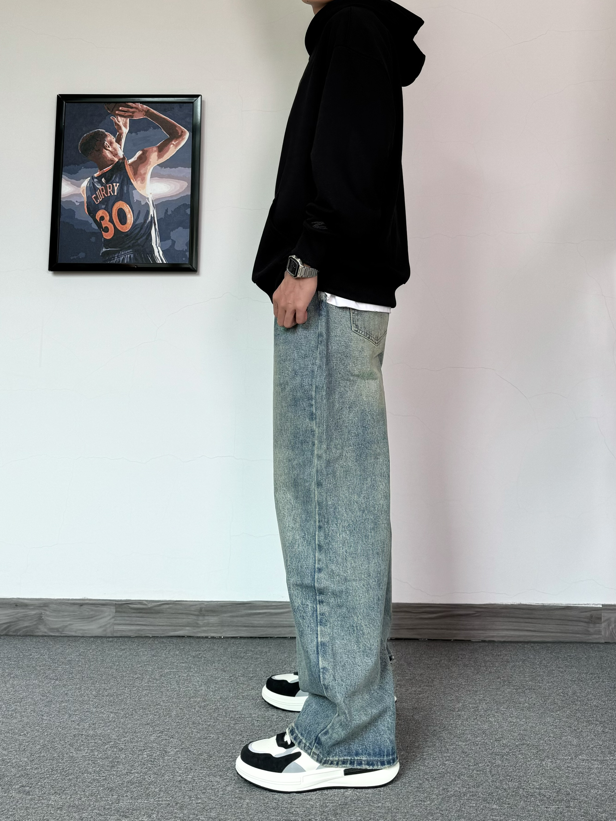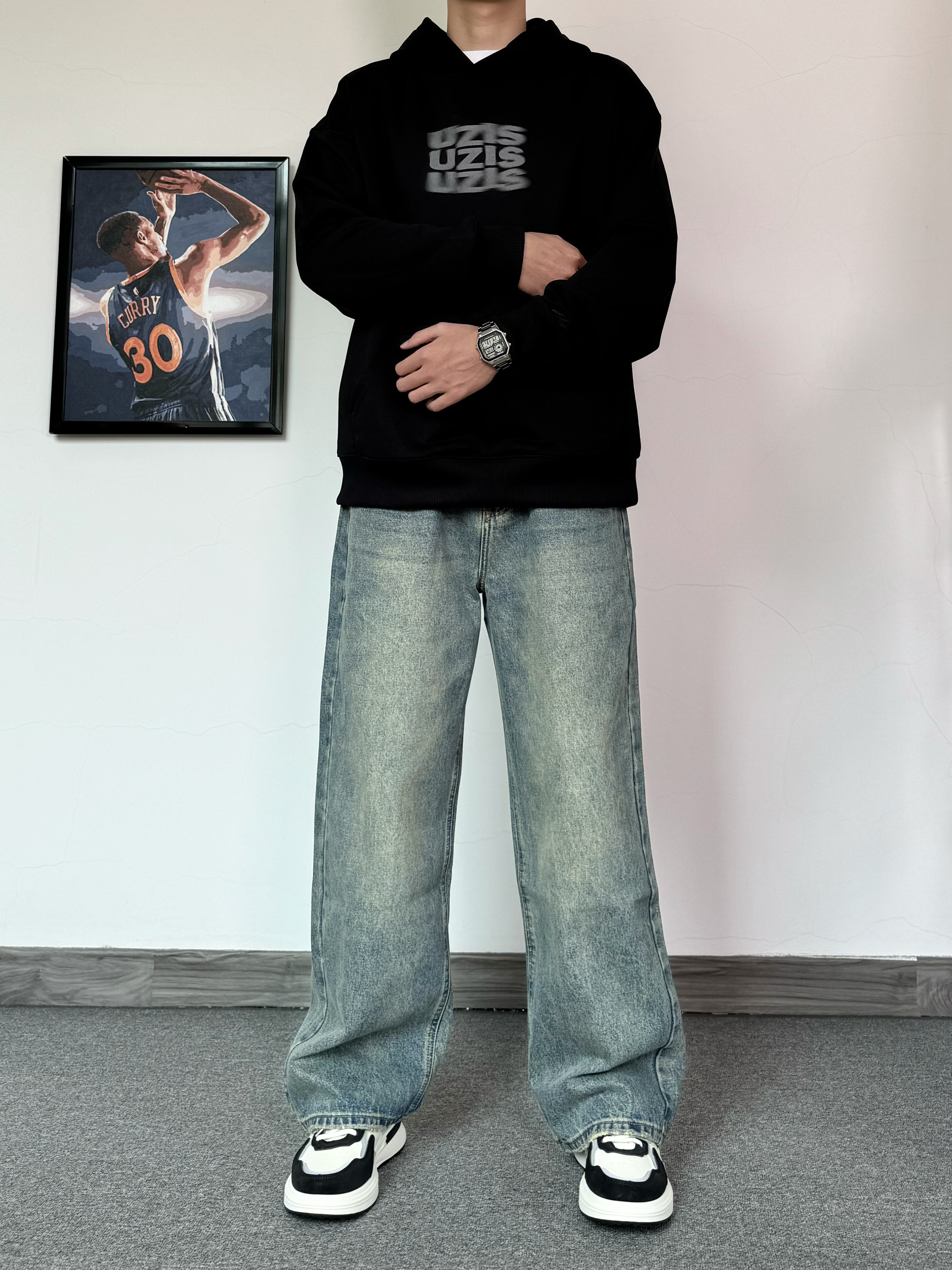 拖鞋厚重的羽绒服 提前入春咯~ 男生穿黑色尊嘟百搭又高级✨ 搭配复古水洗牛仔裤 宽松板鞋主打一个舒服! 脚踩回力休闲鞋 包帅的✔️