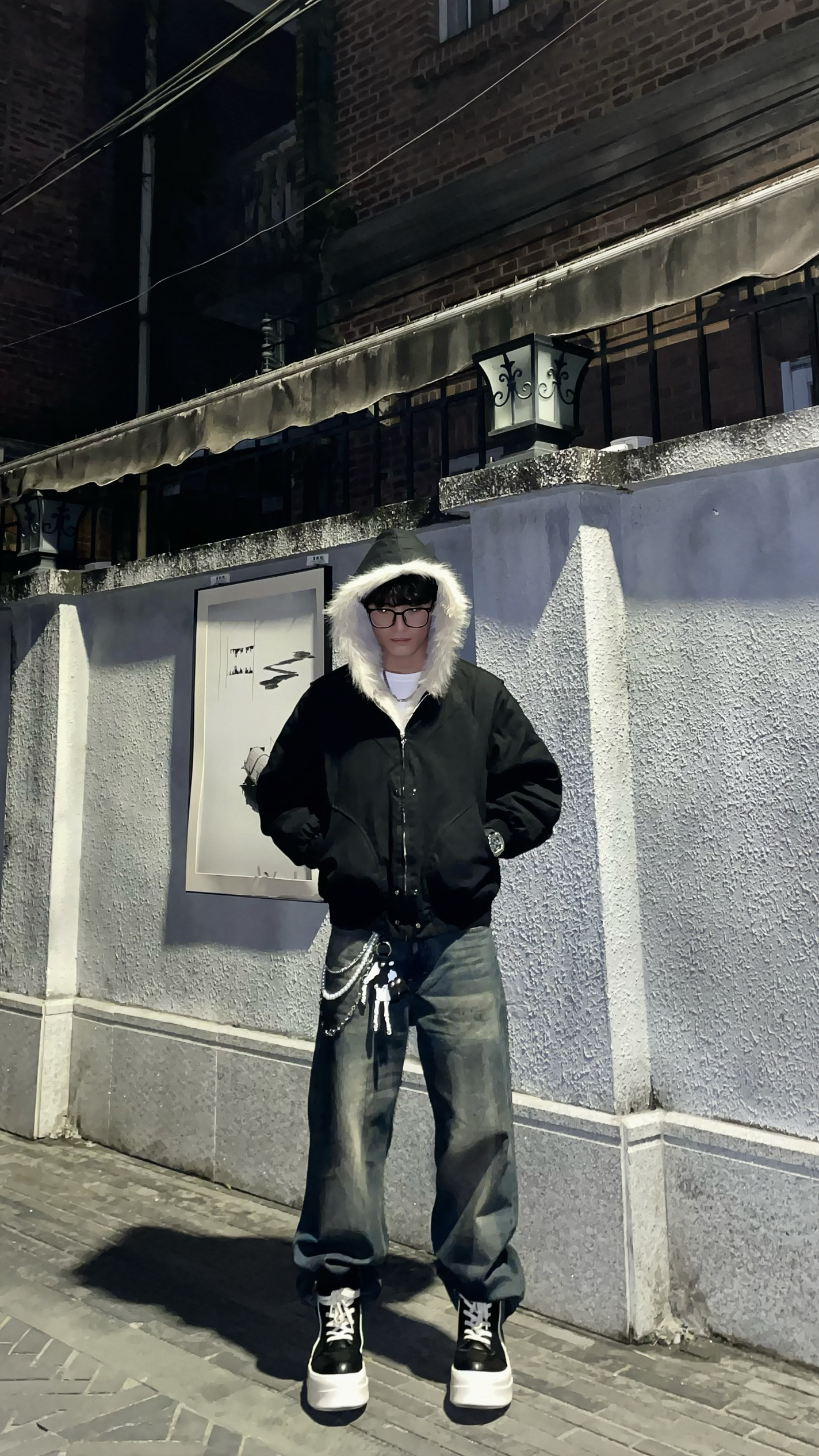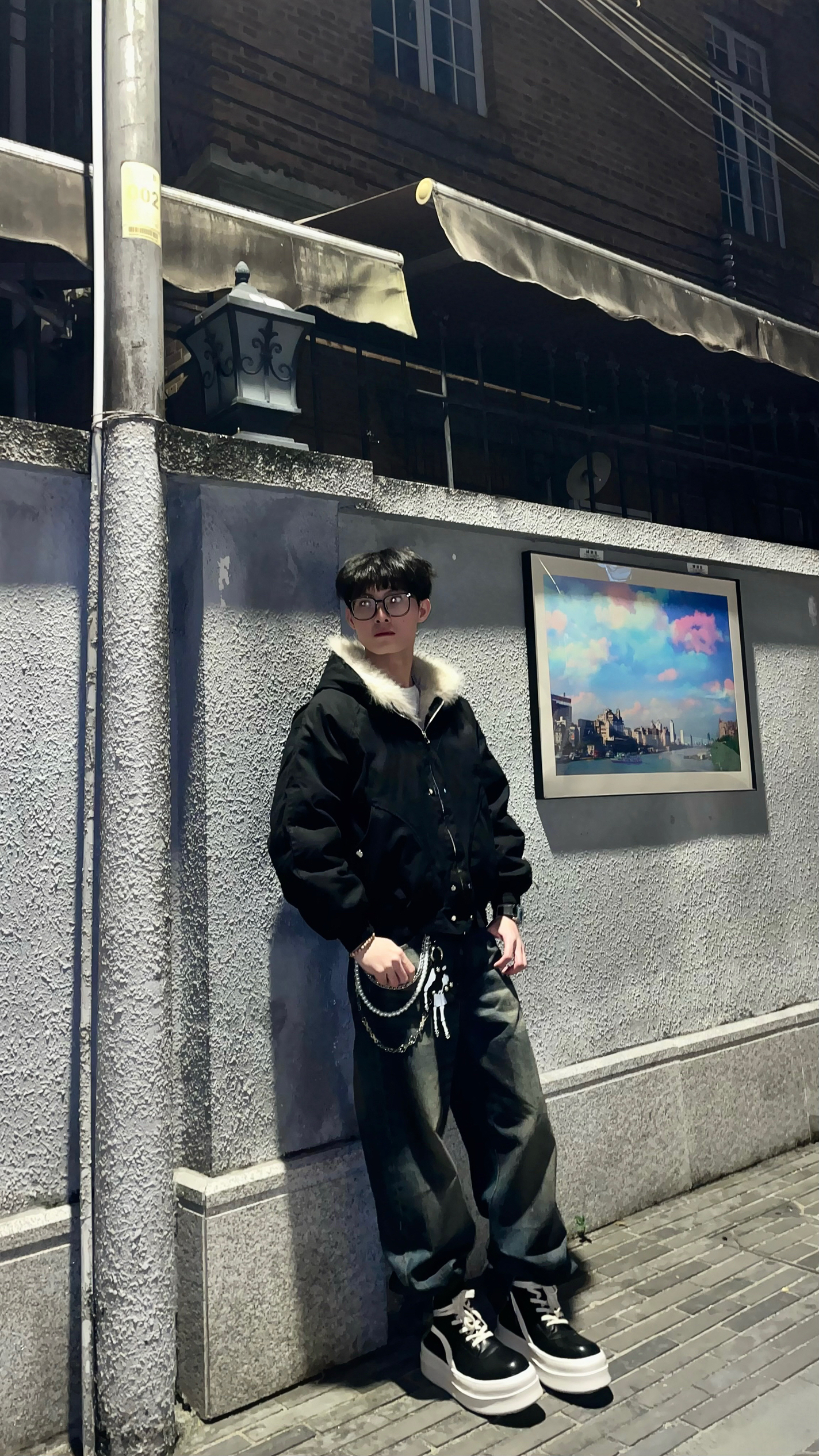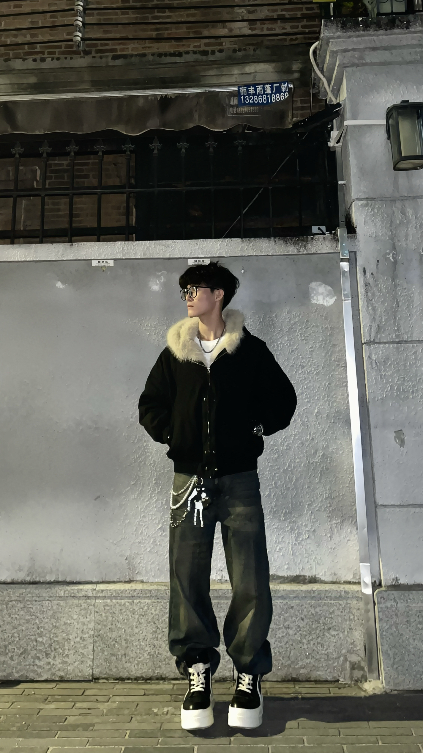 ☃️冬季座山雕上短下长搭配,快来借鉴这套cleanfit穿搭模版🥷🏻 🧑🏻🦱简单的介绍今天的穿搭吧[机智_blue] 📸黑色座山雕毛领外套➕黑色水洗做旧牛仔裤➕RO板鞋 — — — — — — — — — — — — — — — ①OOTD 👔座山雕毛领连帽棉服,短宽立体裁剪的版型,上身修饰身材显肩宽,重膀加厚毛绒保暖面料 — 👖水洗做旧牛仔裤,宽松直筒的版型阔腿坠感,复古极简主义风格,日常百...