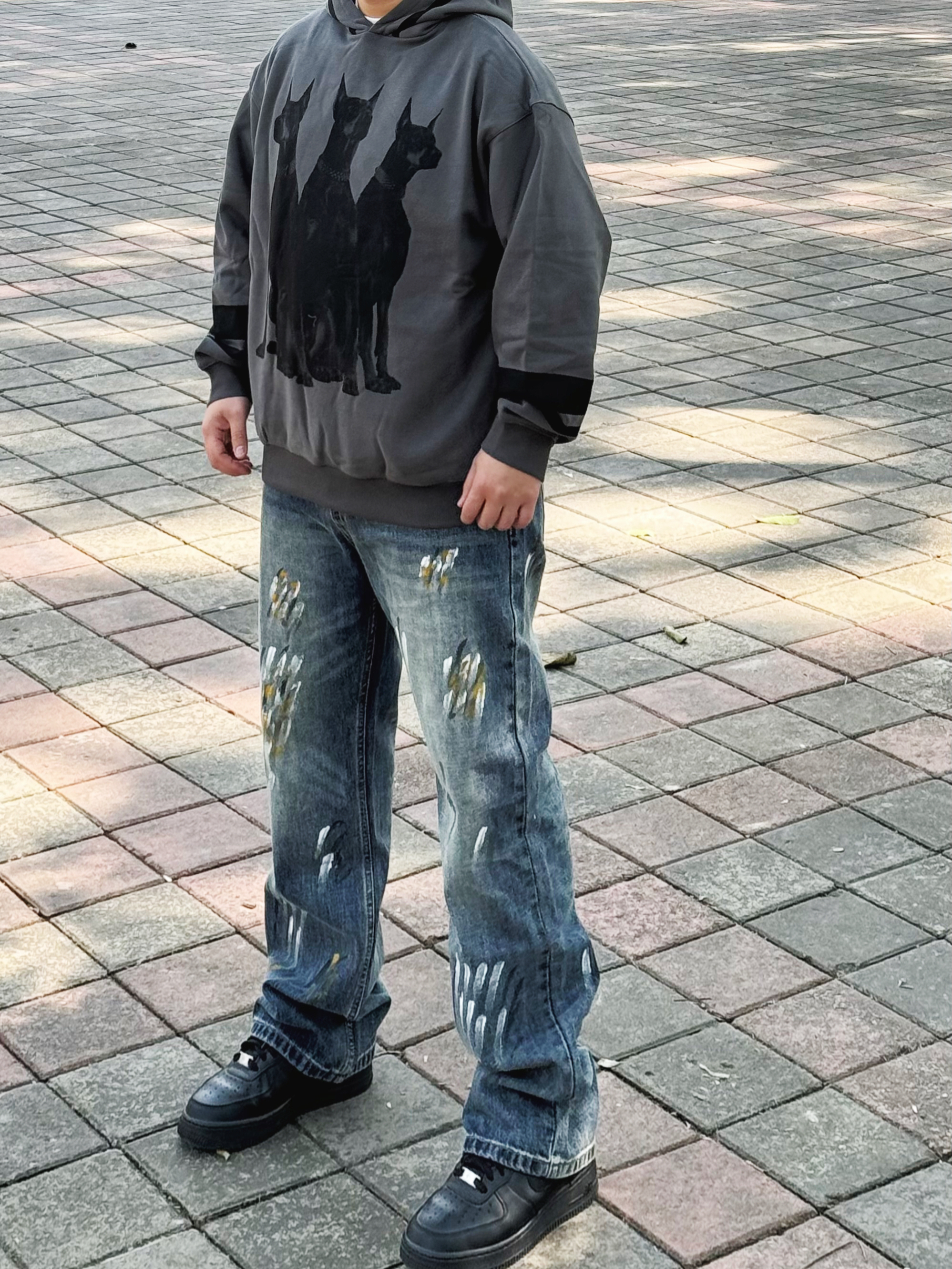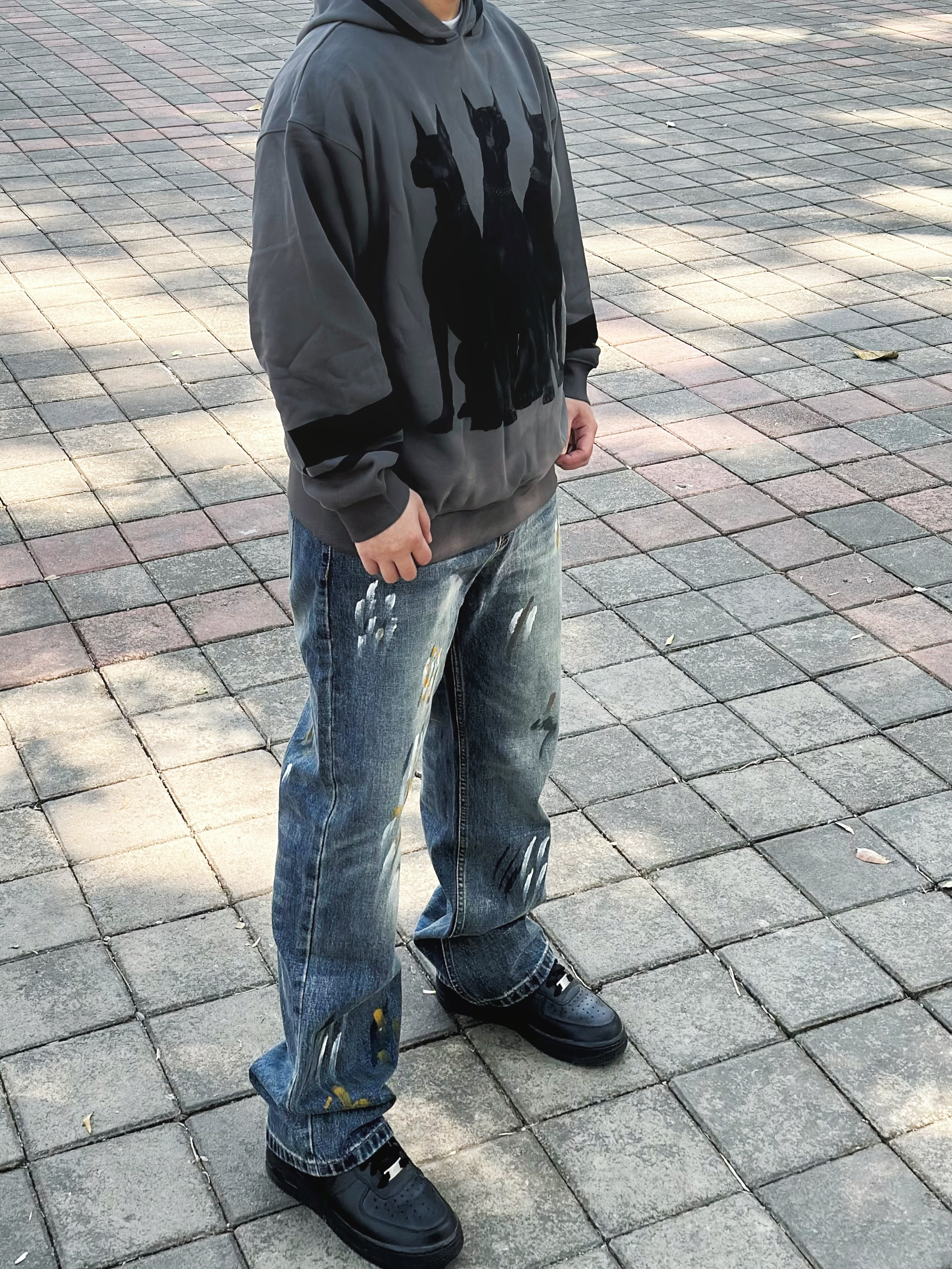 今日份Get一身王鹤棣同款卫衣的穿搭分享 衣服👔 EMPTY REFERENCE 杜宾犬美式连帽卫衣 裤子👖 HARSIINCN 泼墨百搭牛仔裤 鞋子👟 Nike Air Force 1黑武士 身高丨体重丨尺码 : 178丨90kg丨XL