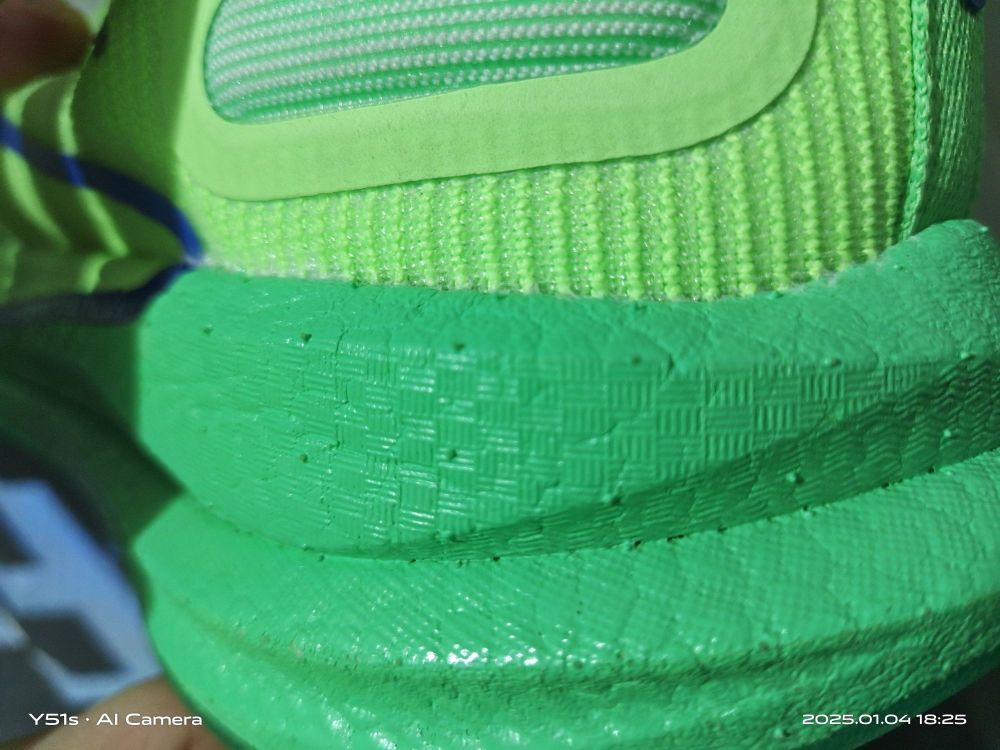 关于鞋面:运用了类似于织布鞋面加上一层塑料的感觉,摸起来有点扎扎手的👟 📌是否偏码【偏大/不偏码/偏小】: ⛹️性能打分(每项满分均为10): 包裹:9 缓震:6 抓地:3 耐磨:9 稳定:9 防侧翻:8 透气:7 重量:5 📖总结评价:8.8