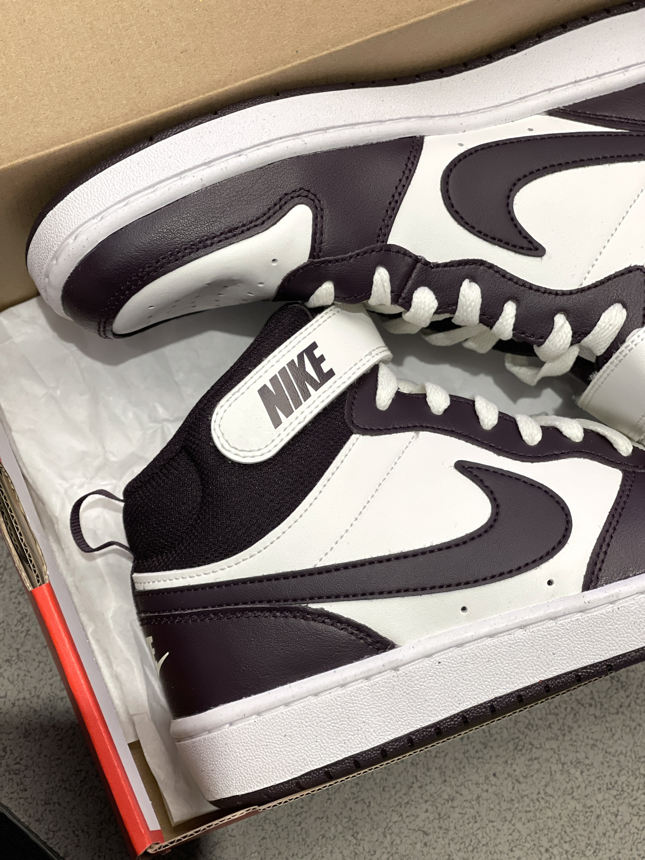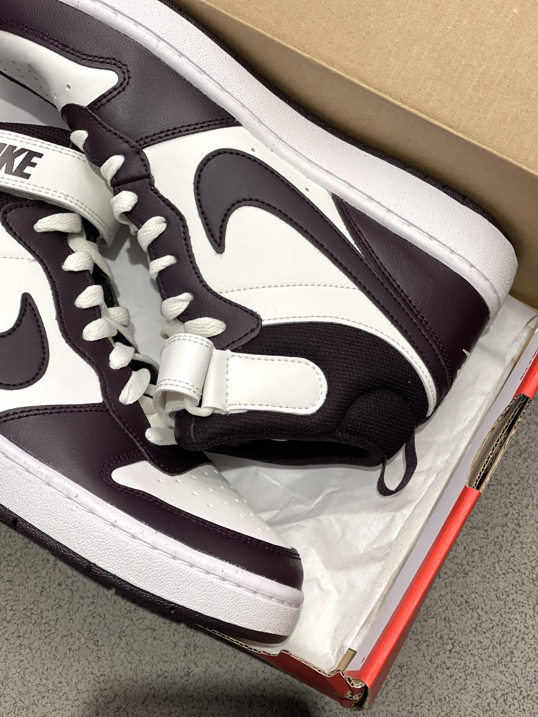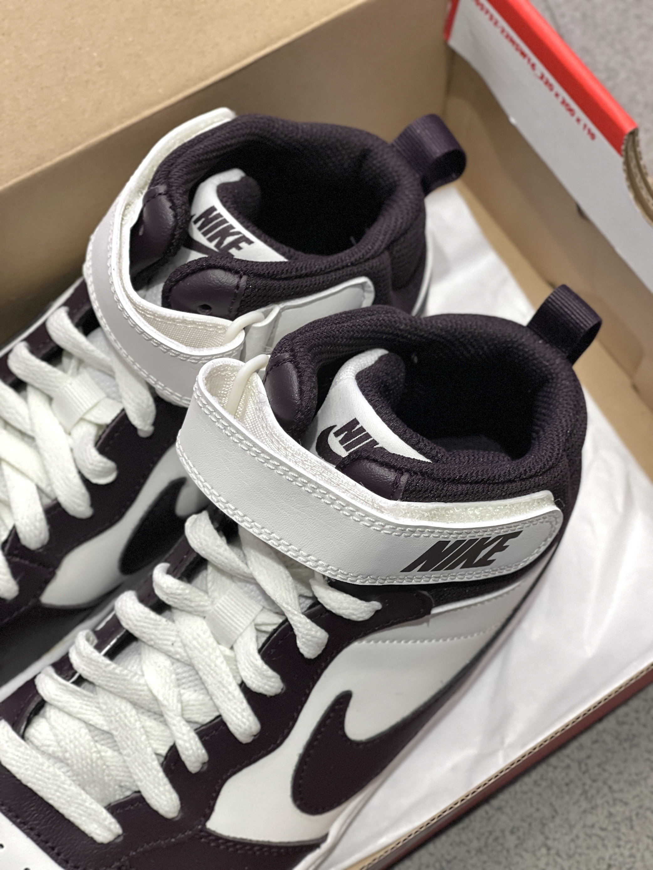 最近发现一双宝藏板鞋,远看黑白,近看酒红! Nike|Court Borough 2 中帮板鞋“白红色”,保暖舒适的中帮鞋型,穿起来包裹性十足!🤩白红配色鞋面,复古百搭!魔术贴设计,穿起来可以更加贴合脚部~😍